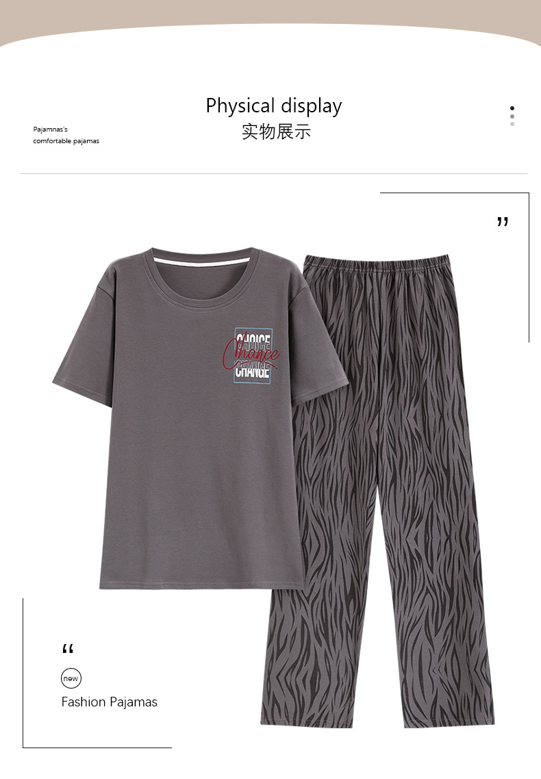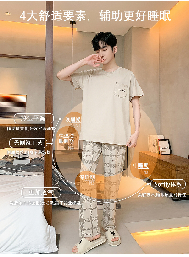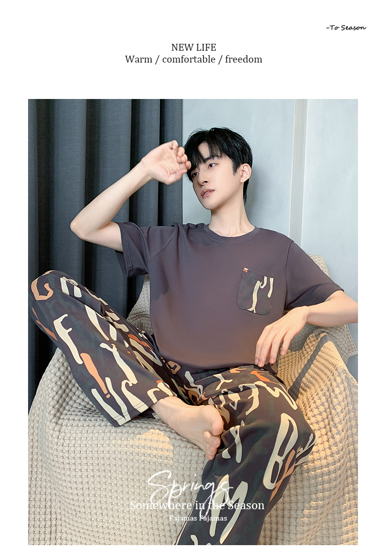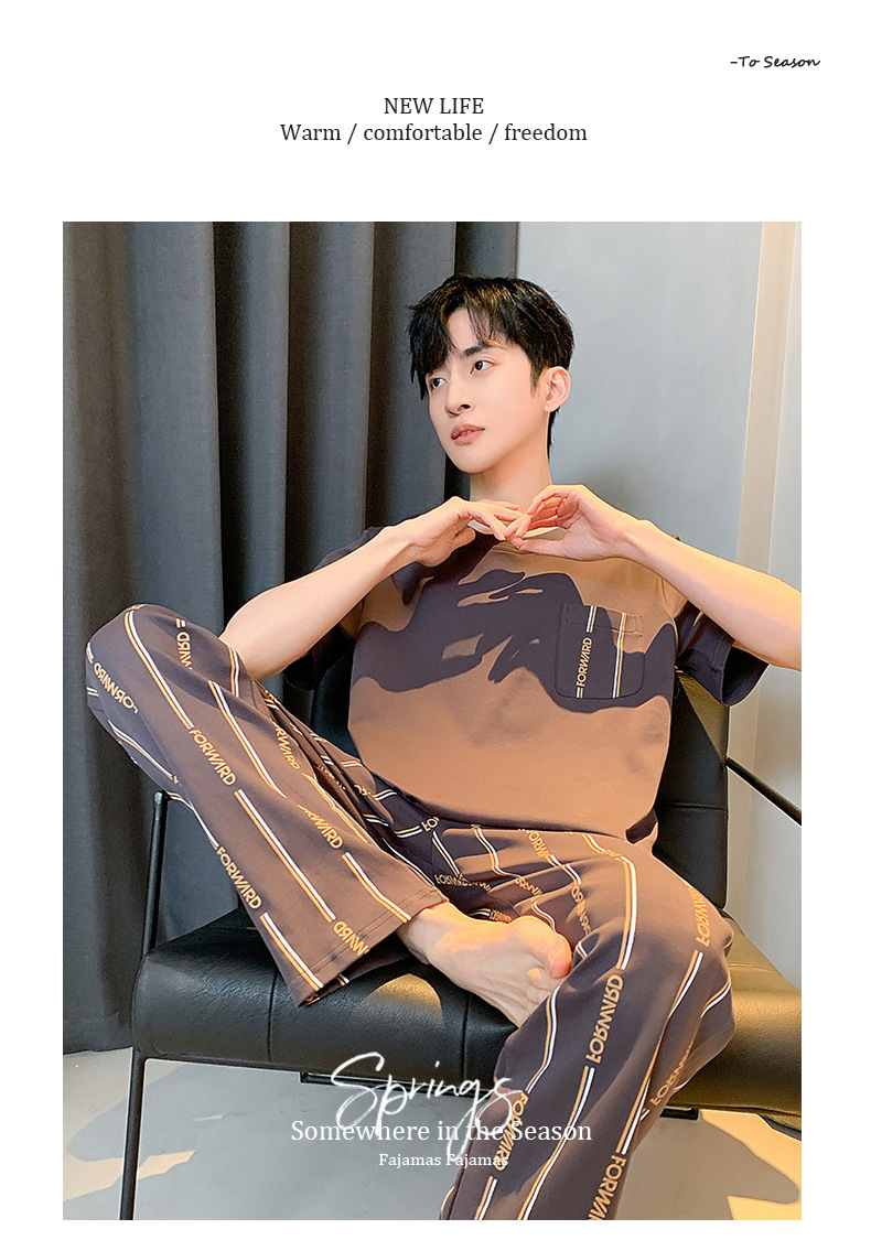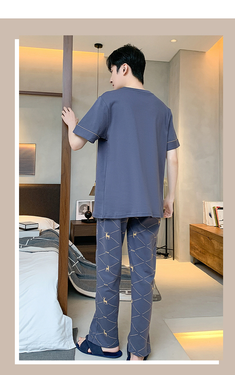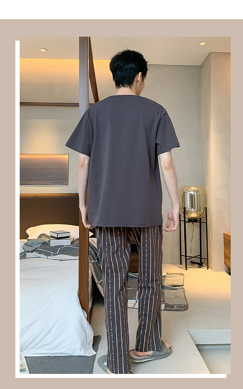 새로운 잠옷 남자 둥근 목 얇은 면 반팔 바지 세트 청소년 봄과 여름 면 2 피스 홈 옷스토어 가기