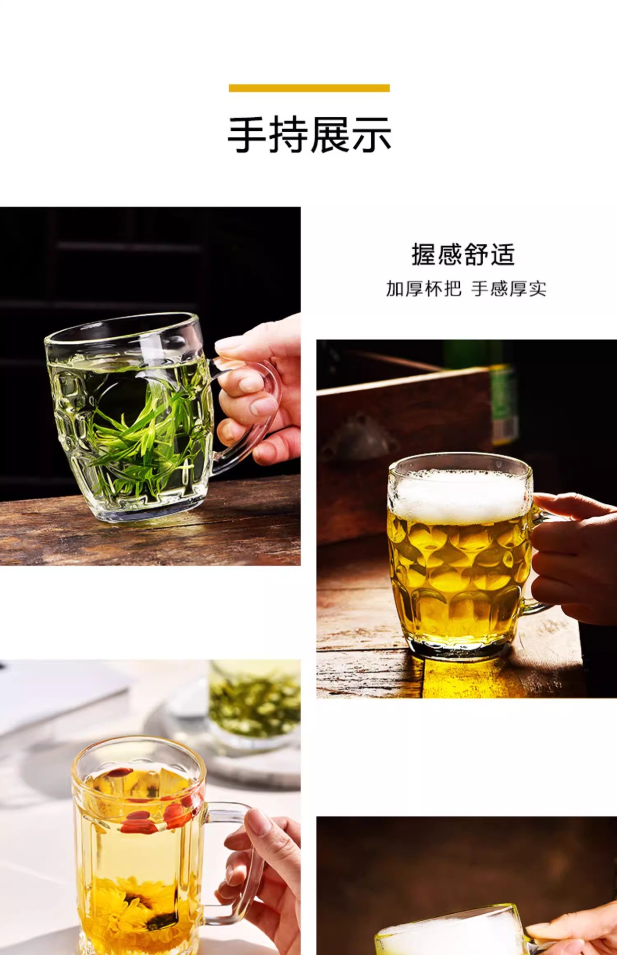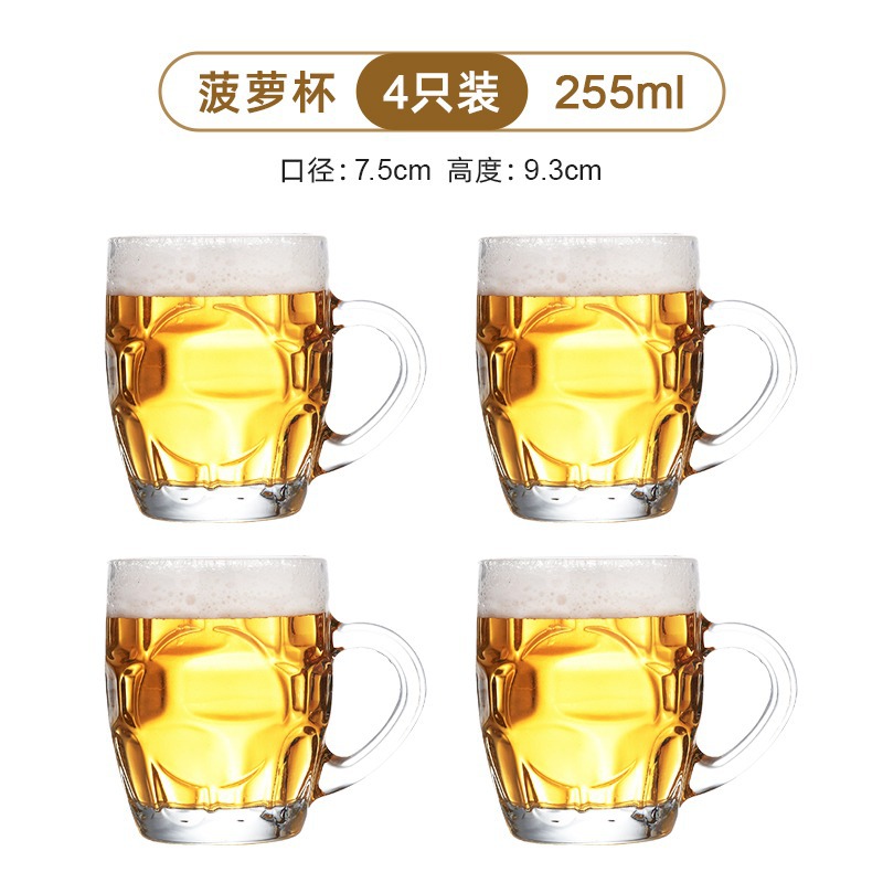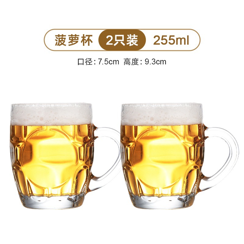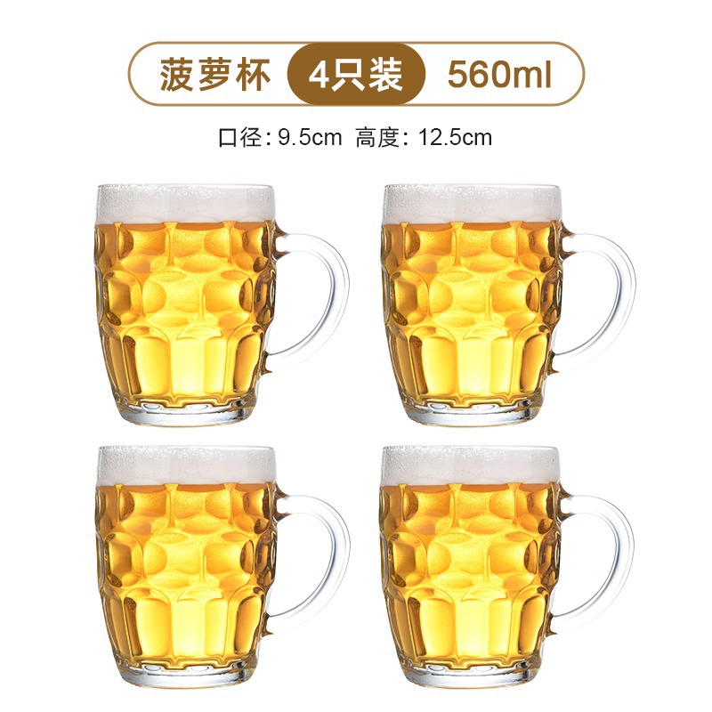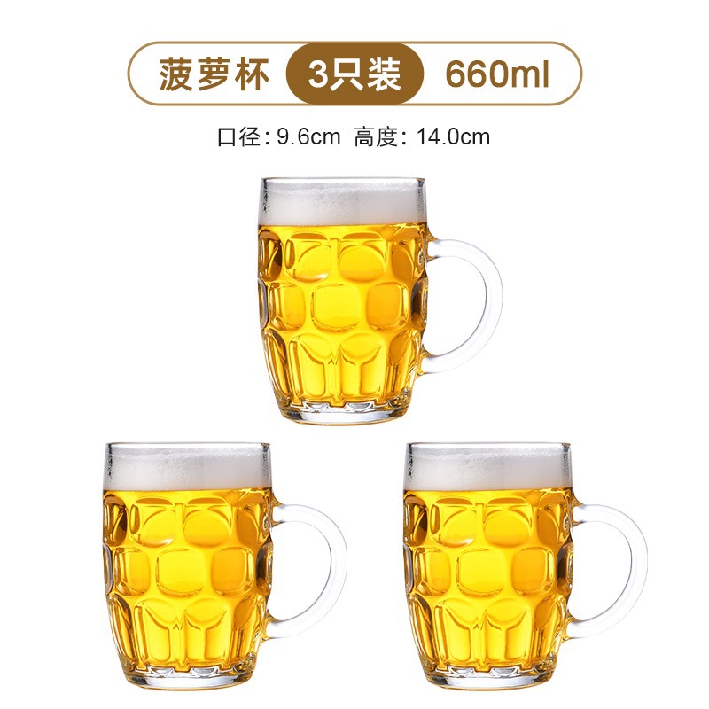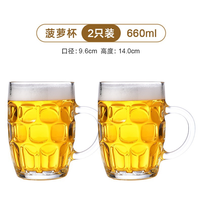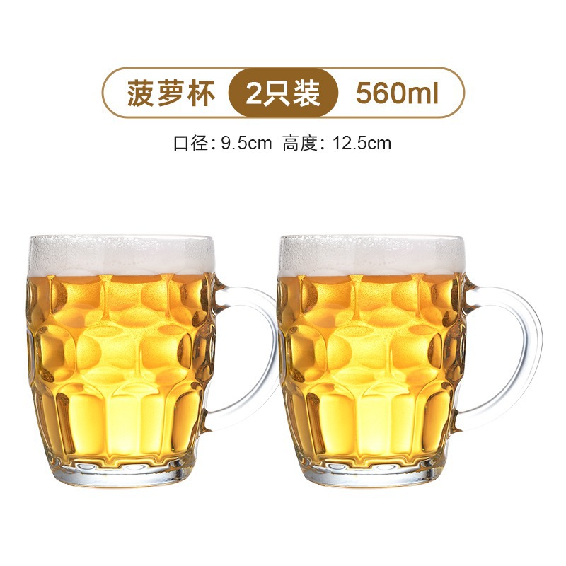 유리 맥주 컵 초안 맥주 컵 가정용 내열성 대용량 파인애플 손잡이와 손잡이 물 컵 두꺼운 차 컵