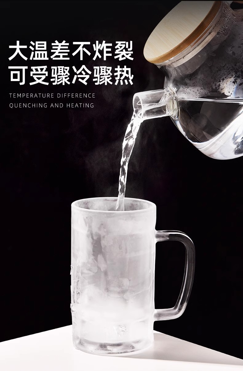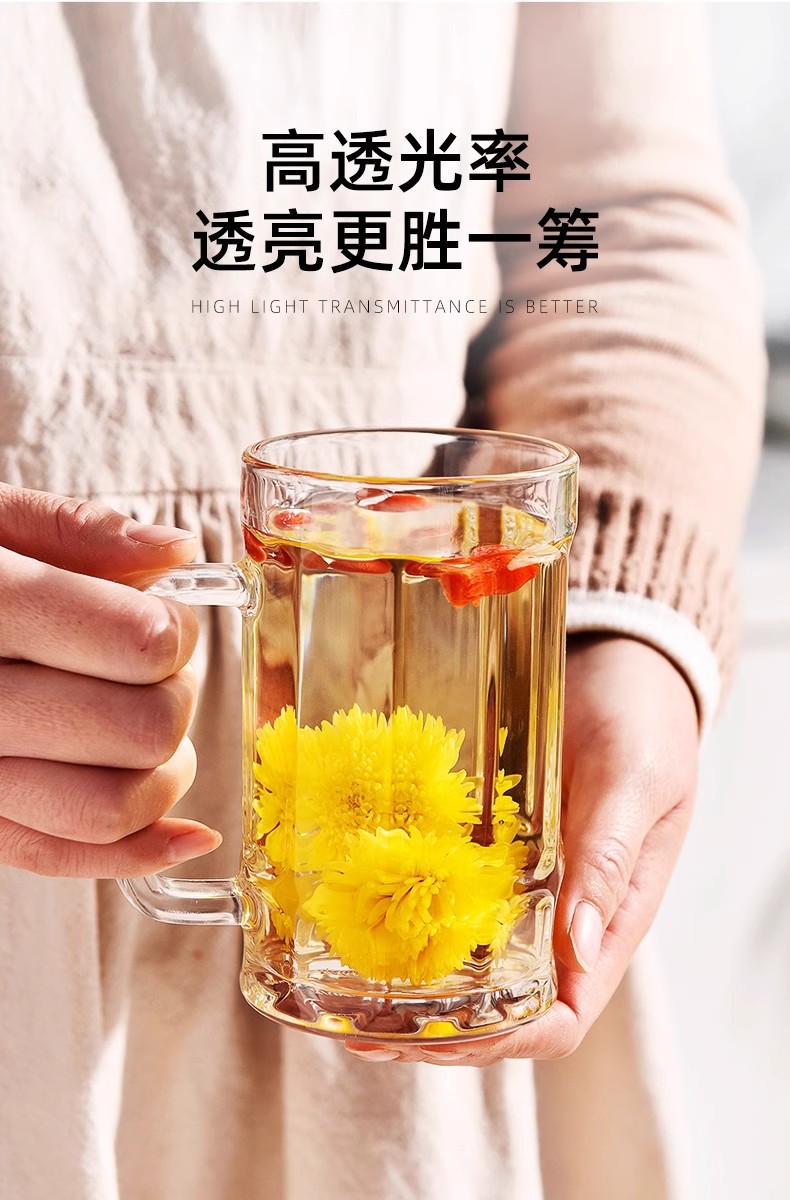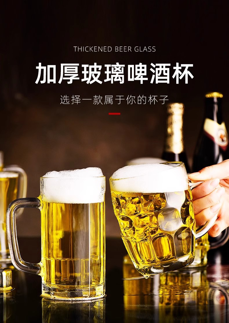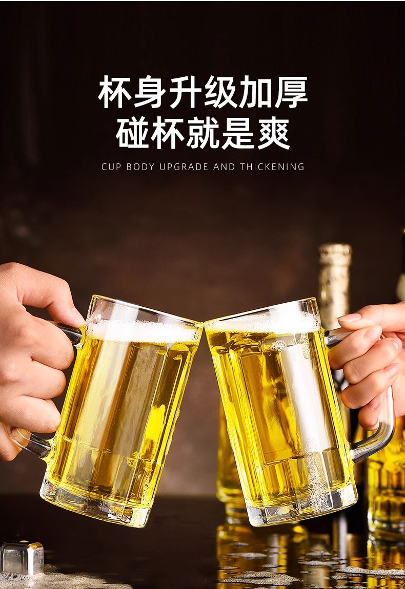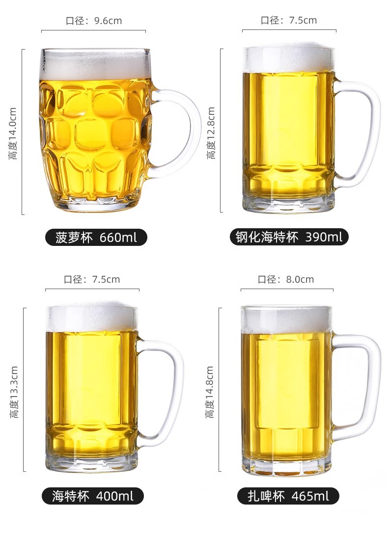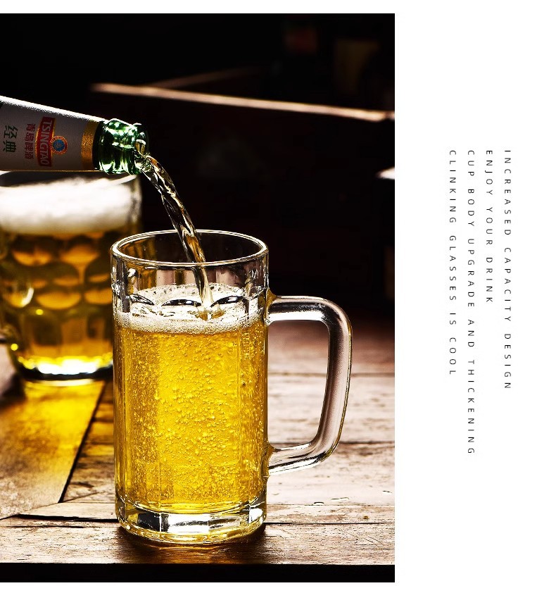 유리 맥주 컵 초안 맥주 컵 가정용 내열성 대용량 파인애플 손잡이와 손잡이 물 컵 두꺼운 차 컵