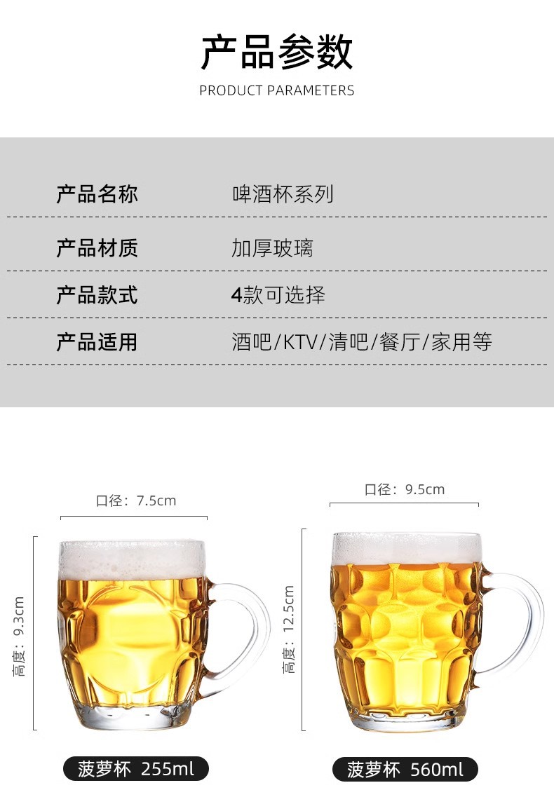 유리 맥주 컵 초안 맥주 컵 가정용 내열성 대용량 파인애플 손잡이와 손잡이 물 컵 두꺼운 차 컵스토어 가기