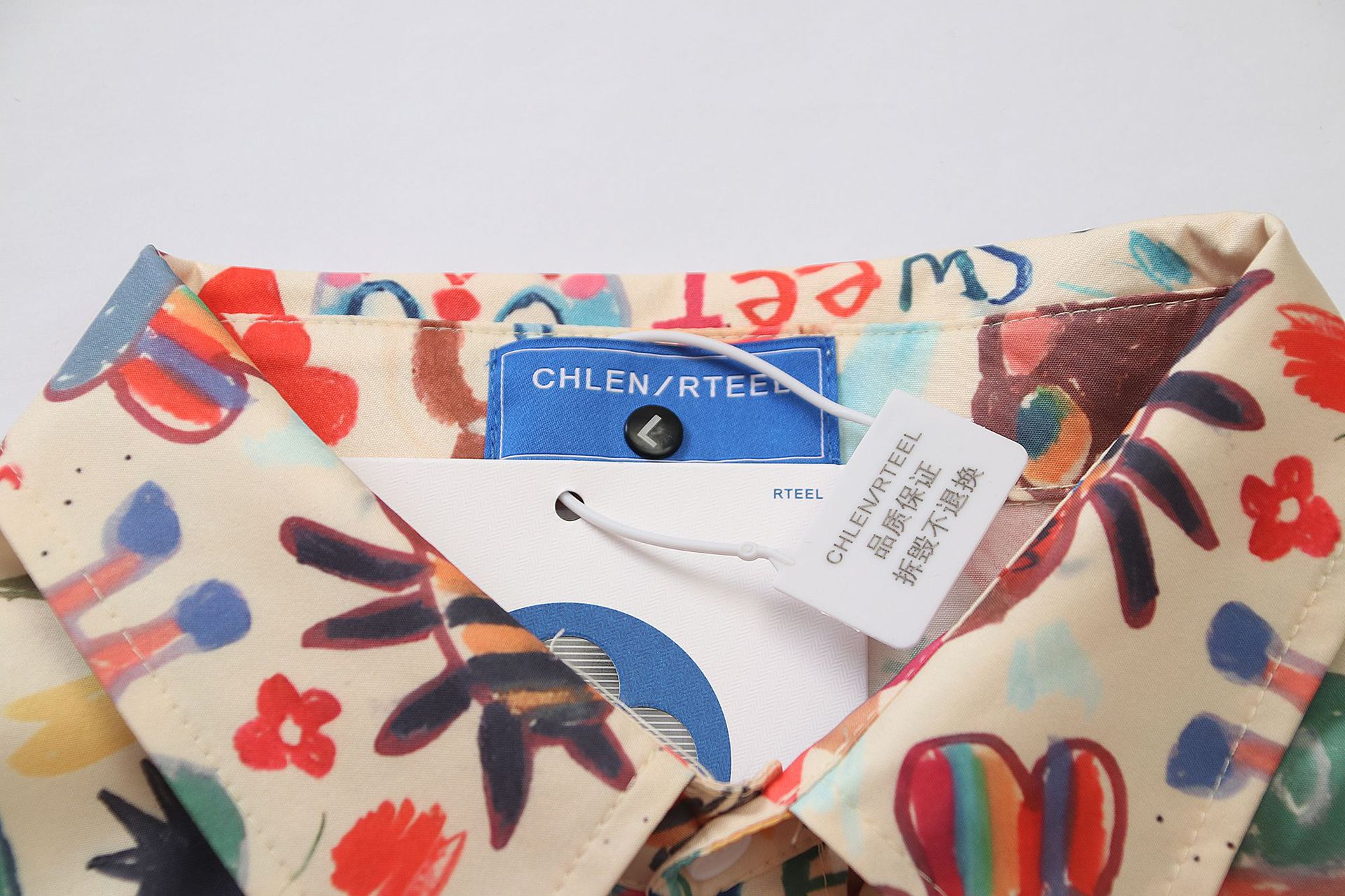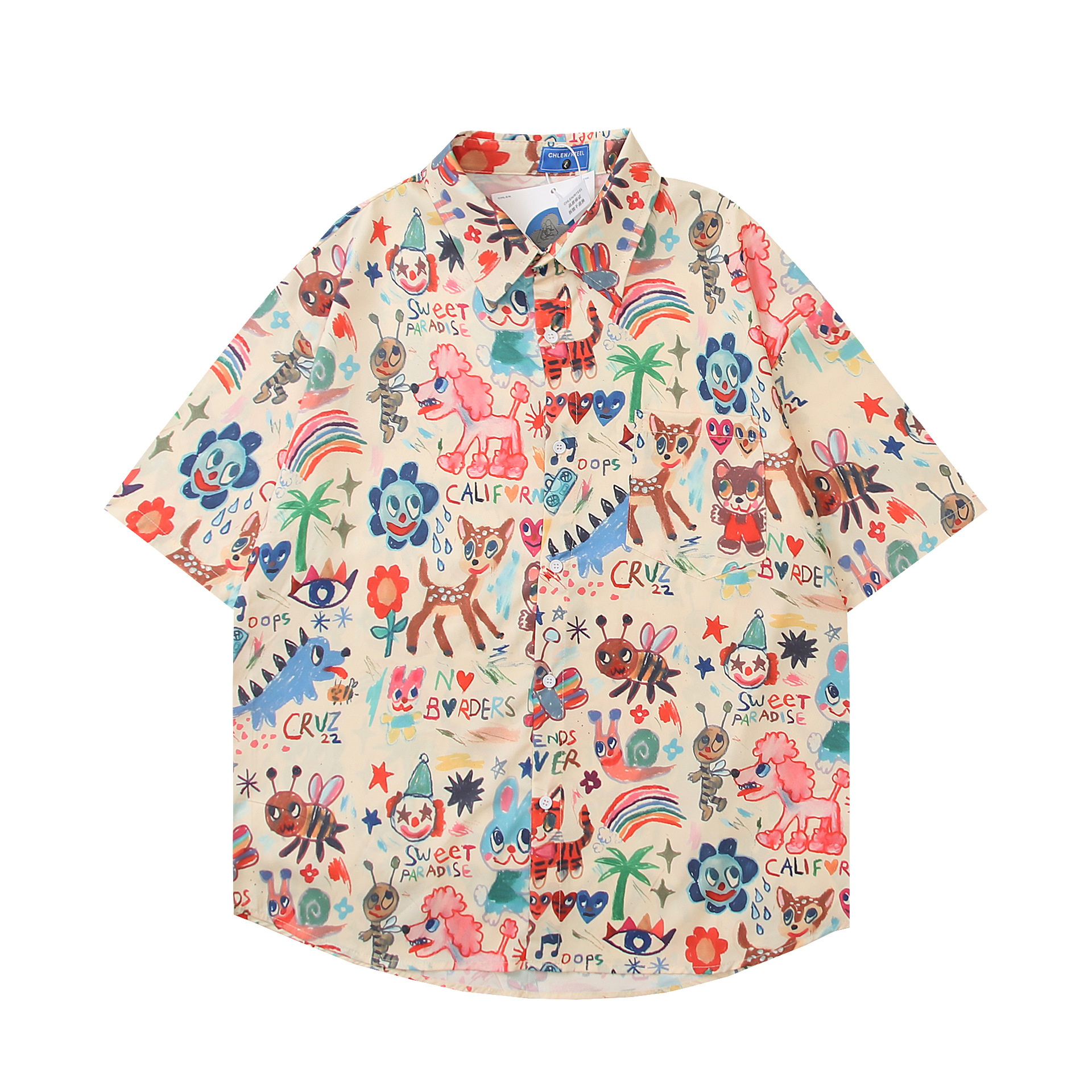 일본식 유치한 복고풍 귀여운 소녀의 도파민 반팔 만화 프린트 셔츠 남성용 오버 사이즈 루즈 셔츠스토어 가기