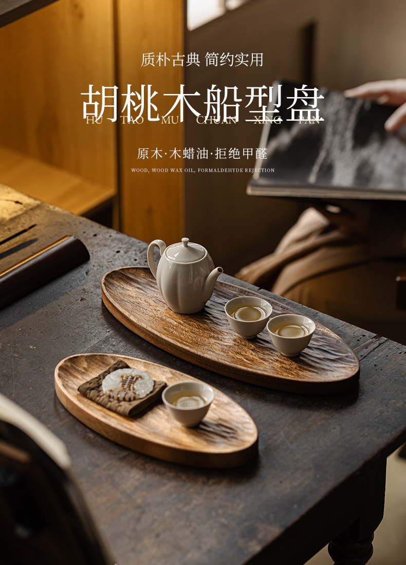 하오 란 호두 창조적 인 보트 모양의 차 트레이 중국 빈티지 상쾌한 트레이 단단한 나무 쿵푸 차 세트 차 트레이스토어 가기