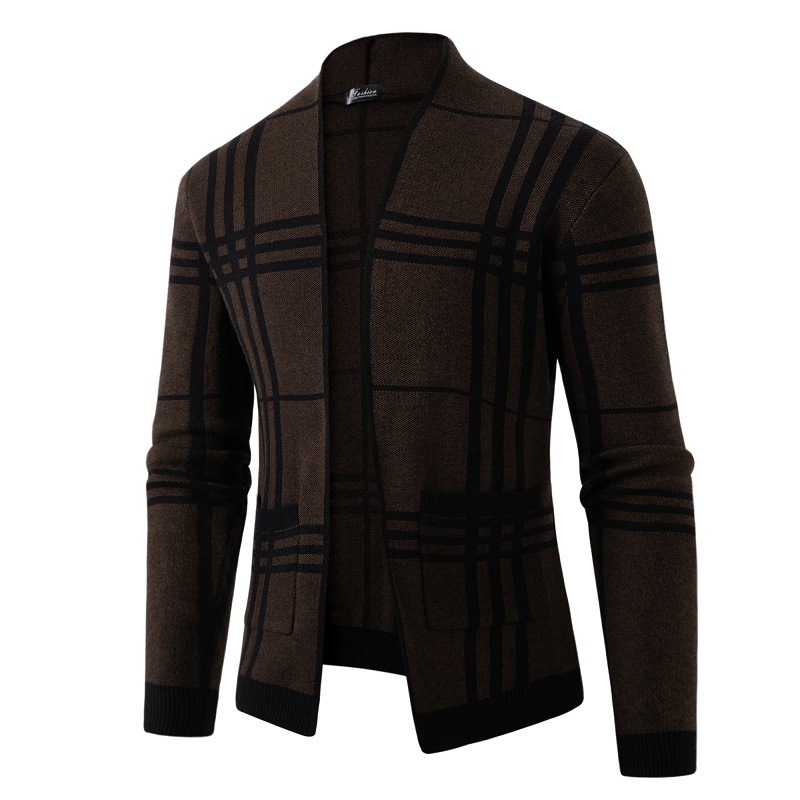 국경 2024 가을과 겨울 유럽과 미국 남자의 트렌디 한 격자 무늬 스웨터 슬림 핏 캐주얼 영국 카디건 스웨터 재킷스토어 가기