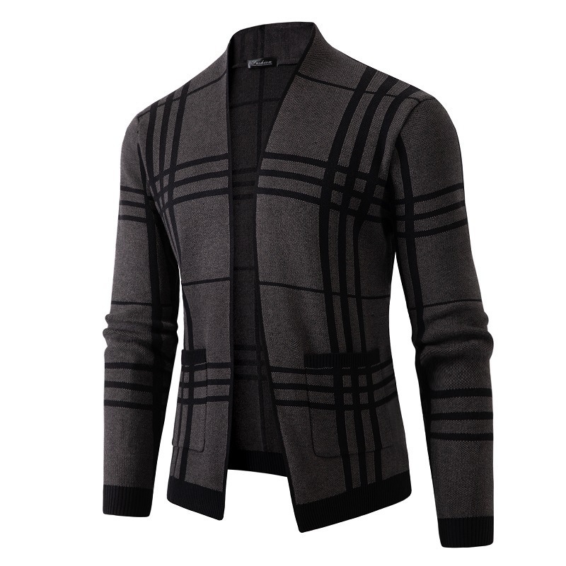 국경 2024 가을과 겨울 유럽과 미국 남자의 트렌디 한 격자 무늬 스웨터 슬림 핏 캐주얼 영국 카디건 스웨터 재킷