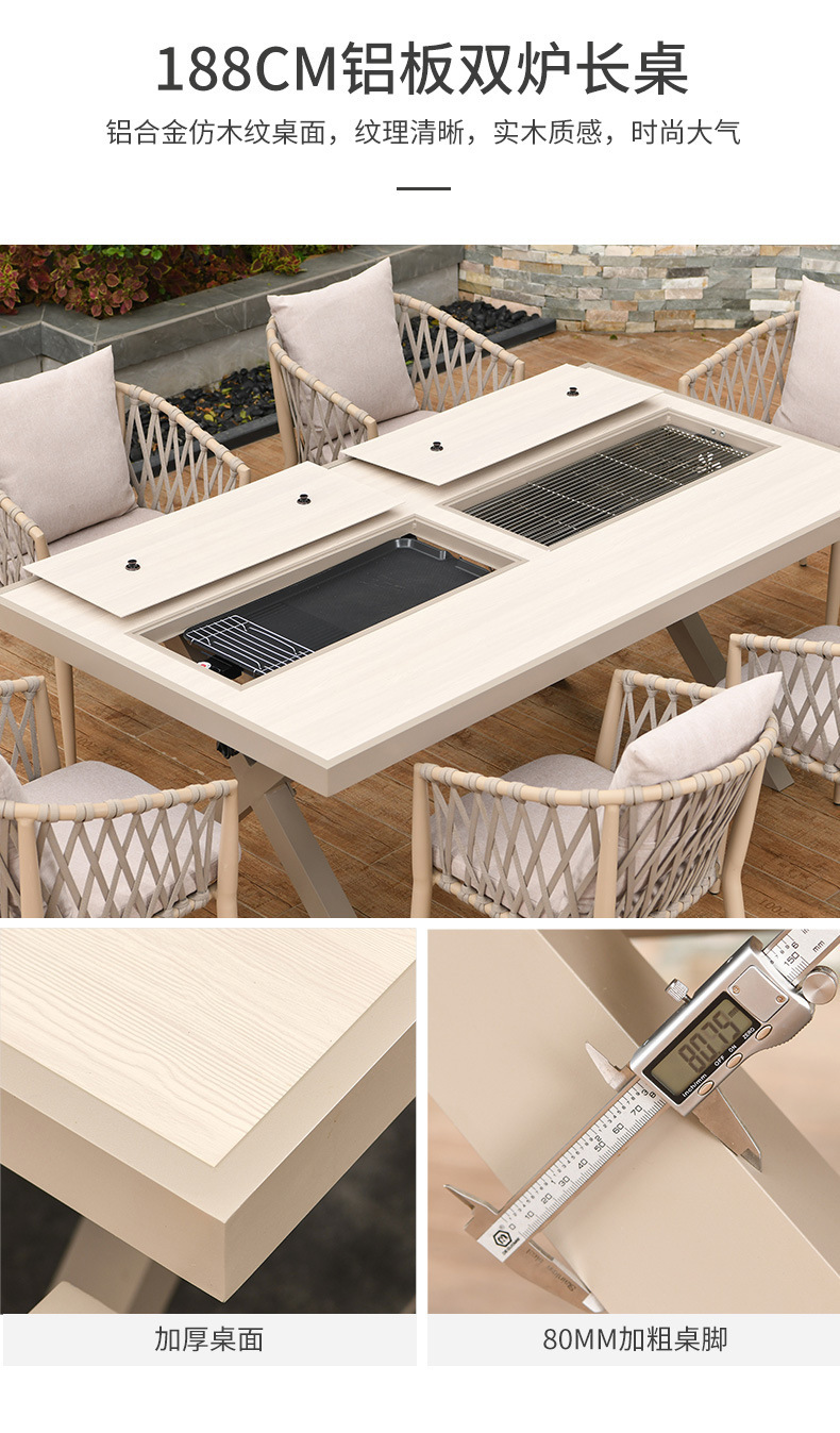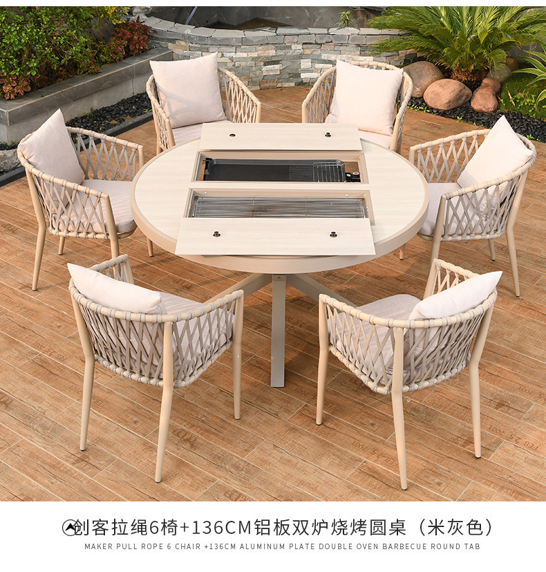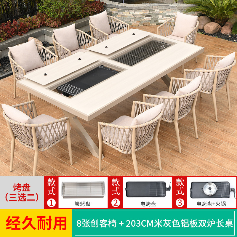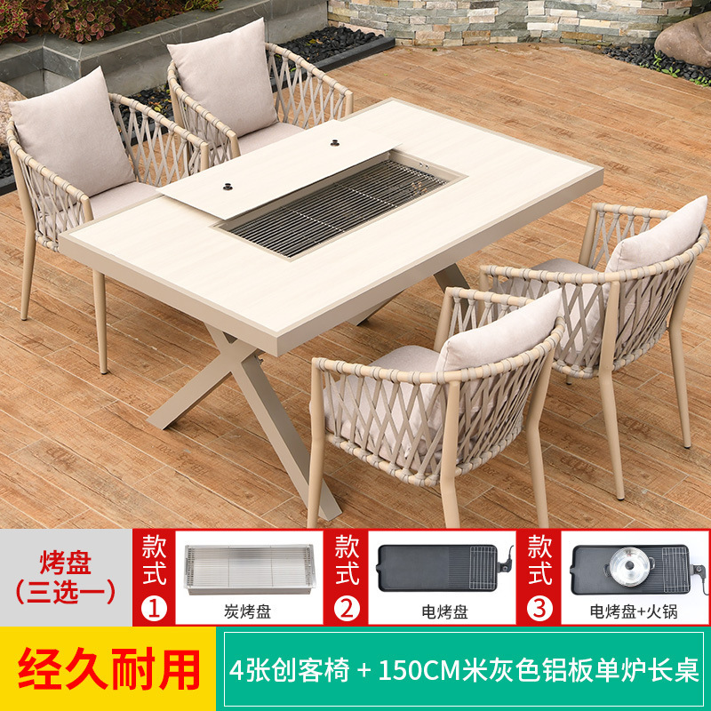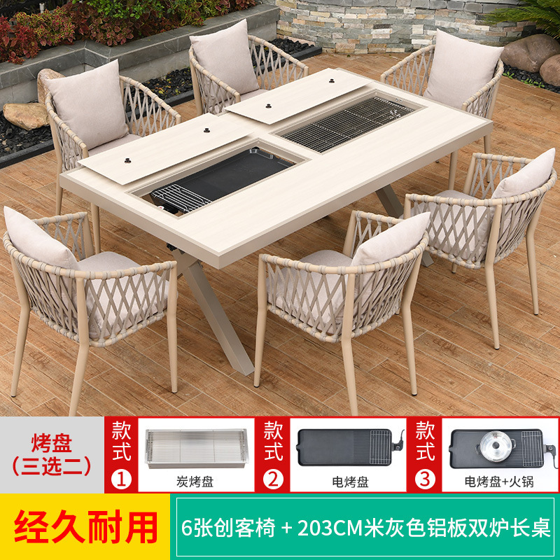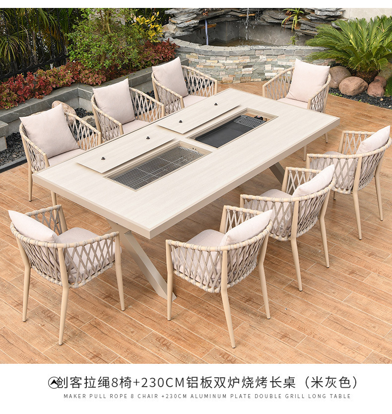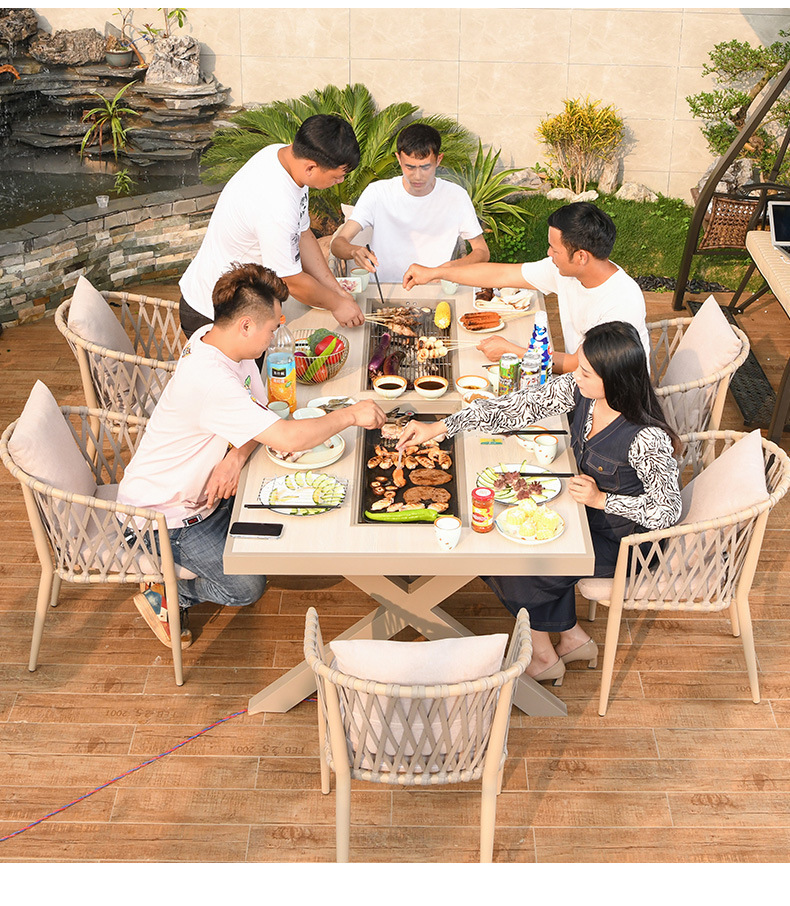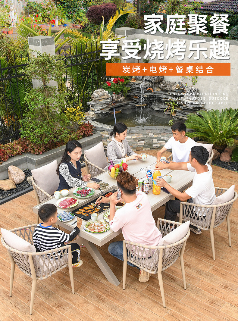 야외 바베큐 테이블과 의자 노르딕 바베큐 테이블 가정용 바베큐 스토브 전기 탄소 더블 베이킹 테이블 코트야드 빌라 알루미늄 합금 테이블 및 의자