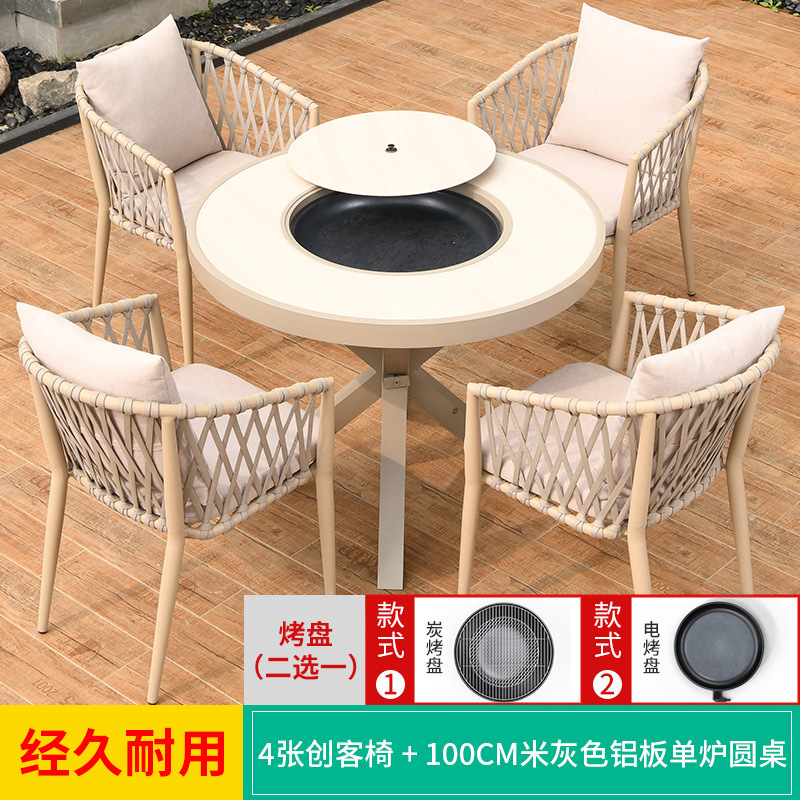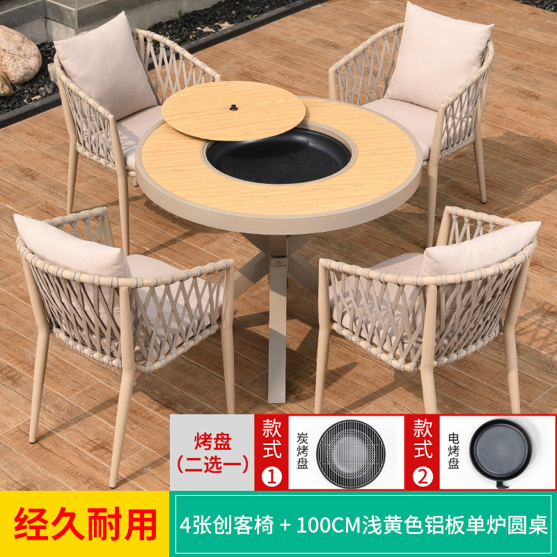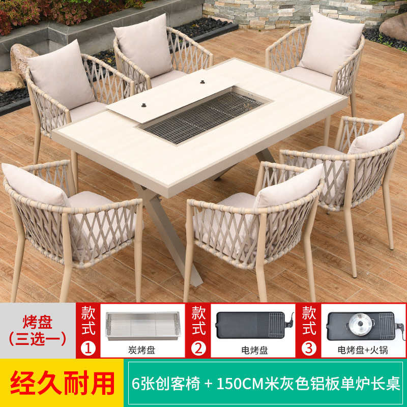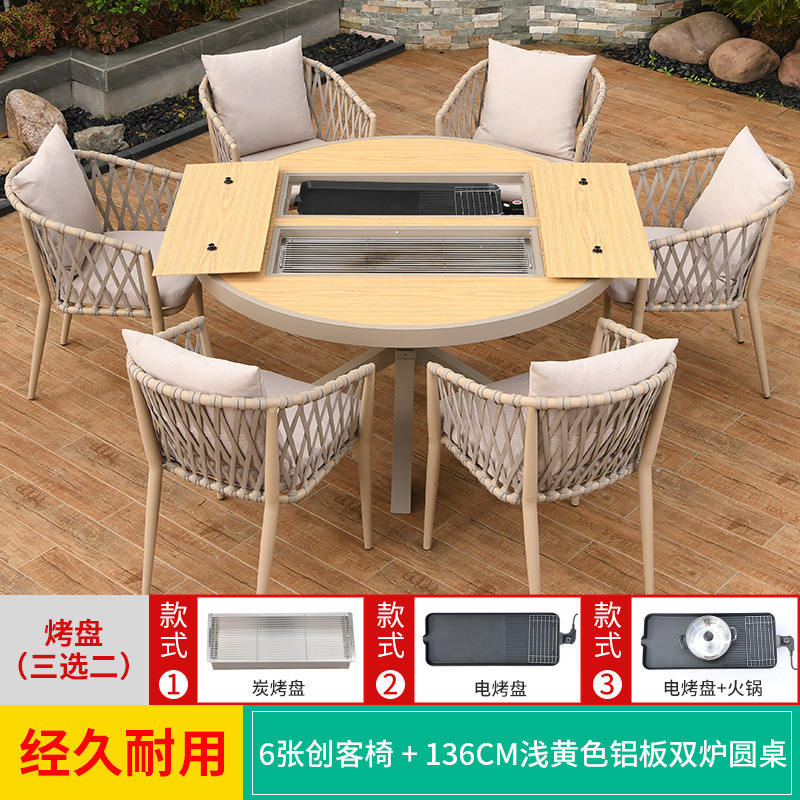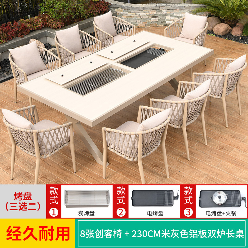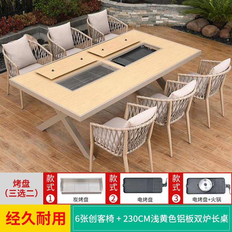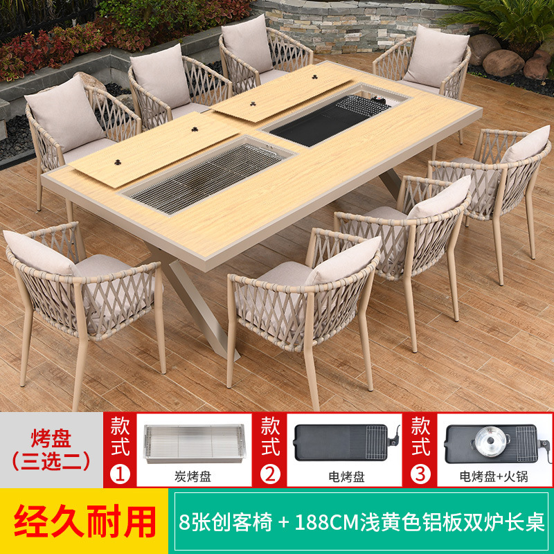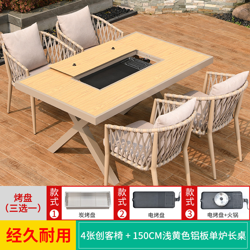 야외 바베큐 테이블과 의자 노르딕 바베큐 테이블 가정용 바베큐 스토브 전기 탄소 더블 베이킹 테이블 코트야드 빌라 알루미늄 합금 테이블 및 의자