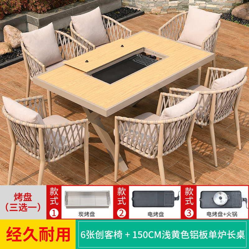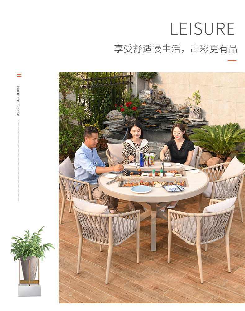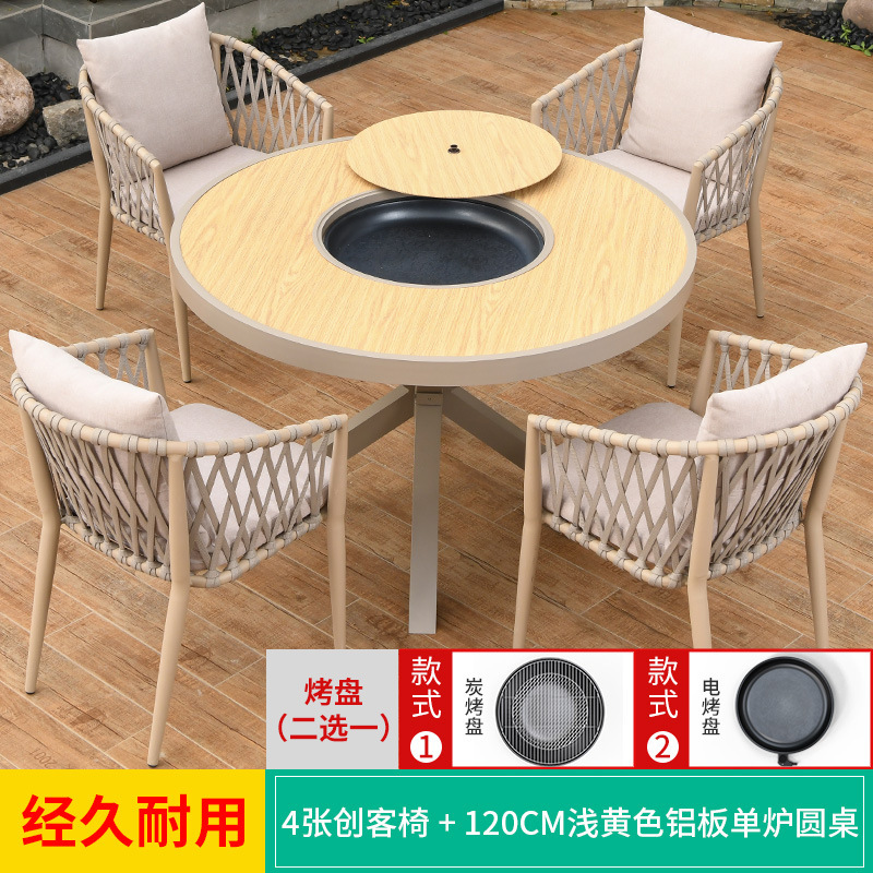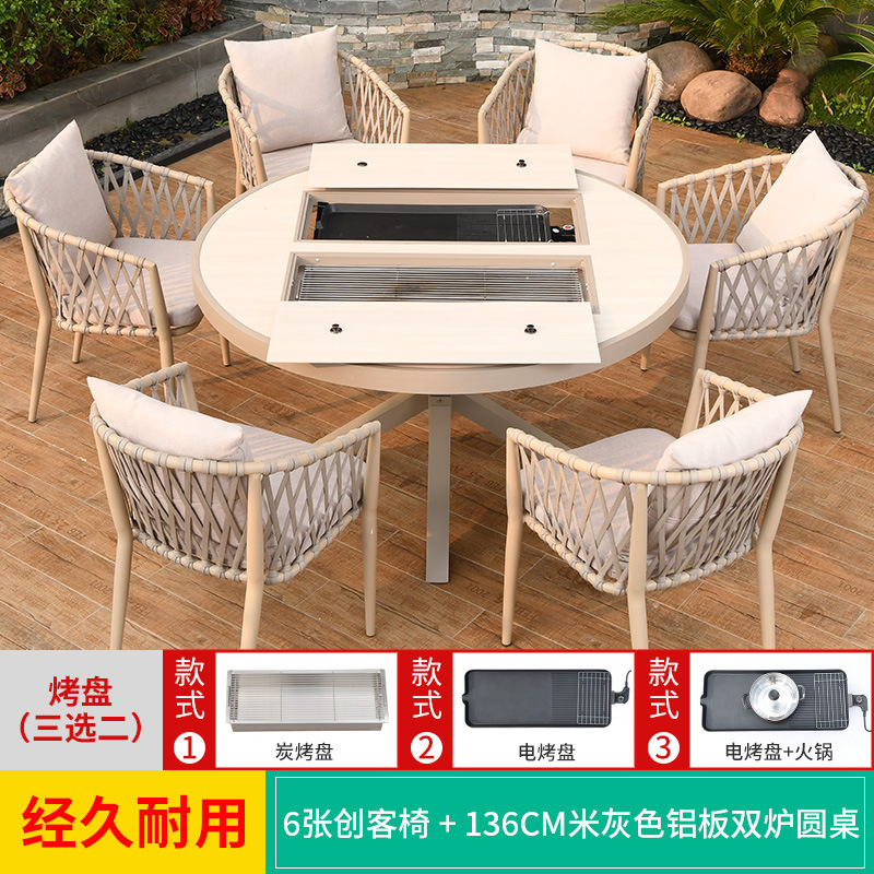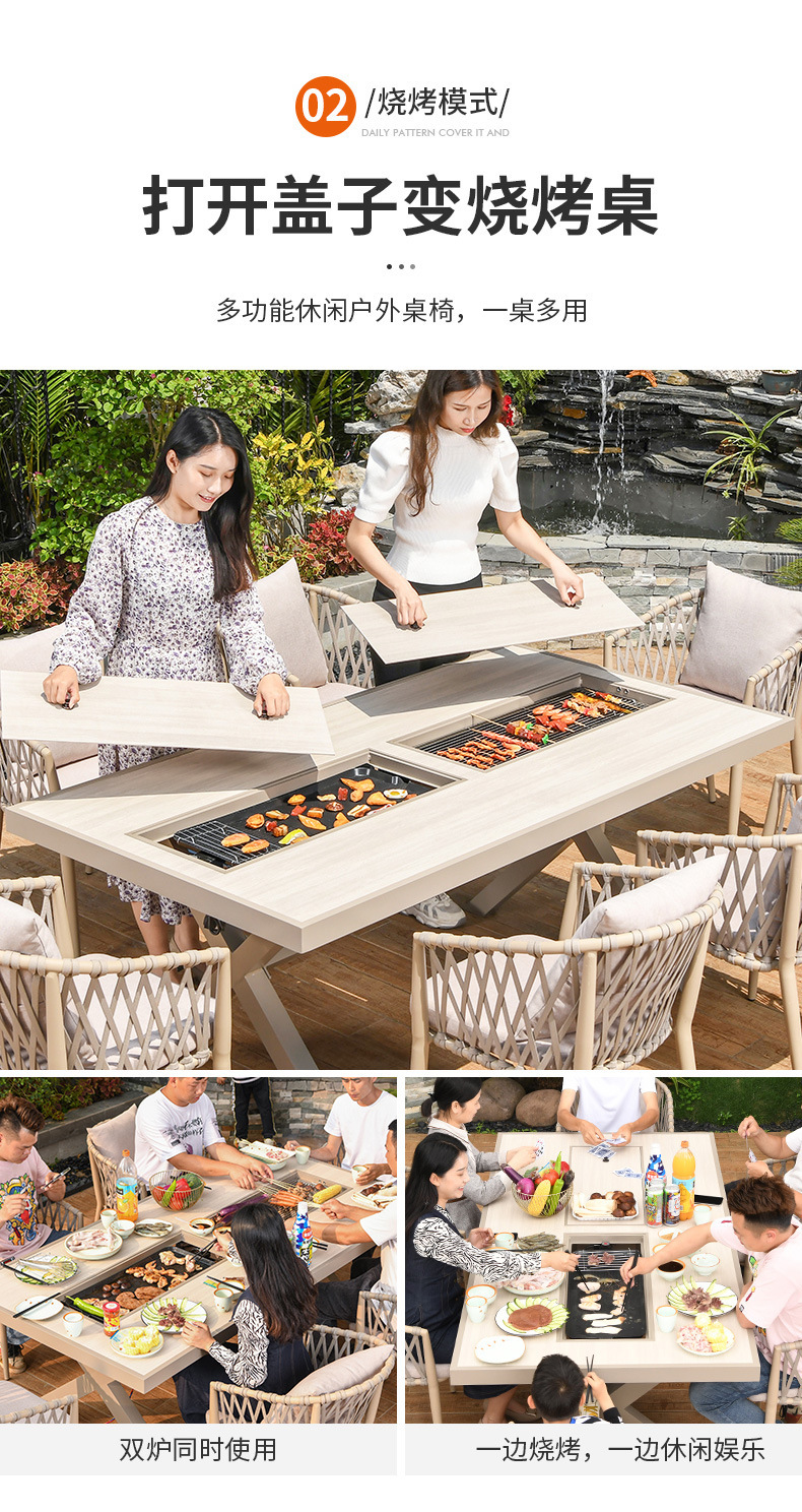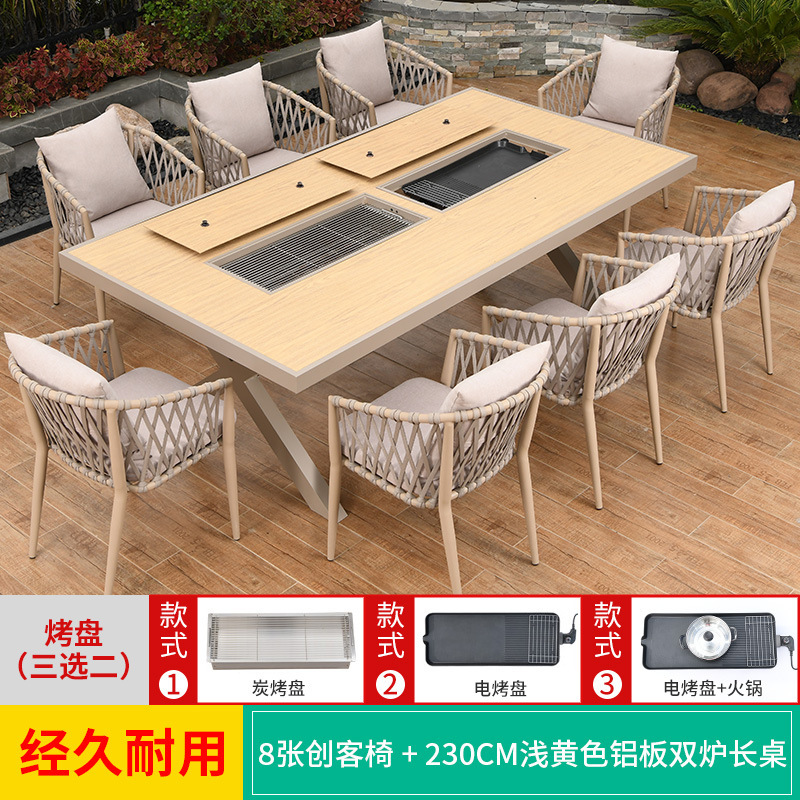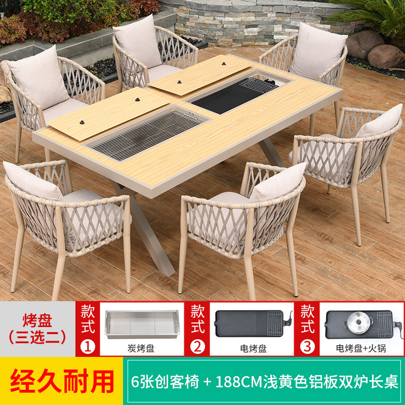 야외 바베큐 테이블과 의자 노르딕 바베큐 테이블 가정용 바베큐 스토브 전기 탄소 더블 베이킹 테이블 코트야드 빌라 알루미늄 합금 테이블 및 의자