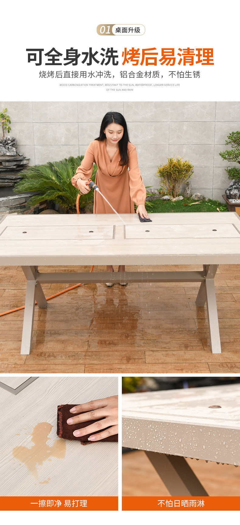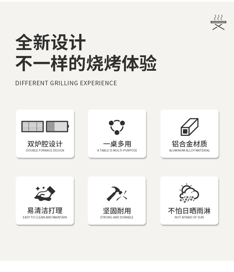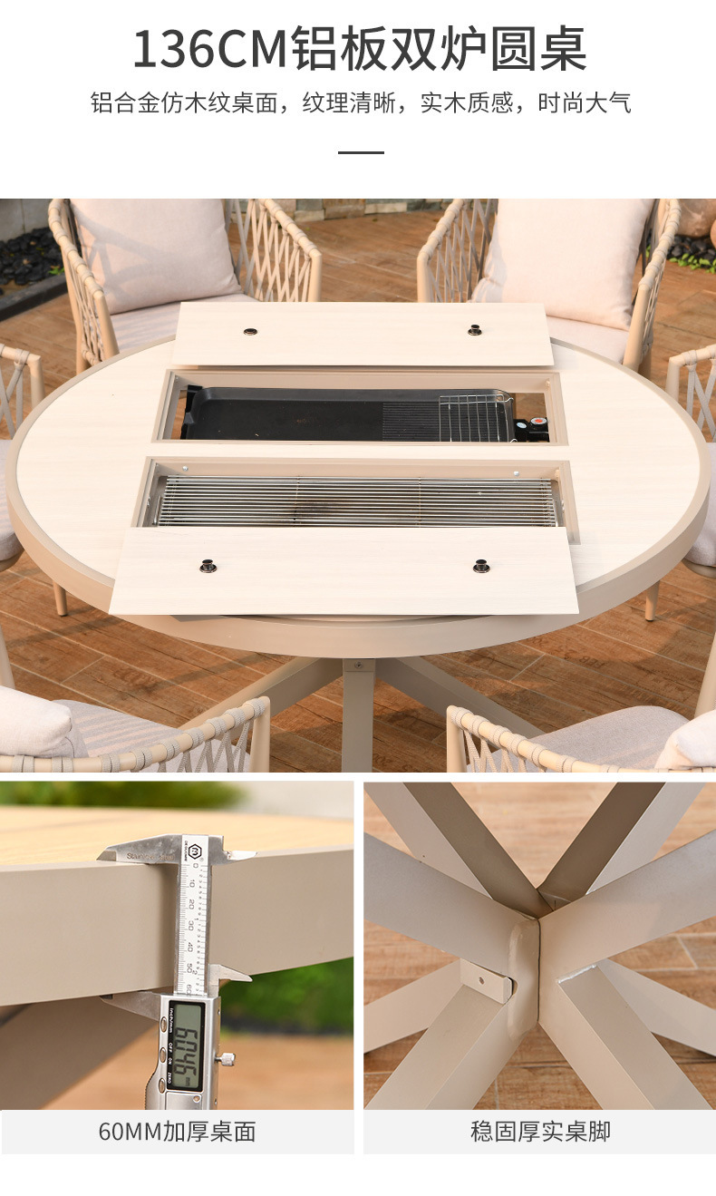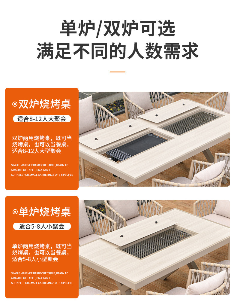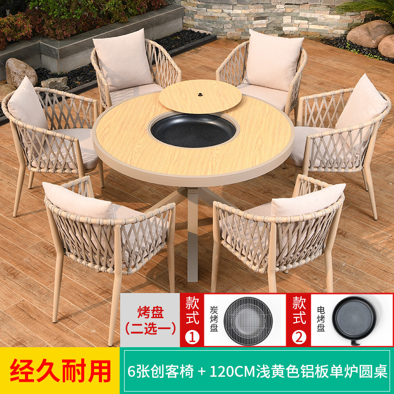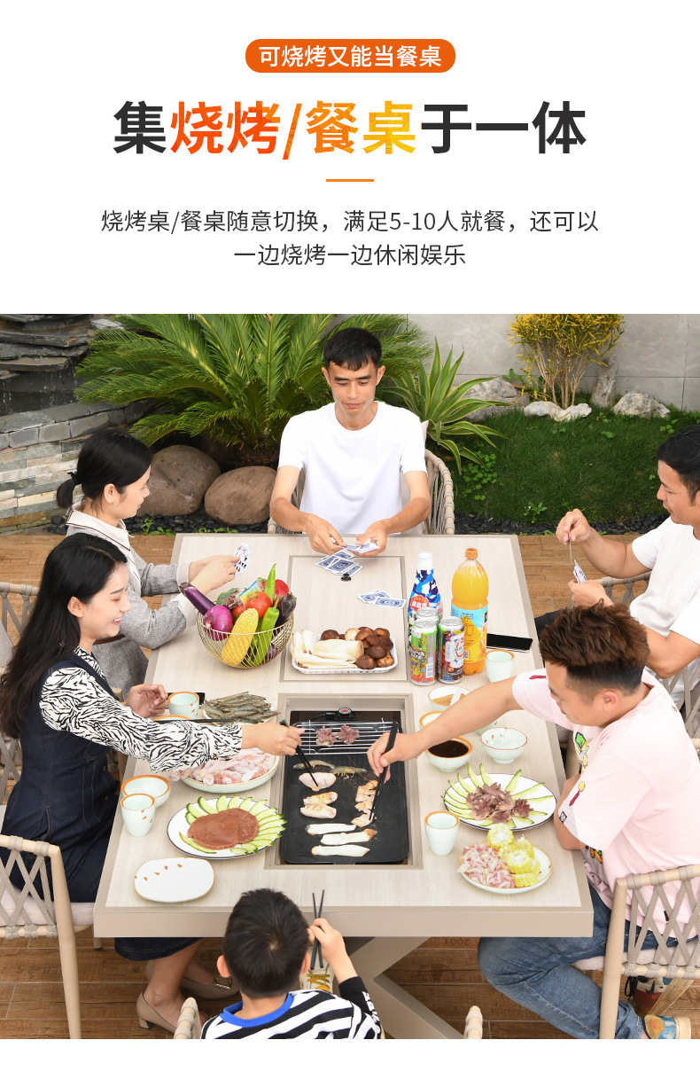 야외 바베큐 테이블과 의자 노르딕 바베큐 테이블 가정용 바베큐 스토브 전기 탄소 더블 베이킹 테이블 코트야드 빌라 알루미늄 합금 테이블 및 의자