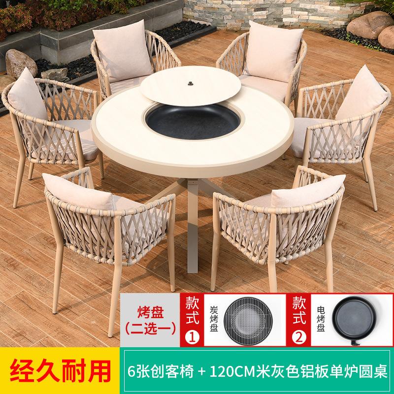 야외 바베큐 테이블과 의자 노르딕 바베큐 테이블 가정용 바베큐 스토브 전기 탄소 더블 베이킹 테이블 코트야드 빌라 알루미늄 합금 테이블 및 의자스토어 가기
