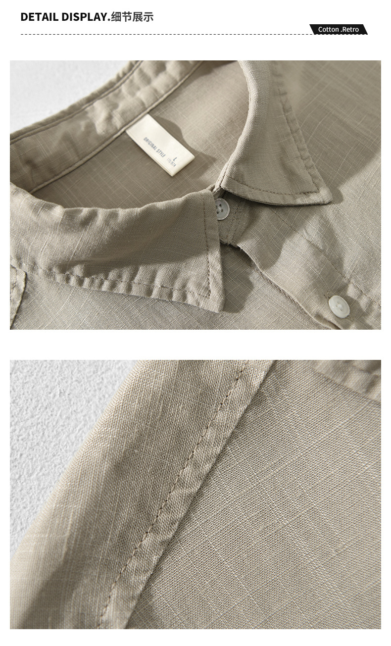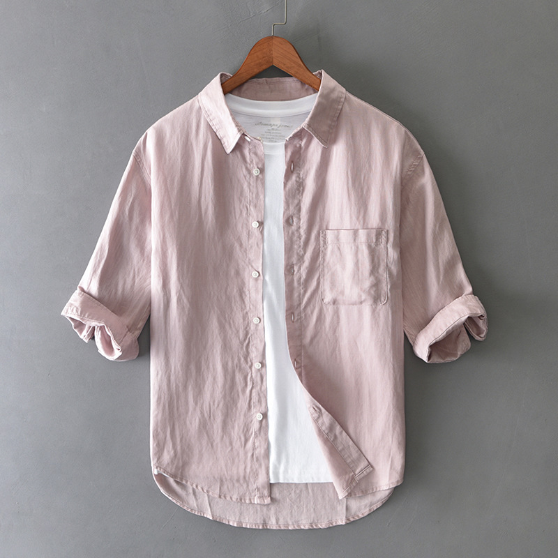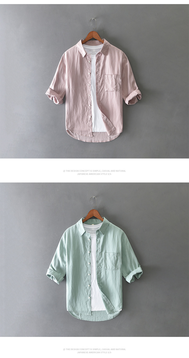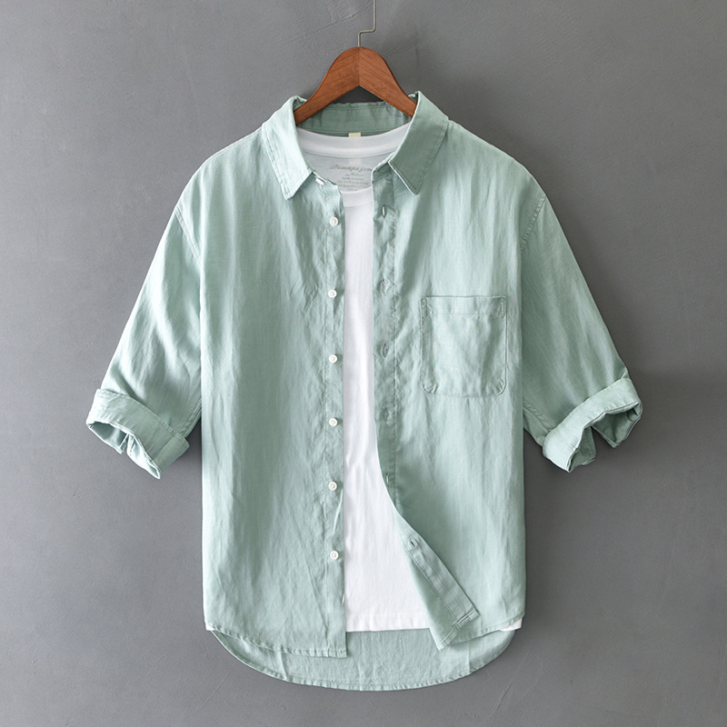 T201 남자 여름 린넨 7 점 소매 캐주얼 셔츠 머리카락 세대스토어 가기