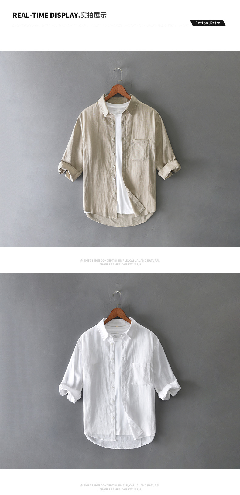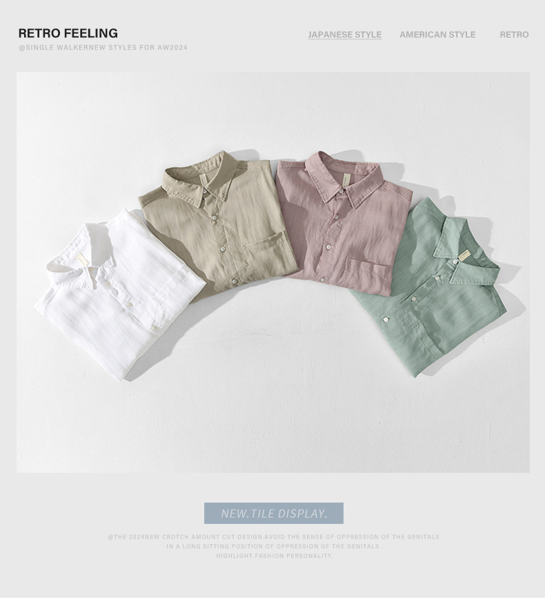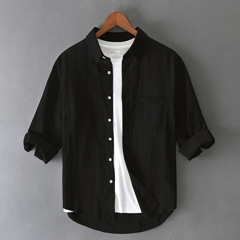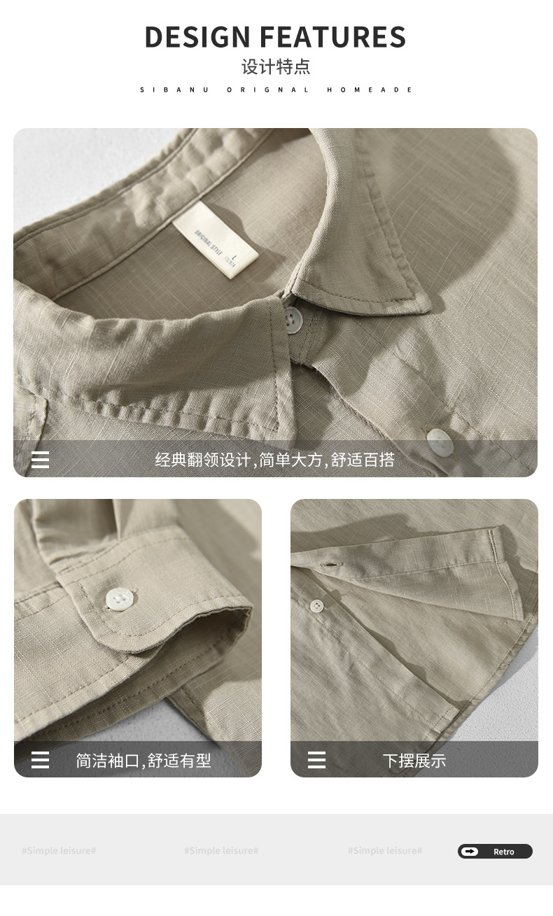T201 남자 여름 린넨 7 점 소매 캐주얼 셔츠 머리카락 세대스토어 가기