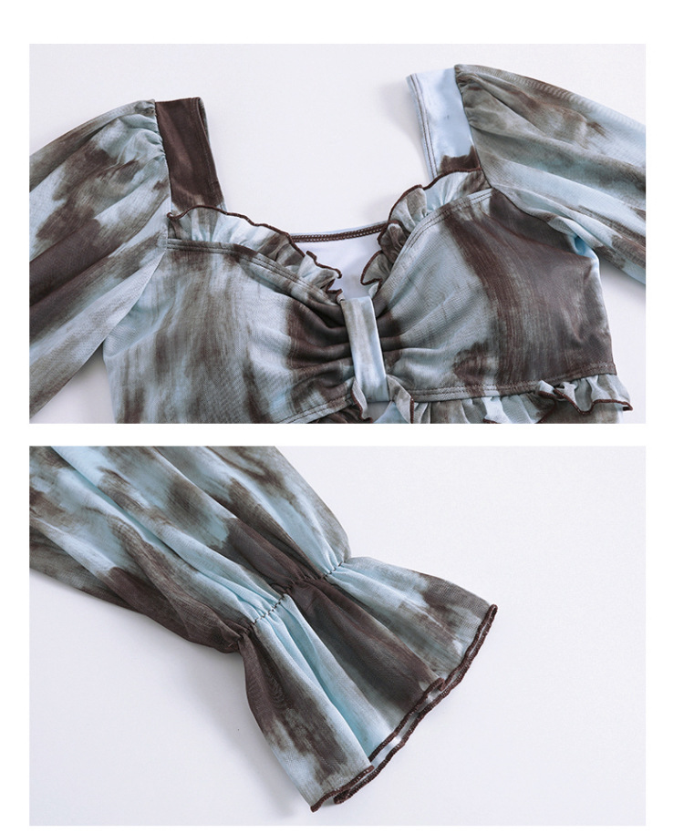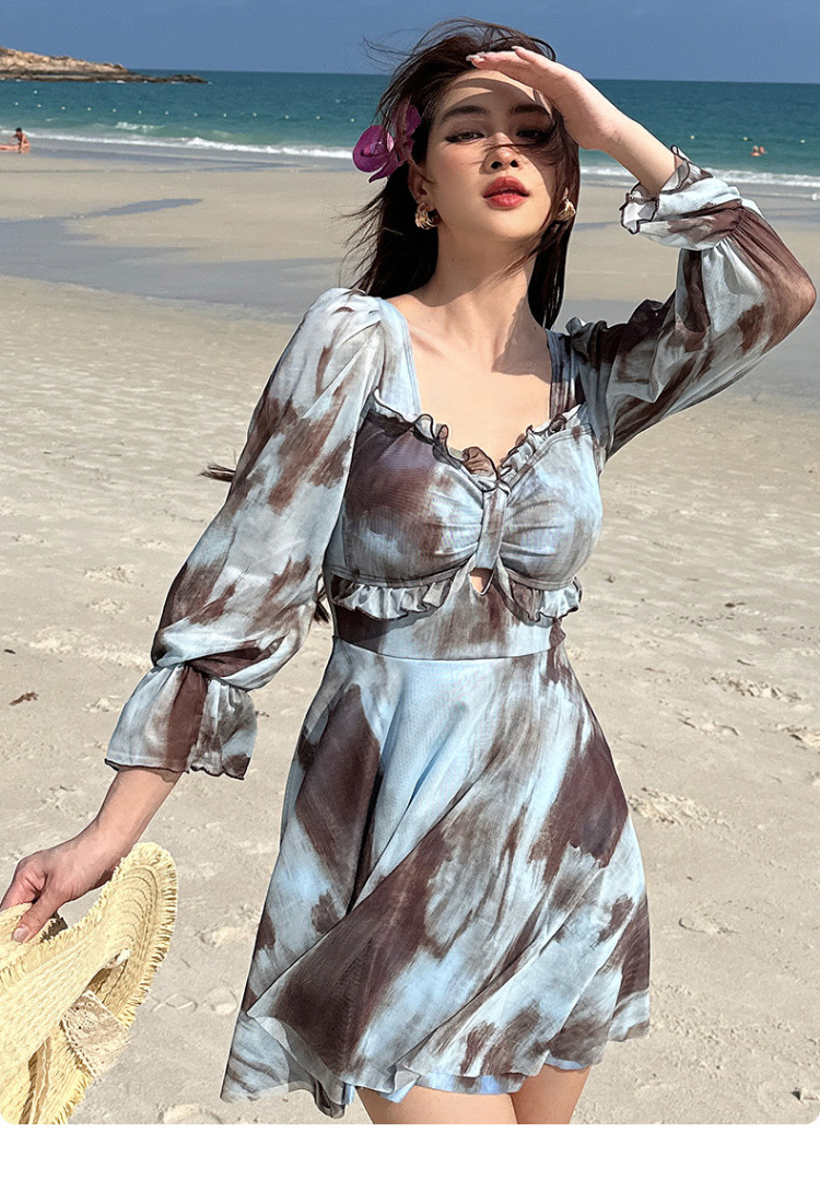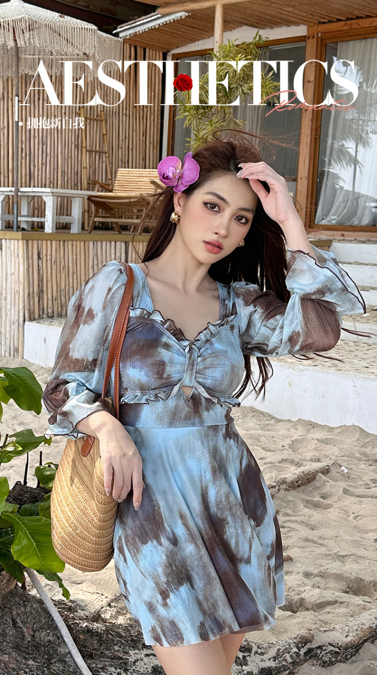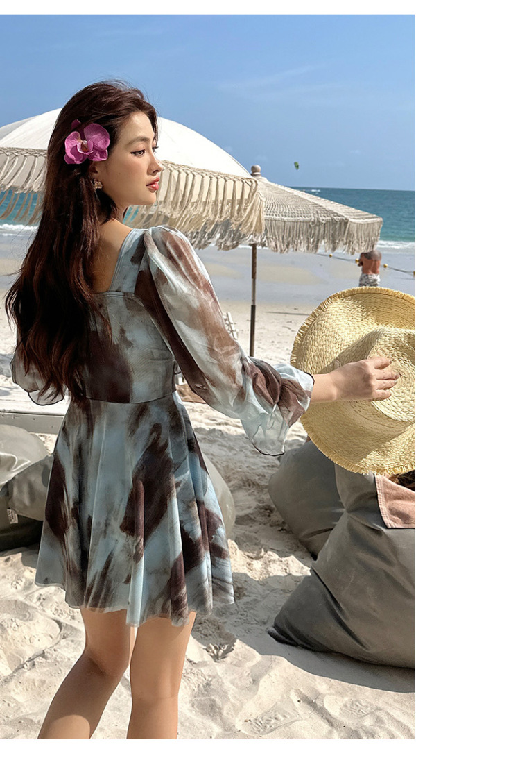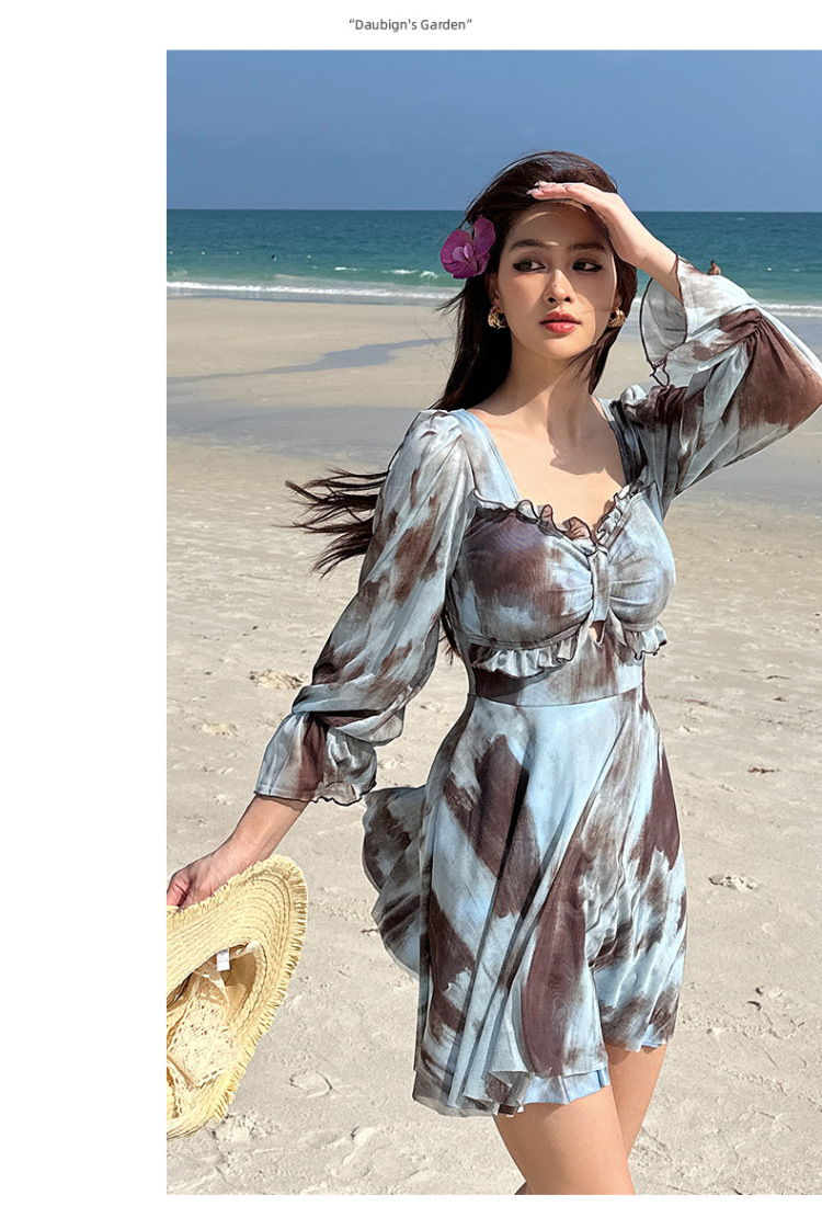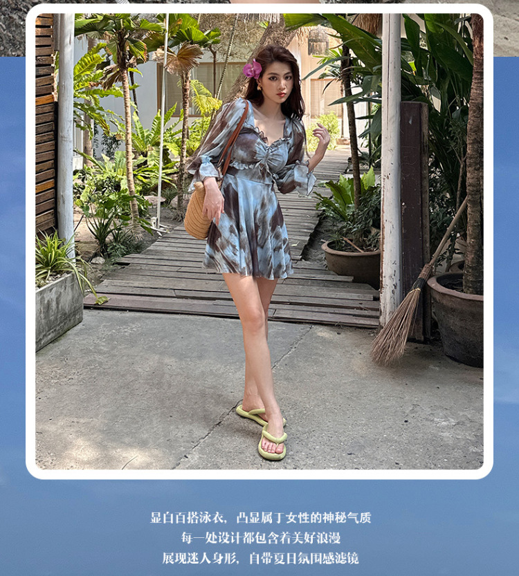 그물 붉은 바람 수영복 여성의 플러스 사이즈 지방 mm200 kg 슬림 배꼽 고기 보수적 소녀 원피스 스커트 긴 소매 온천스토어 가기