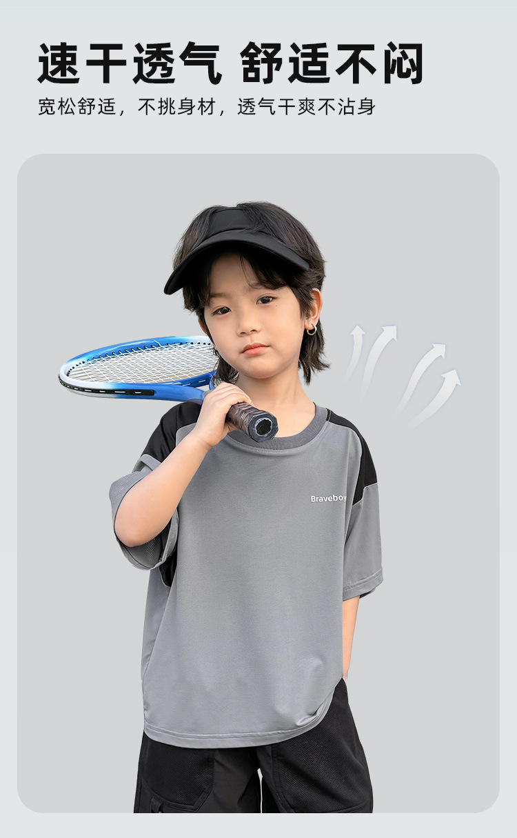 하이마 아동용 속건 반팔 티셔츠 2026 여름 신상 아동 스포츠웨어 여름옷 반팔 중대형 아동용스토어 가기