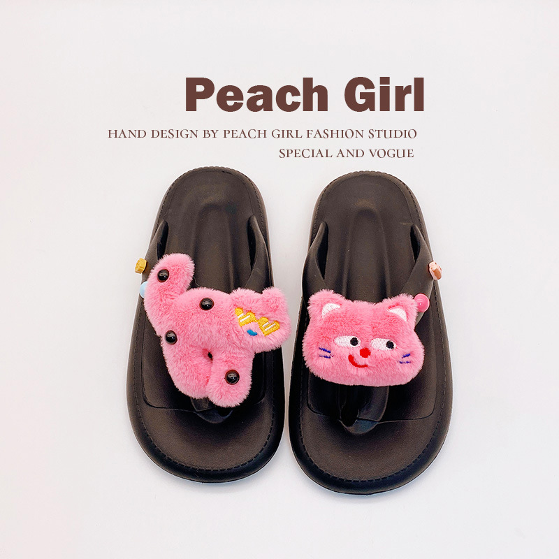 복숭아 소녀 튀긴 새끼 고양이 소녀 플립 플롭 외부 착용 플립 플롭 플랫 슬리퍼 HD5318A08