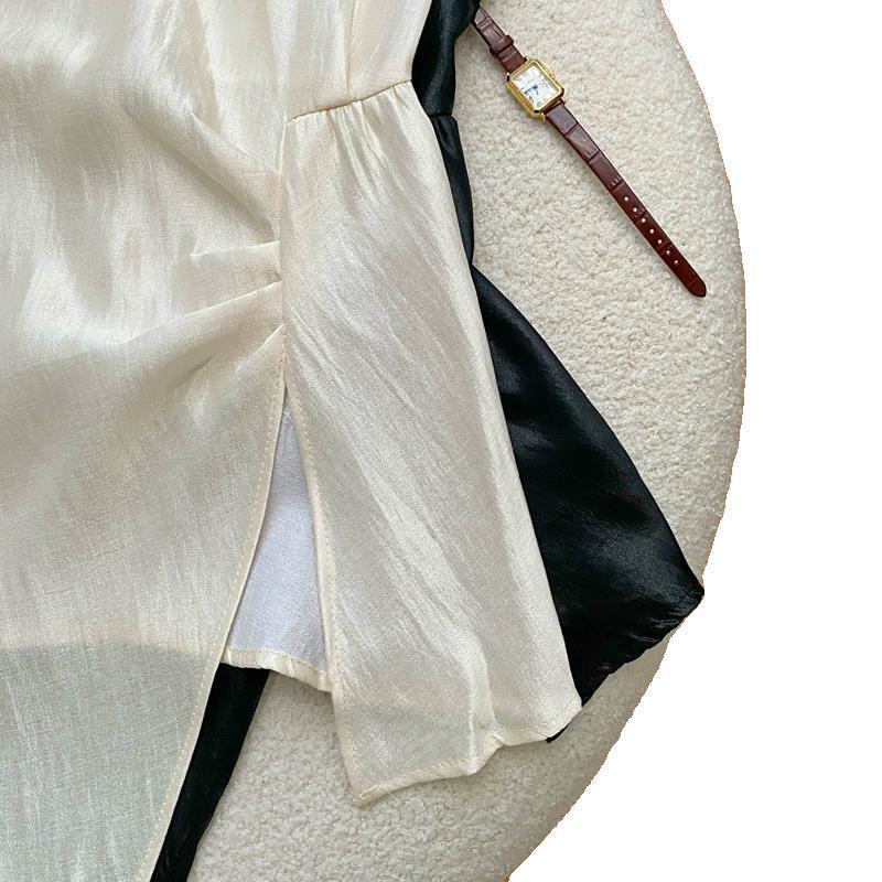 새로운 중국 젠 센스 새틴 원피스 여성 여름 연예인 스타일 불규칙한 민소매 탑 스커트 투피스 세트