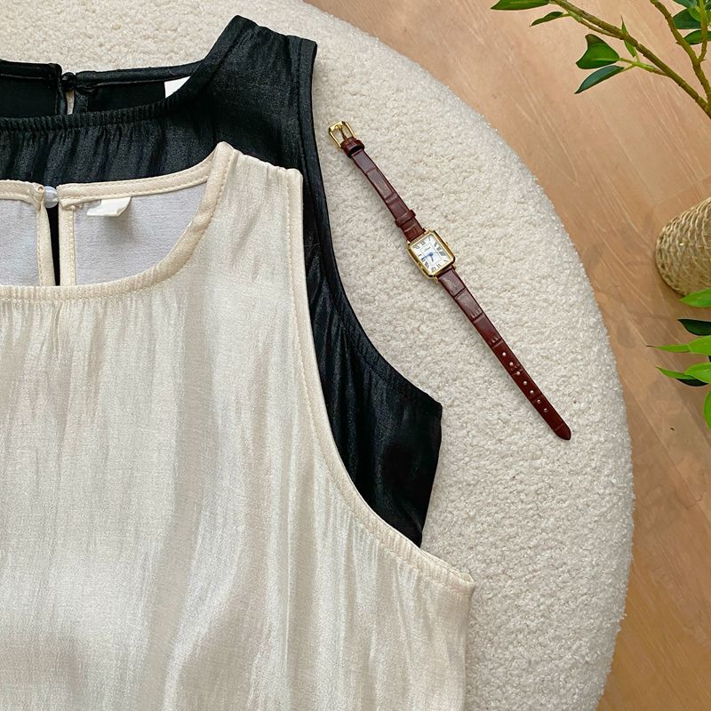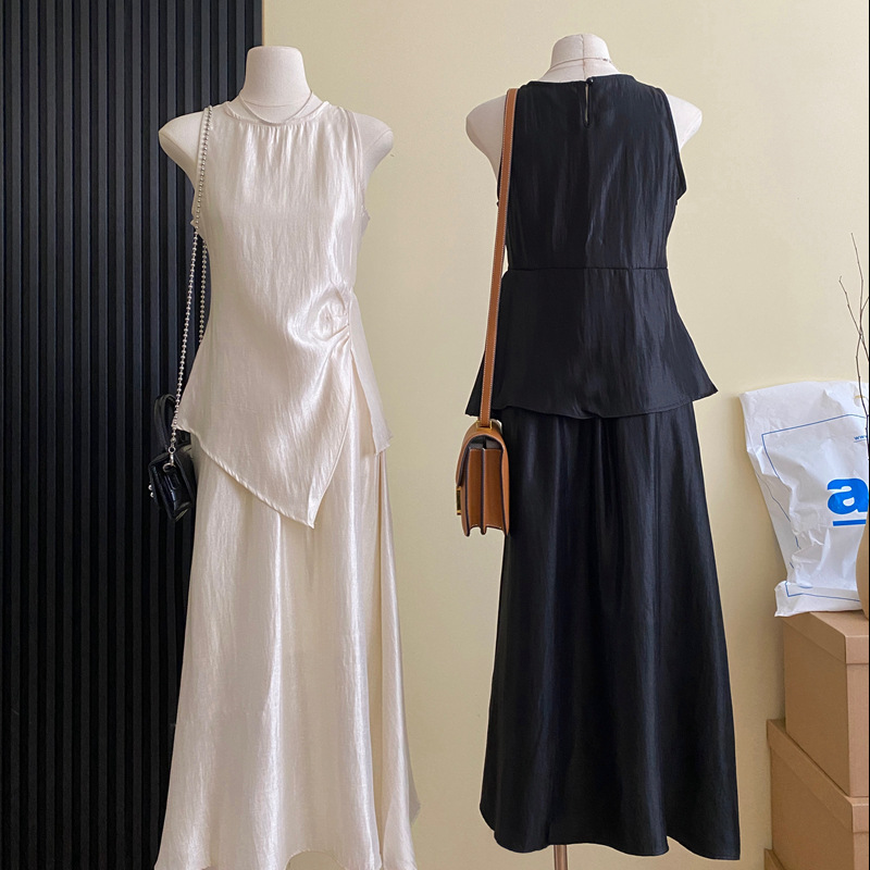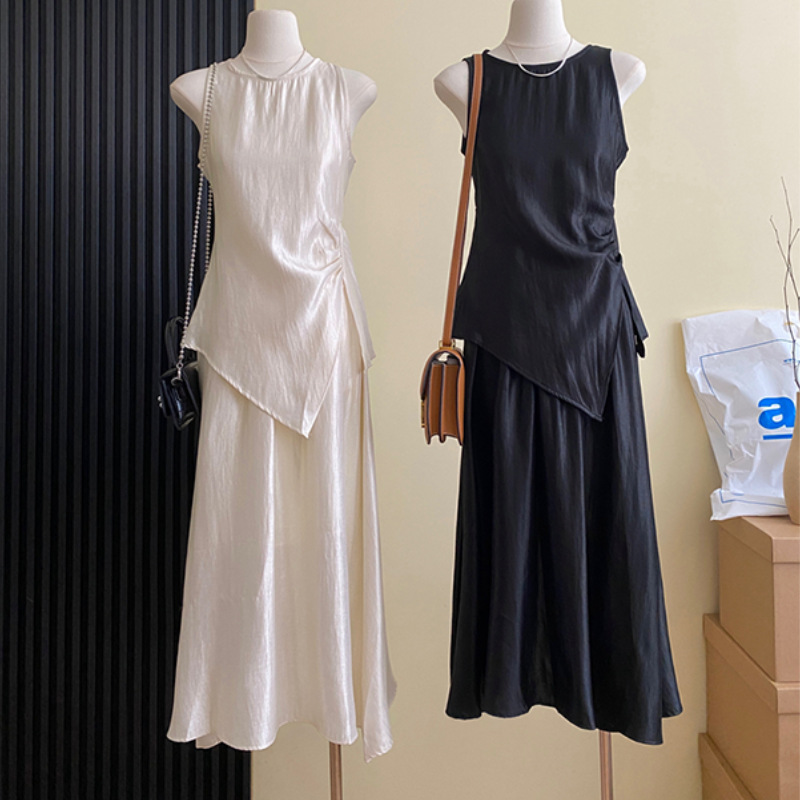 새로운 중국 젠 센스 새틴 원피스 여성 여름 연예인 스타일 불규칙한 민소매 탑 스커트 투피스 세트스토어 가기
