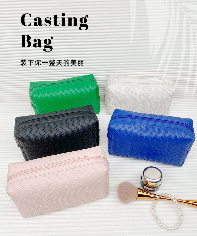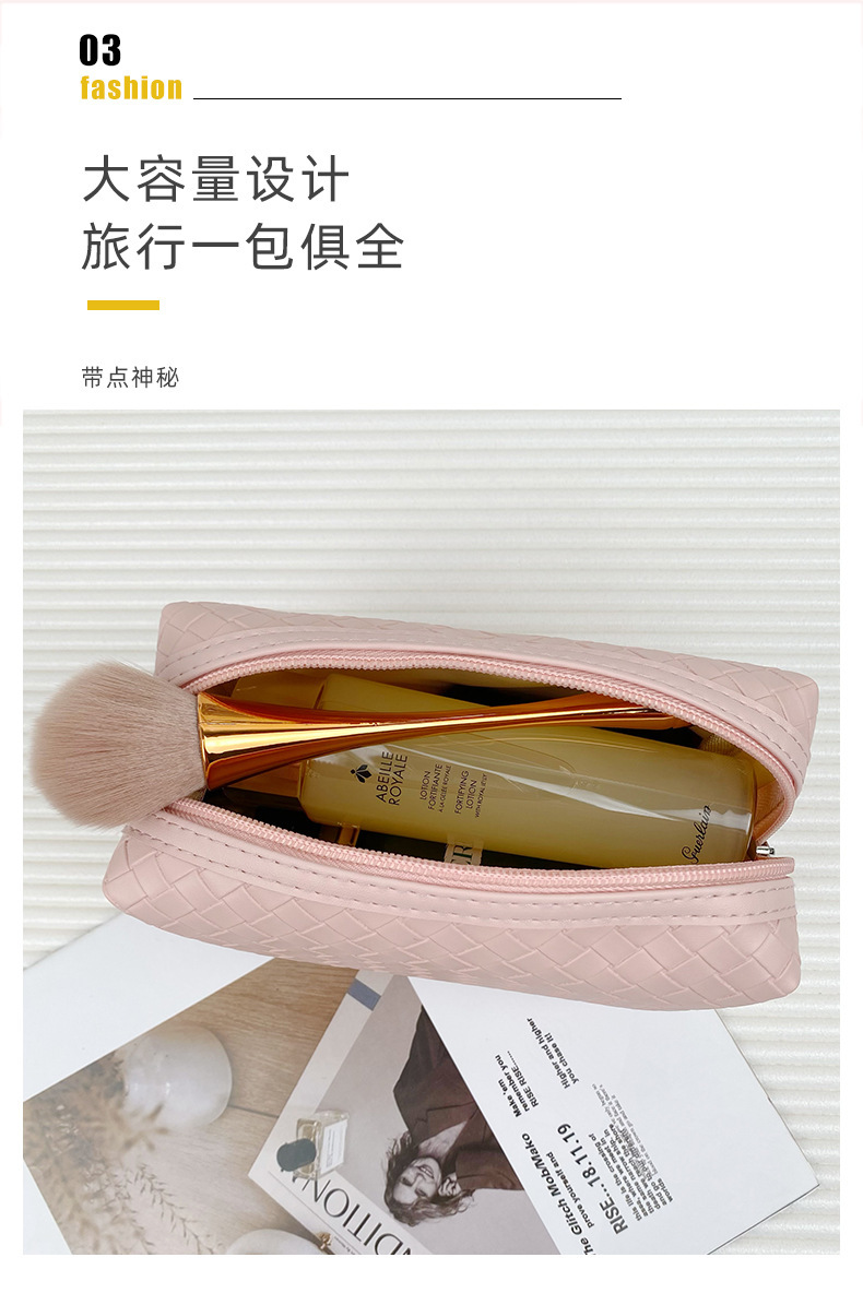 짠 PU 가죽 화장품 가방 방수 여행 대용량 휴대용 휴대용 화장품 브러시 가방 간단한 컬러 메이크업 가방