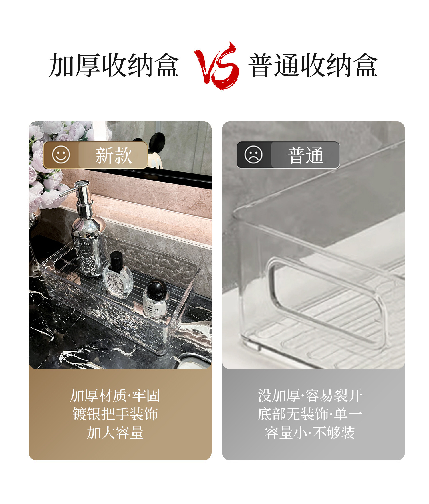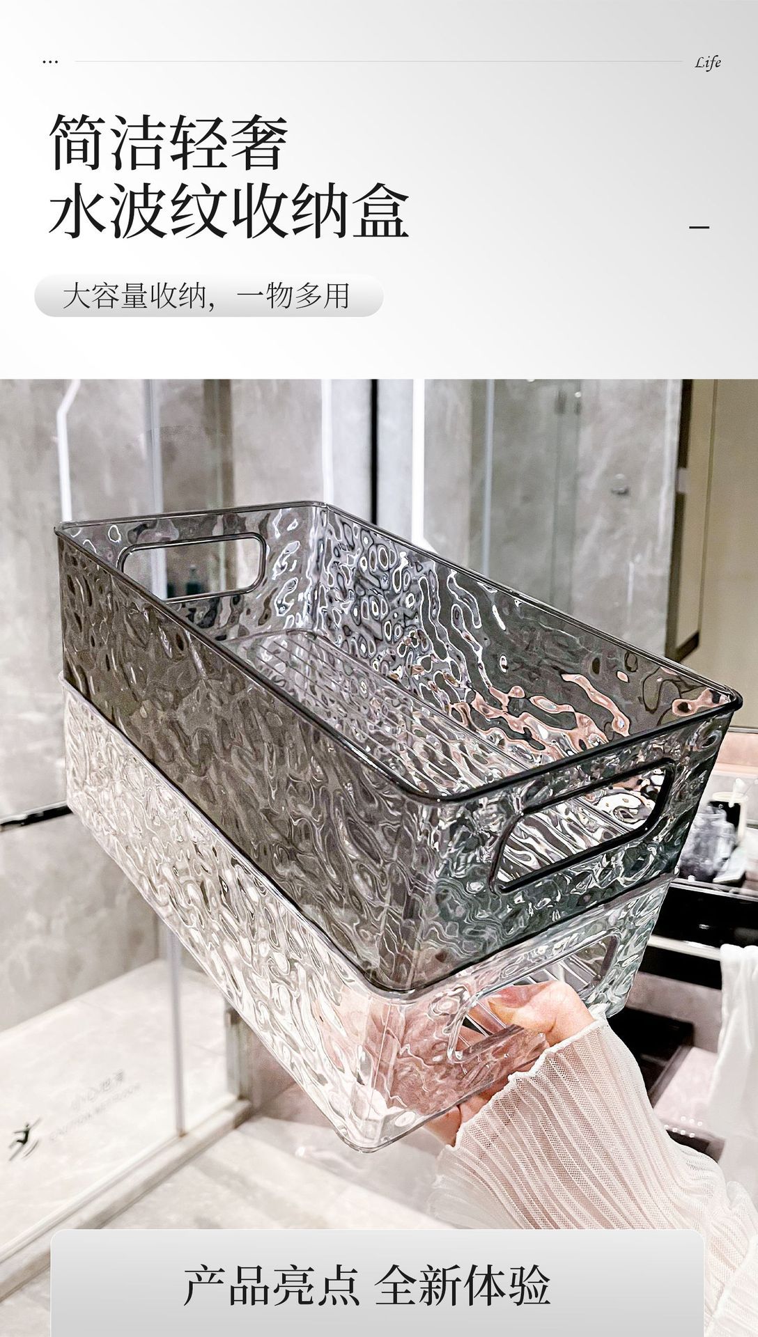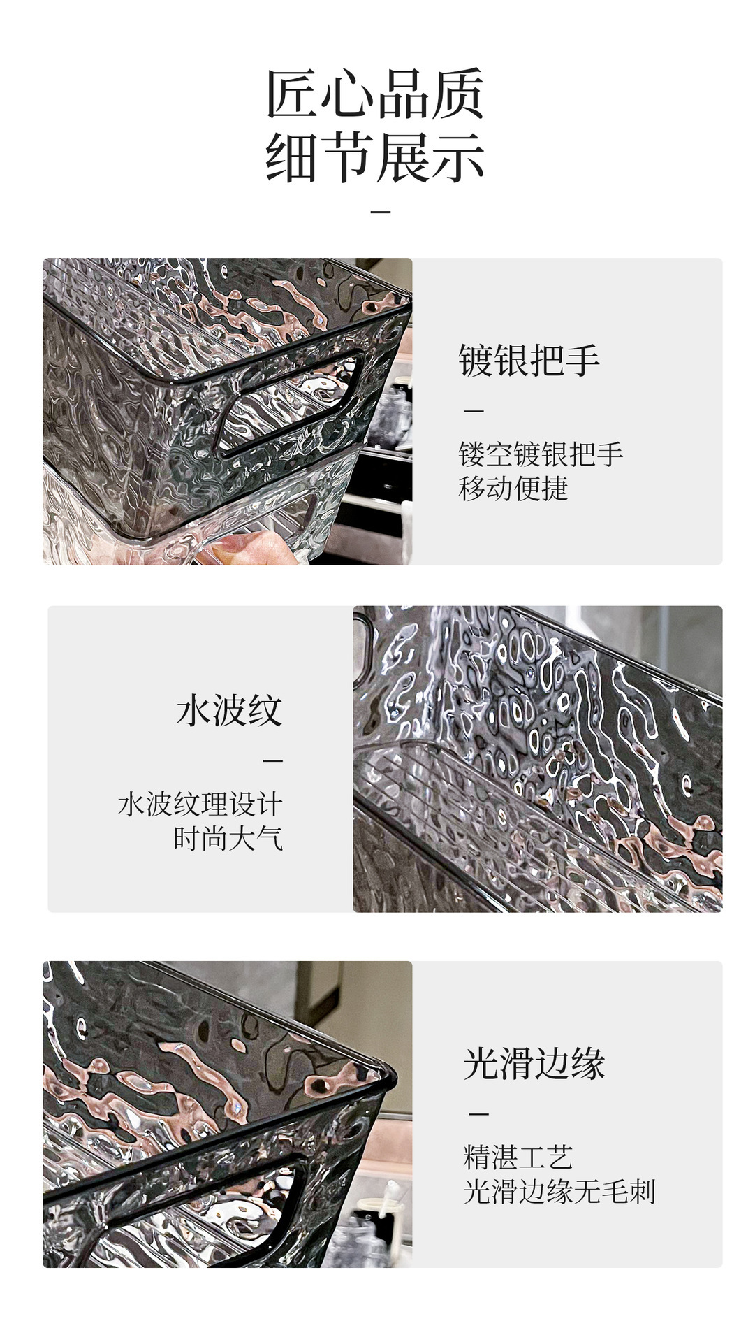 빙하 곡물 저장 상자 높은 색상 가치 욕실 데스크탑 화장품 마무리 상자 플라스틱 핸들 저장 바구니 도매