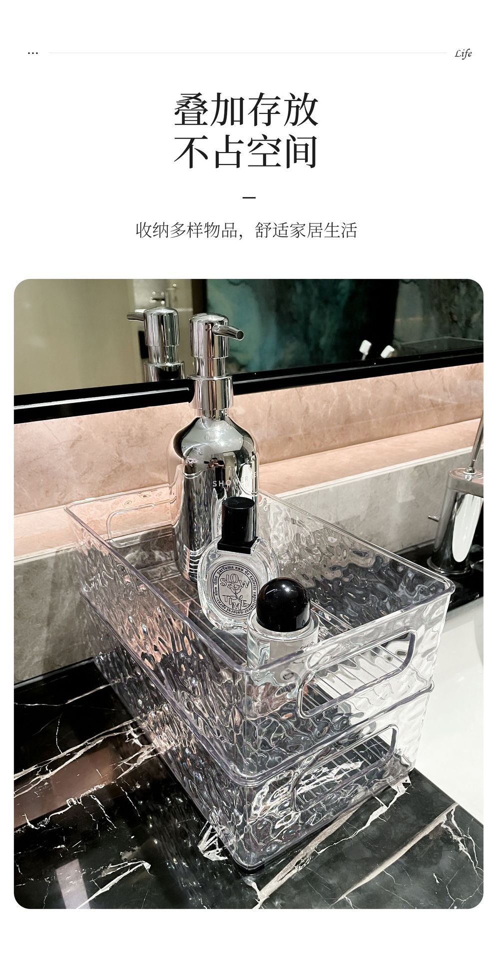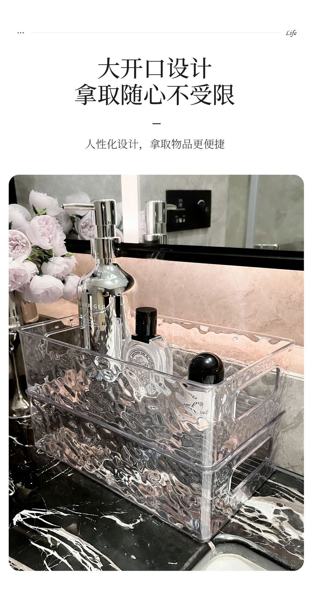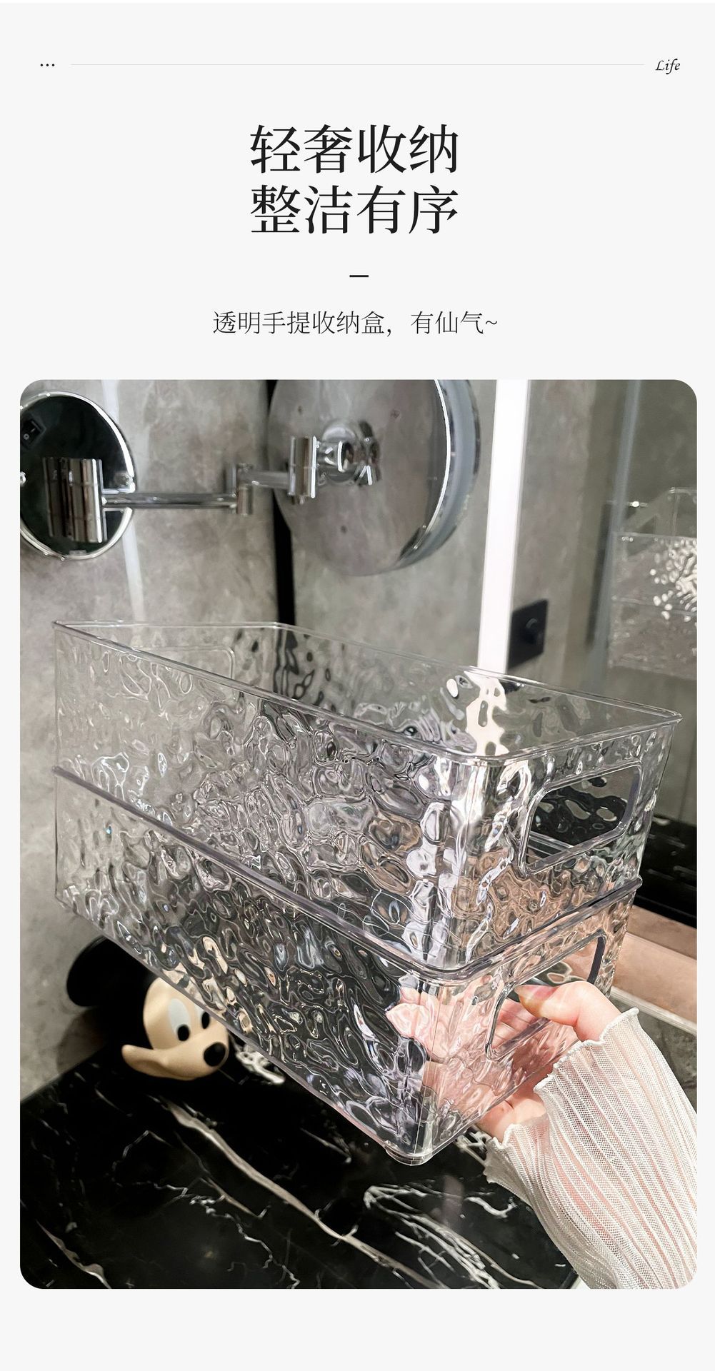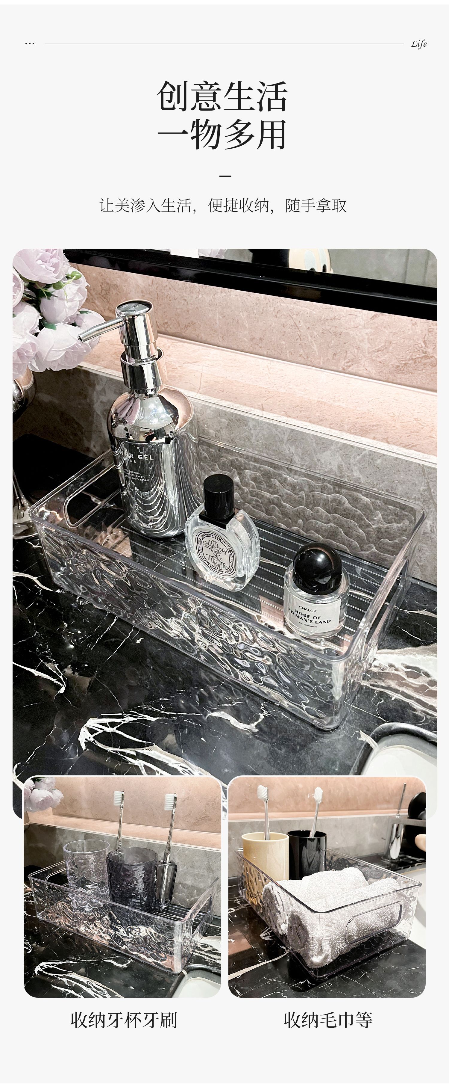 빙하 곡물 저장 상자 높은 색상 가치 욕실 데스크탑 화장품 마무리 상자 플라스틱 핸들 저장 바구니 도매스토어 가기