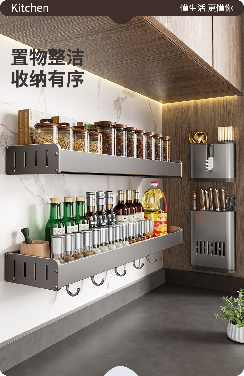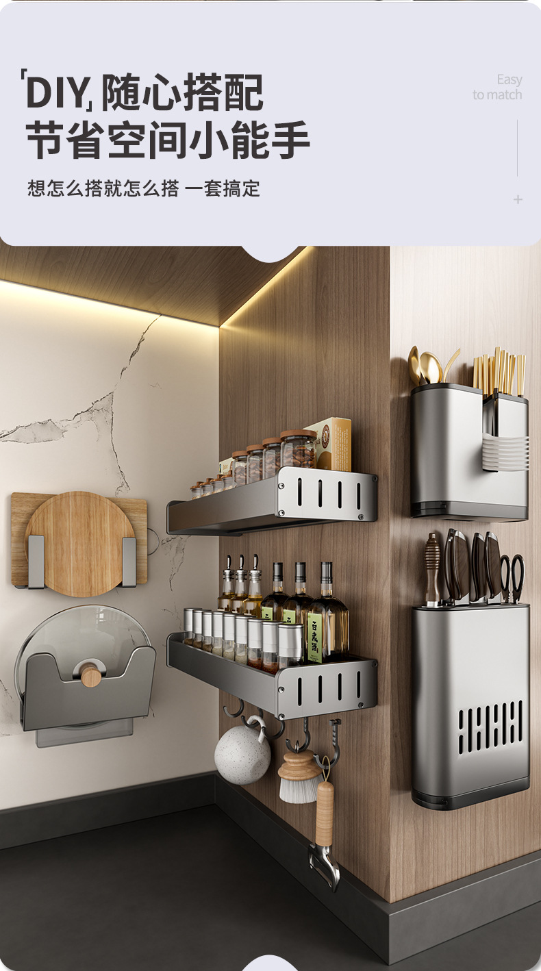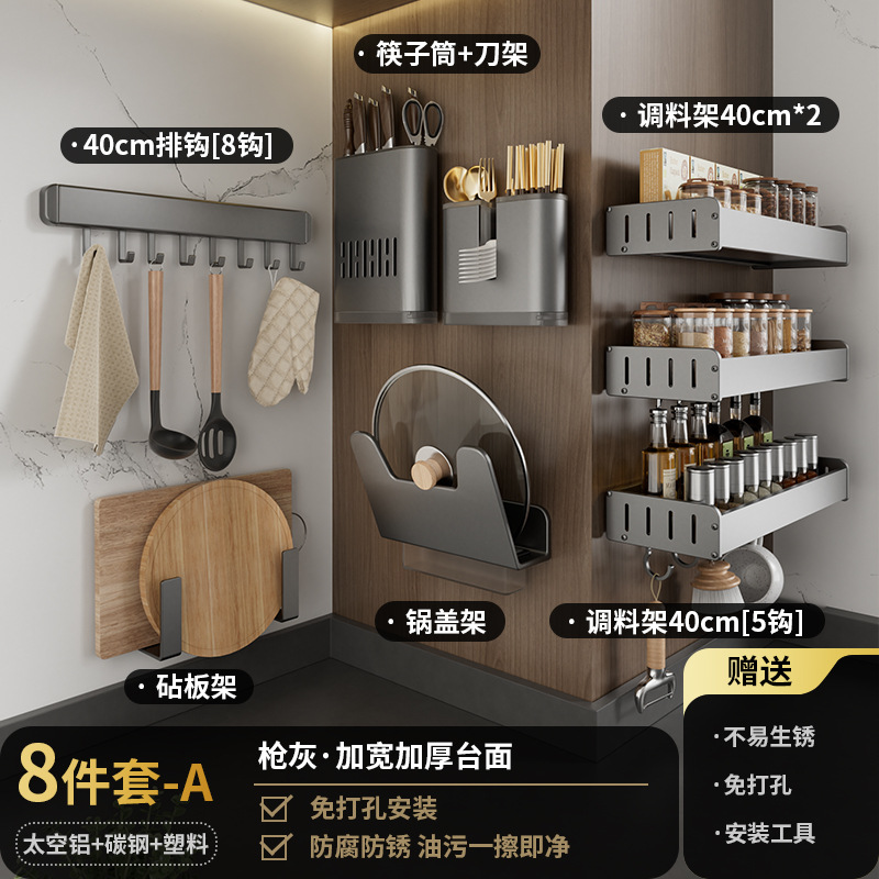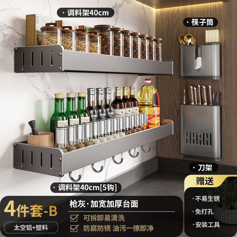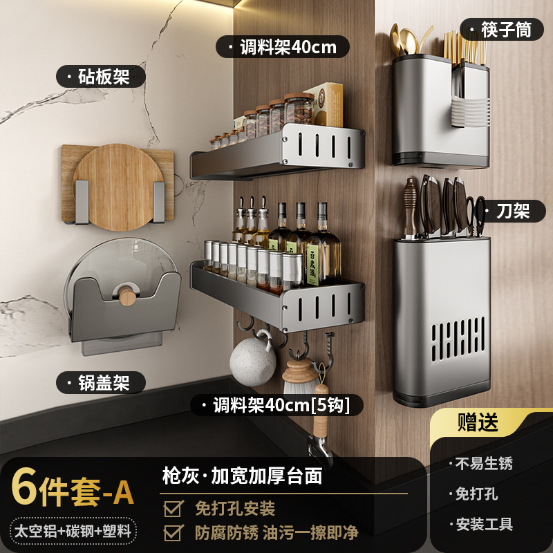 펀치없는 주방 보관 랙 가정용 조미료 보관 랙 벽걸이 칼 걸이 다기능 용품