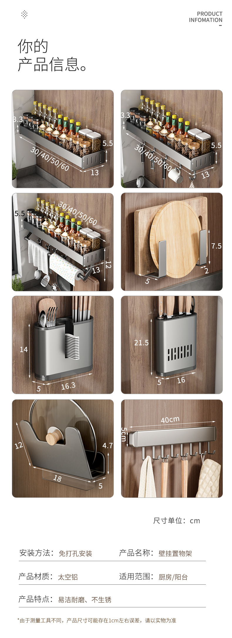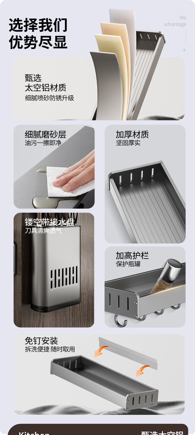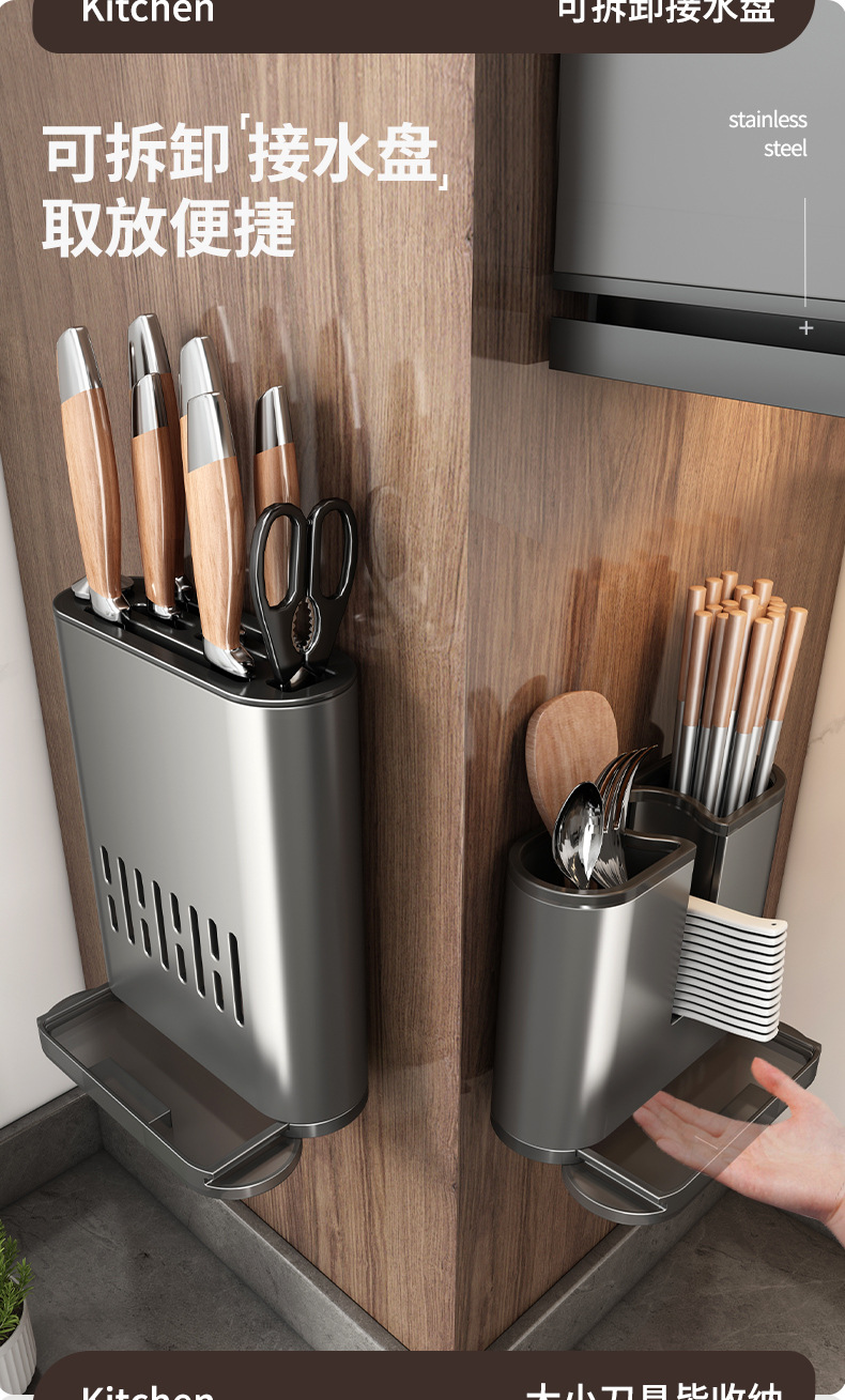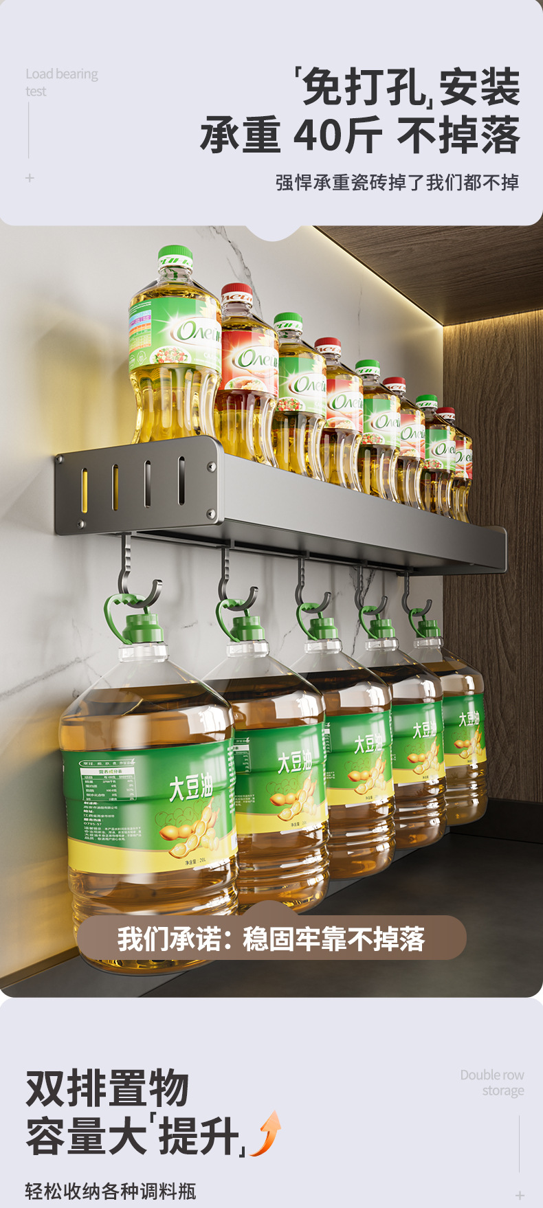 펀치없는 주방 보관 랙 가정용 조미료 보관 랙 벽걸이 칼 걸이 다기능 용품
