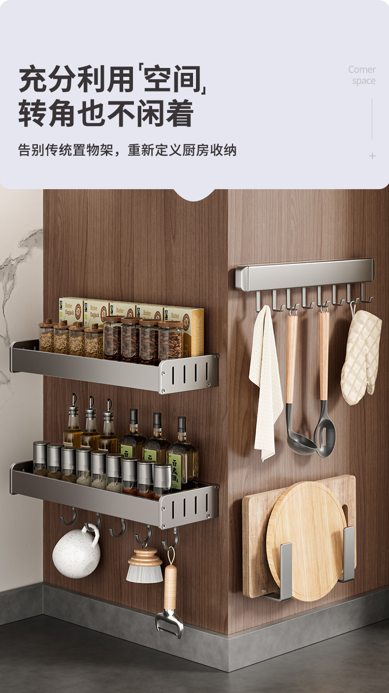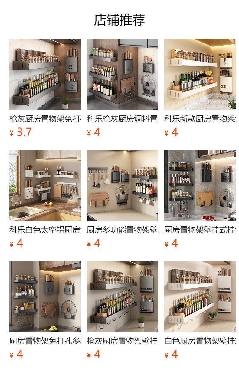펀치없는 주방 보관 랙 가정용 조미료 보관 랙 벽걸이 칼 걸이 다기능 용품스토어 가기