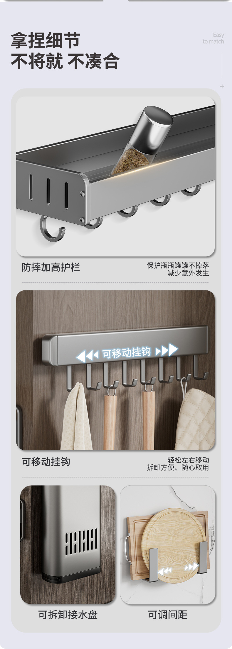 • 총 애쉬-후크가있는 조미료 랙 40cm