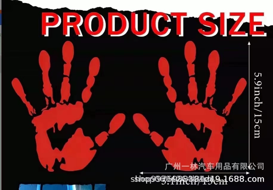 국경 간 자동차 스티커 반사 스티커 개인화 된 블러드 핸드 인쇄 후면 파일 스티커 방수 썬 스크린 팜 프린트 자동차 스티커