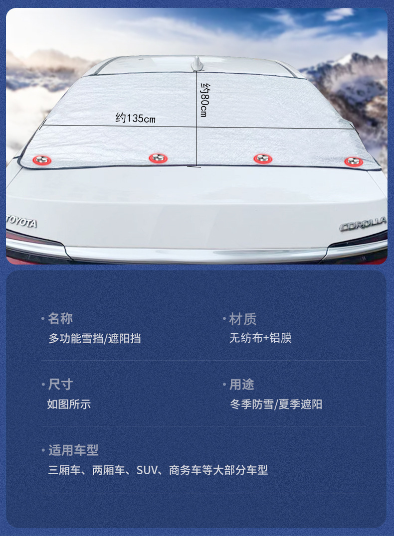 【产品尺寸】:半罩遮雪挡约255*235*140cm