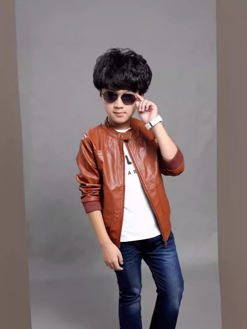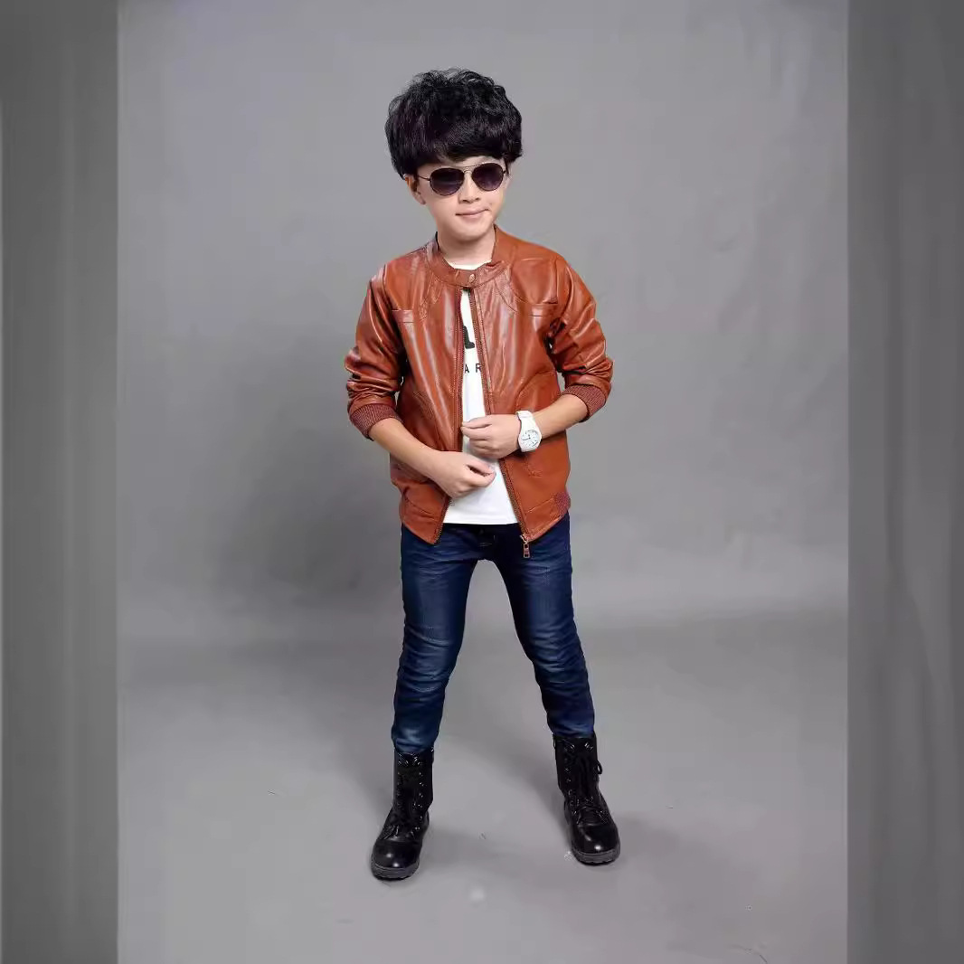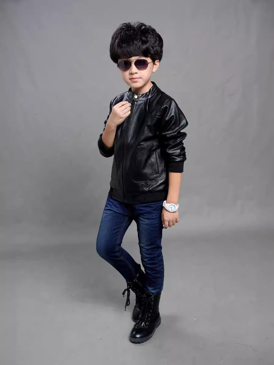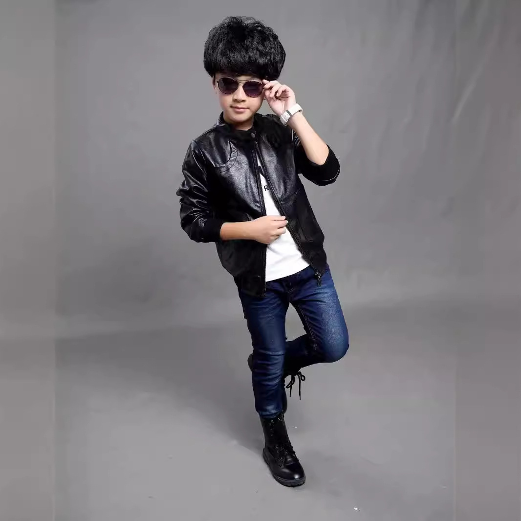 소년 큐크 크로스 보더 PU 재킷 오토바이 가죽 100-160 어린이 자켓 가죽스토어 가기