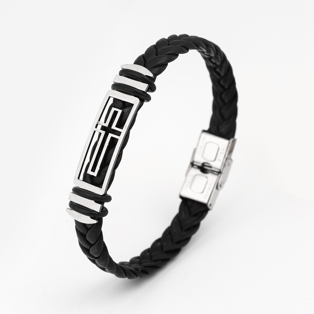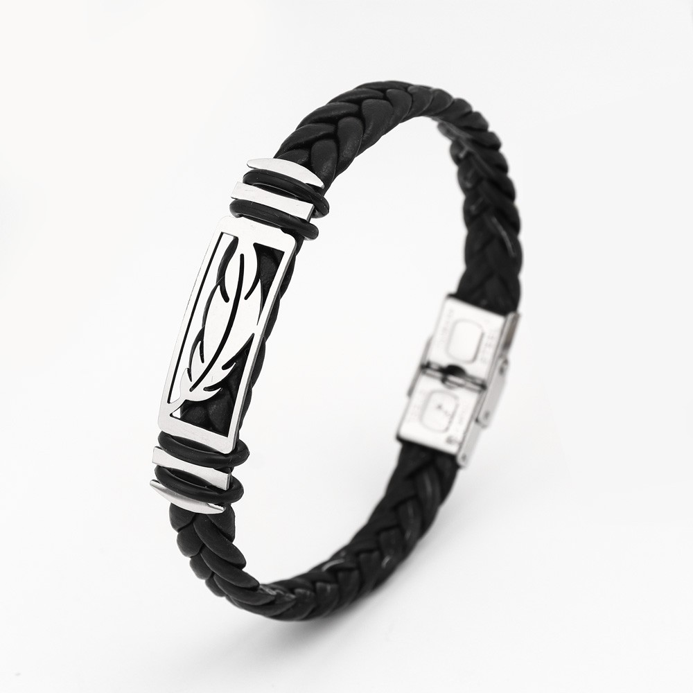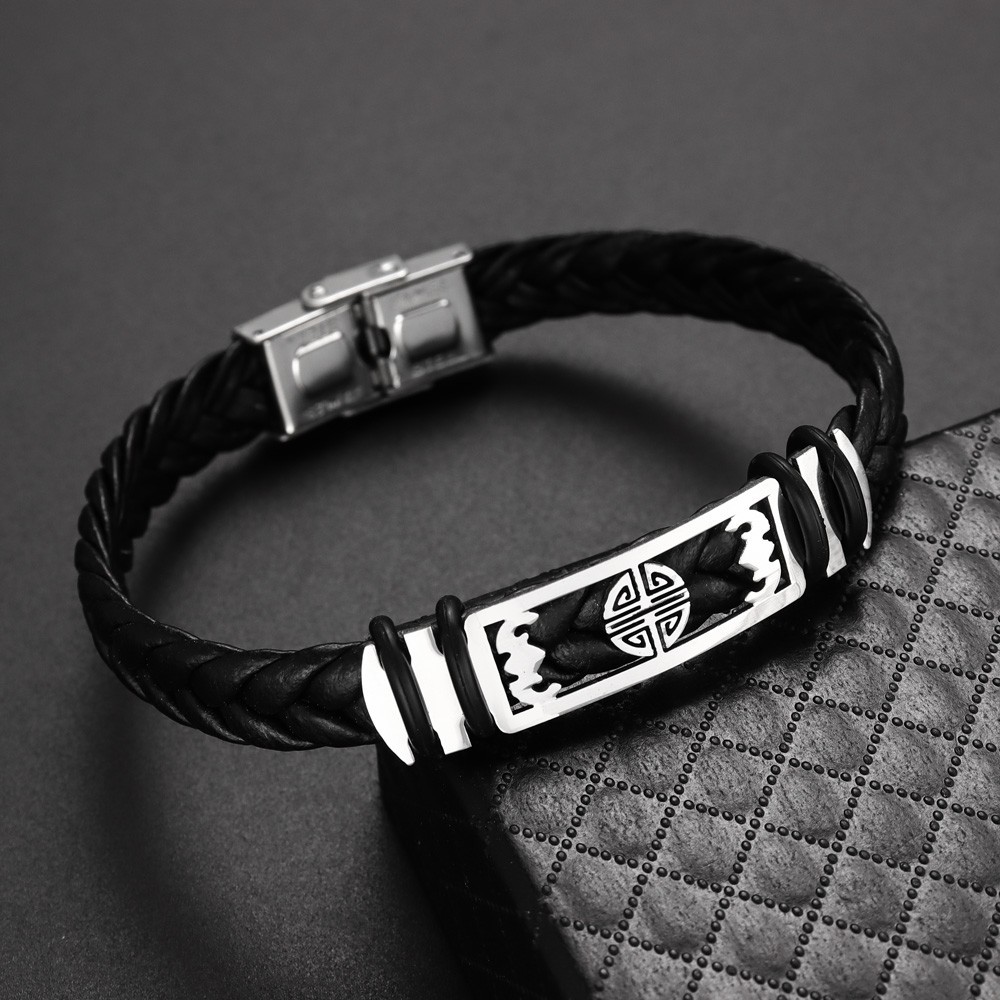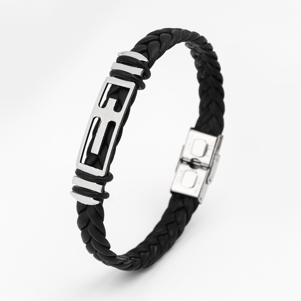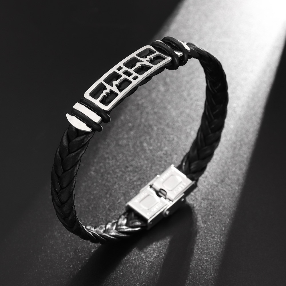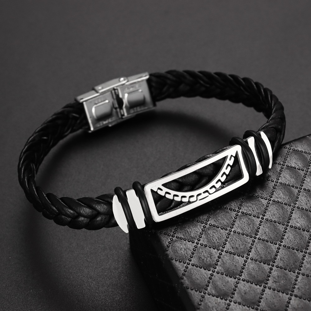 국경 유럽 및 미국 스테인레스 스틸 간단한 팔찌 레이저 절단 가죽 짠 팔찌 남성 팔찌 공장 직접 판매스토어 가기