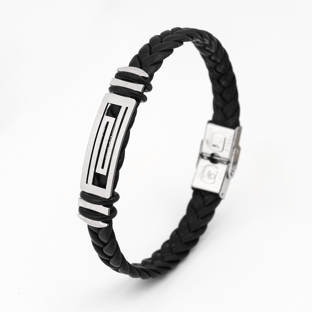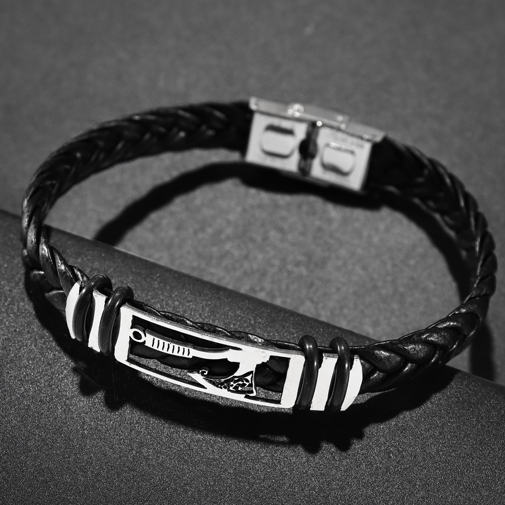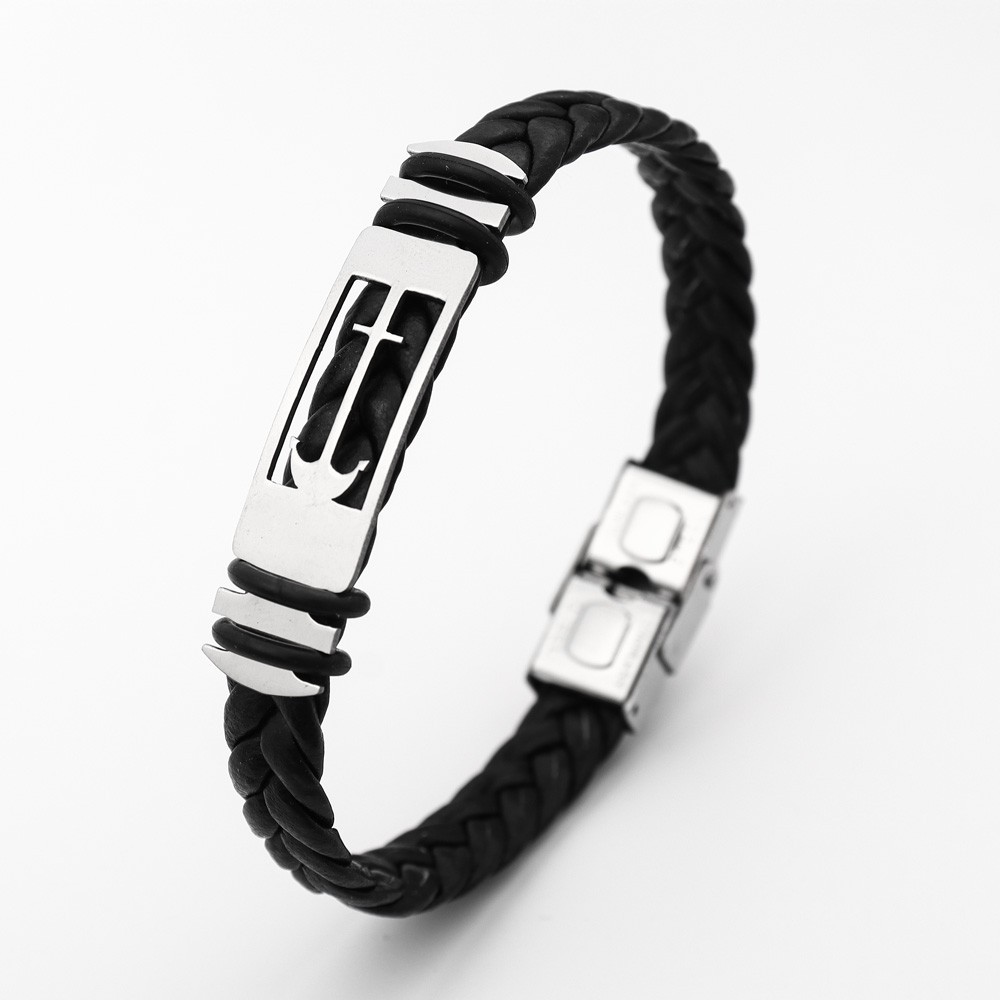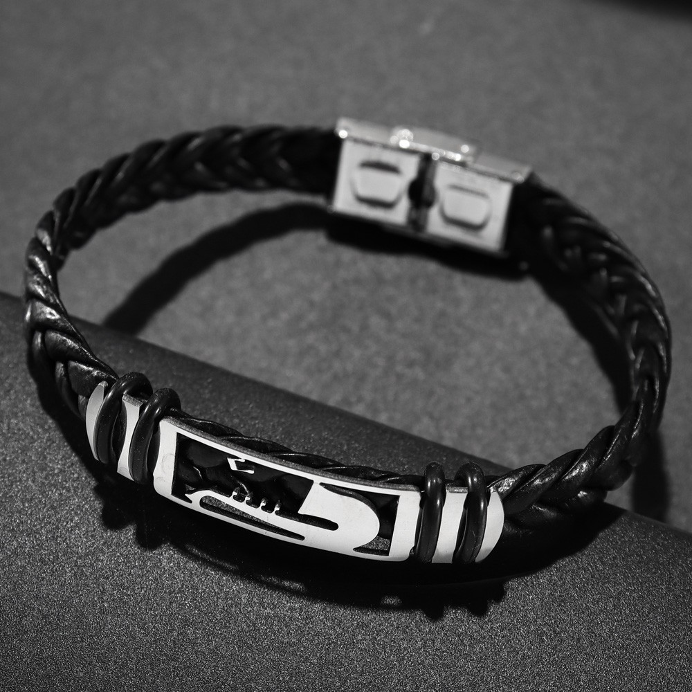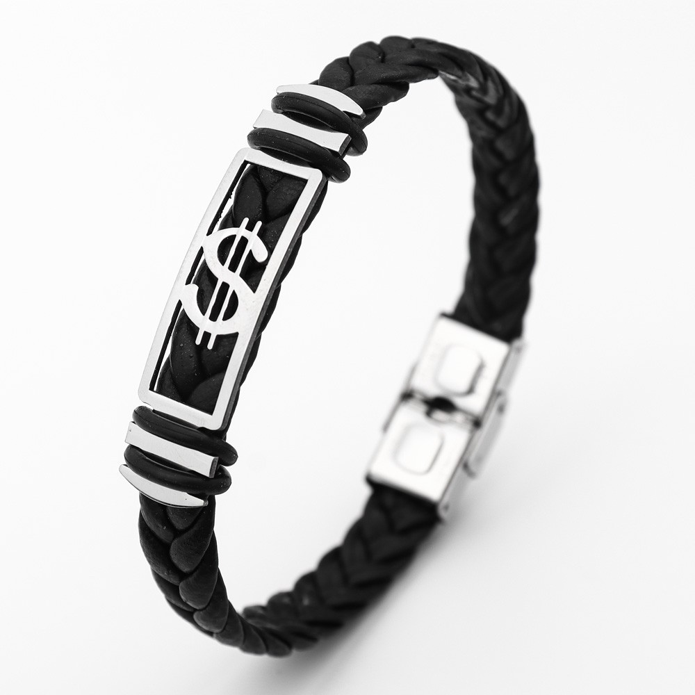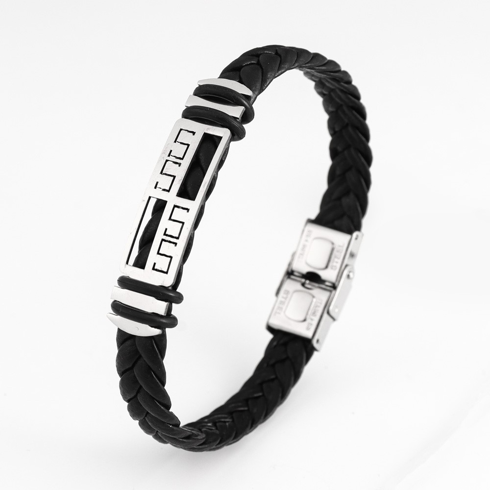 국경 유럽 및 미국 스테인레스 스틸 간단한 팔찌 레이저 절단 가죽 짠 팔찌 남성 팔찌 공장 직접 판매스토어 가기