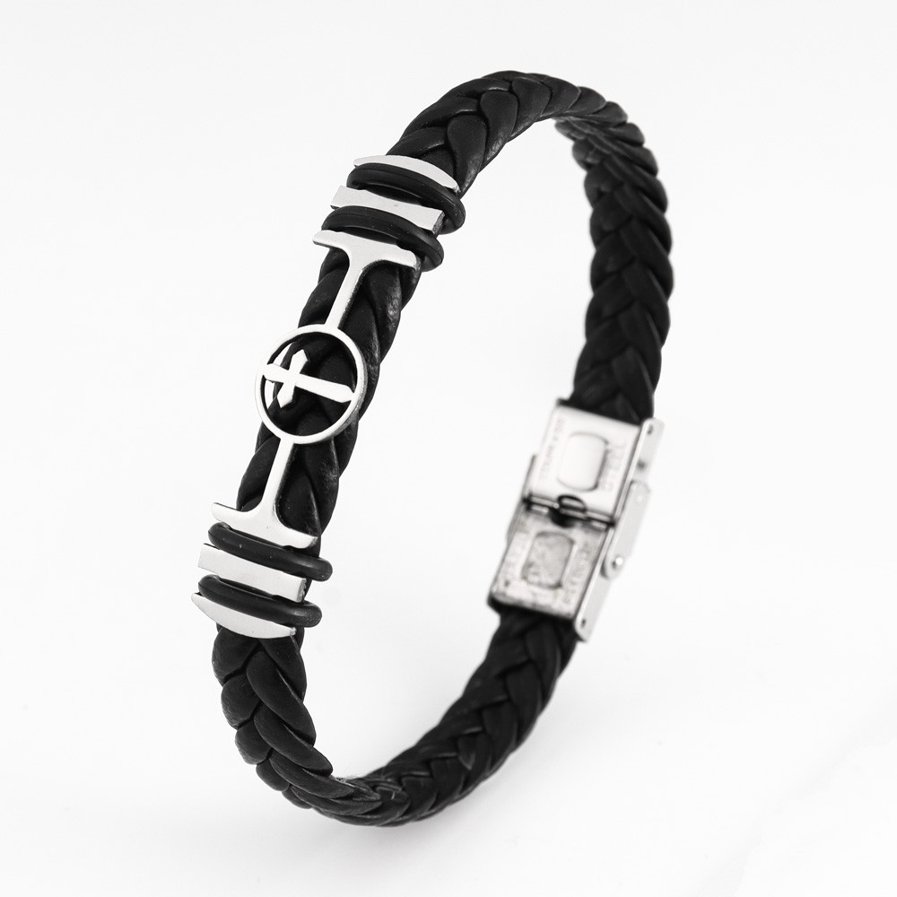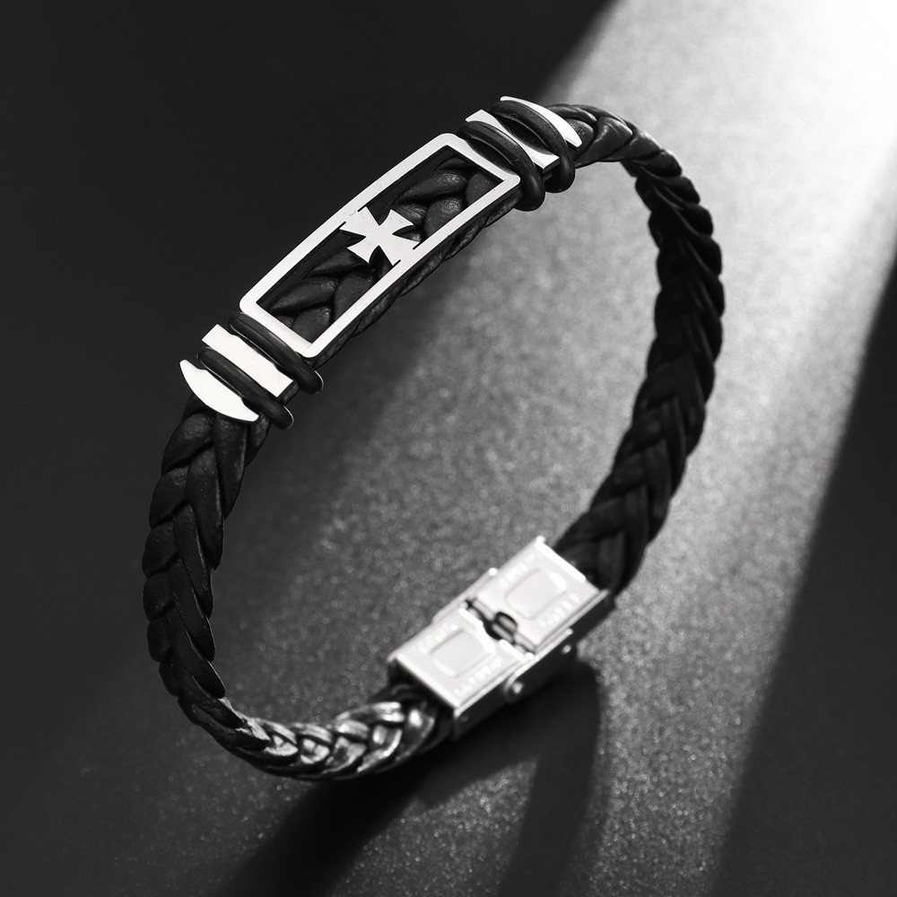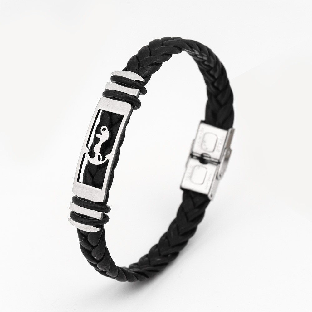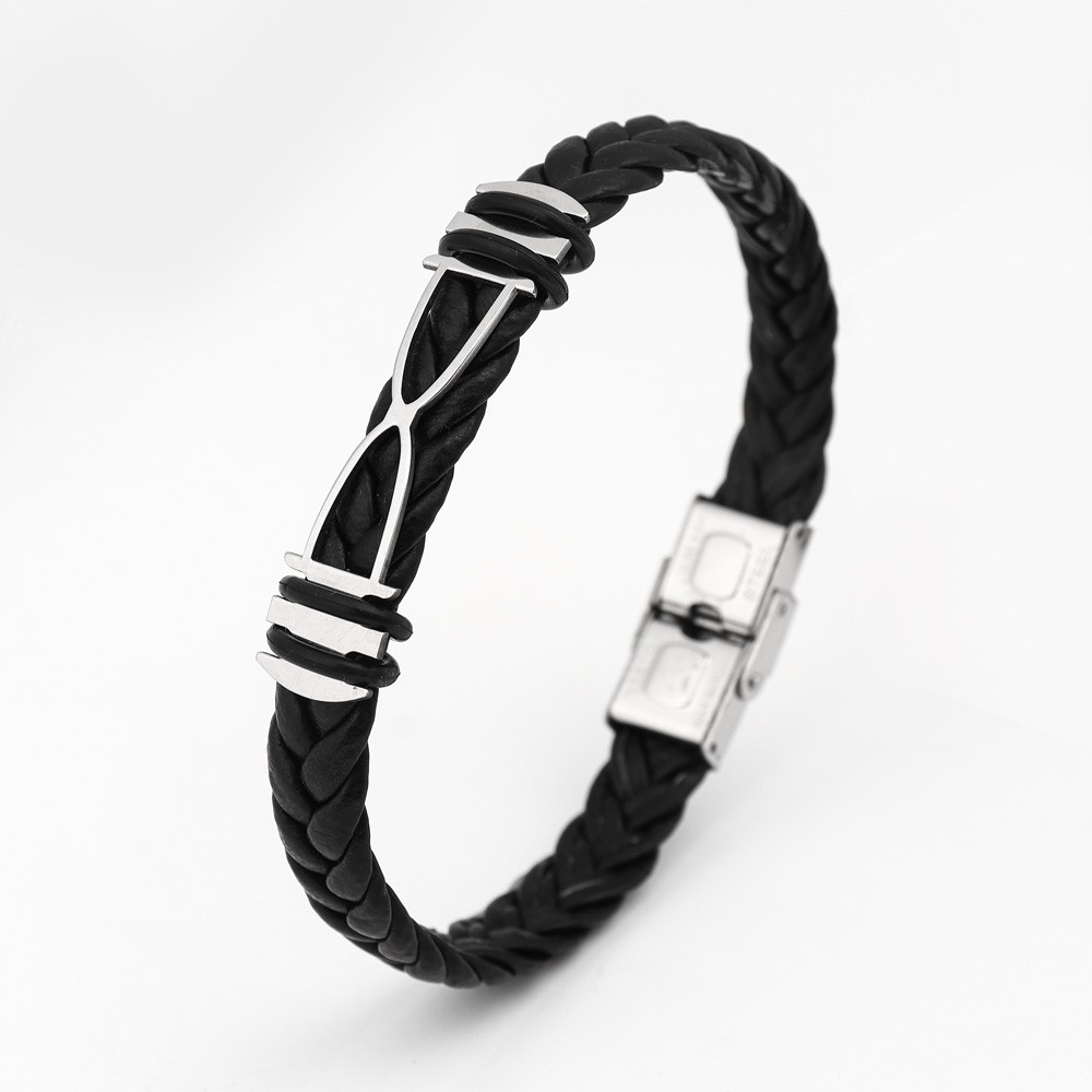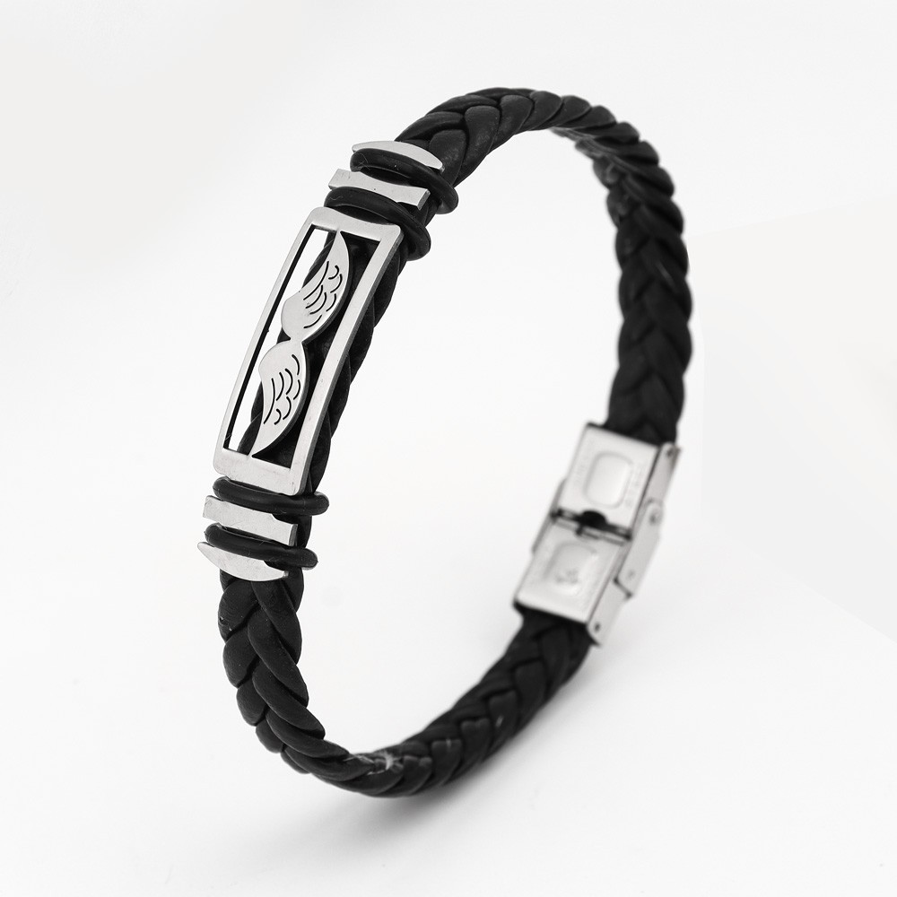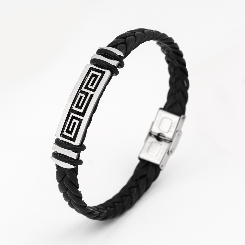 국경 유럽 및 미국 스테인레스 스틸 간단한 팔찌 레이저 절단 가죽 짠 팔찌 남성 팔찌 공장 직접 판매스토어 가기