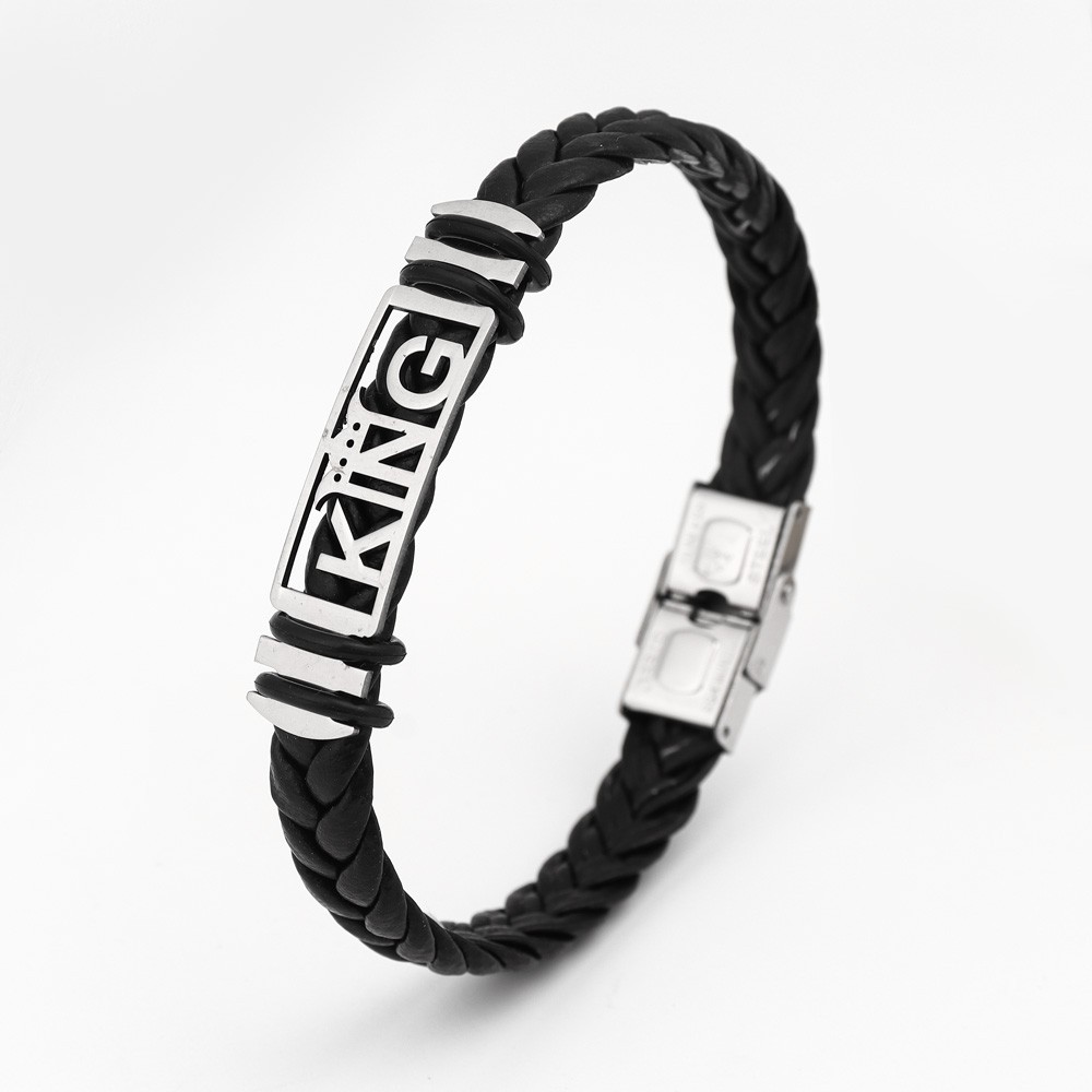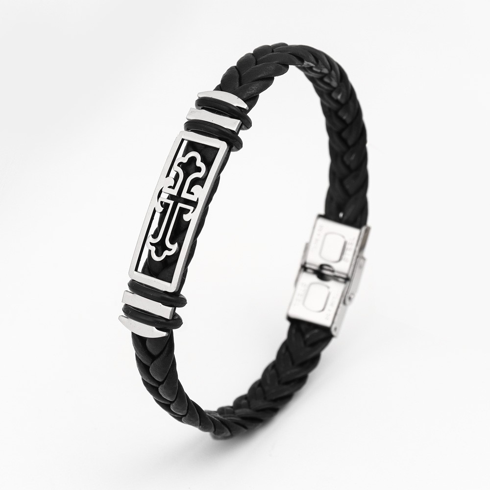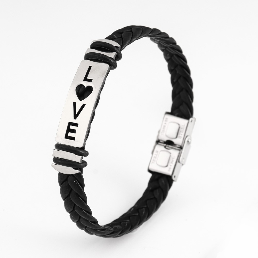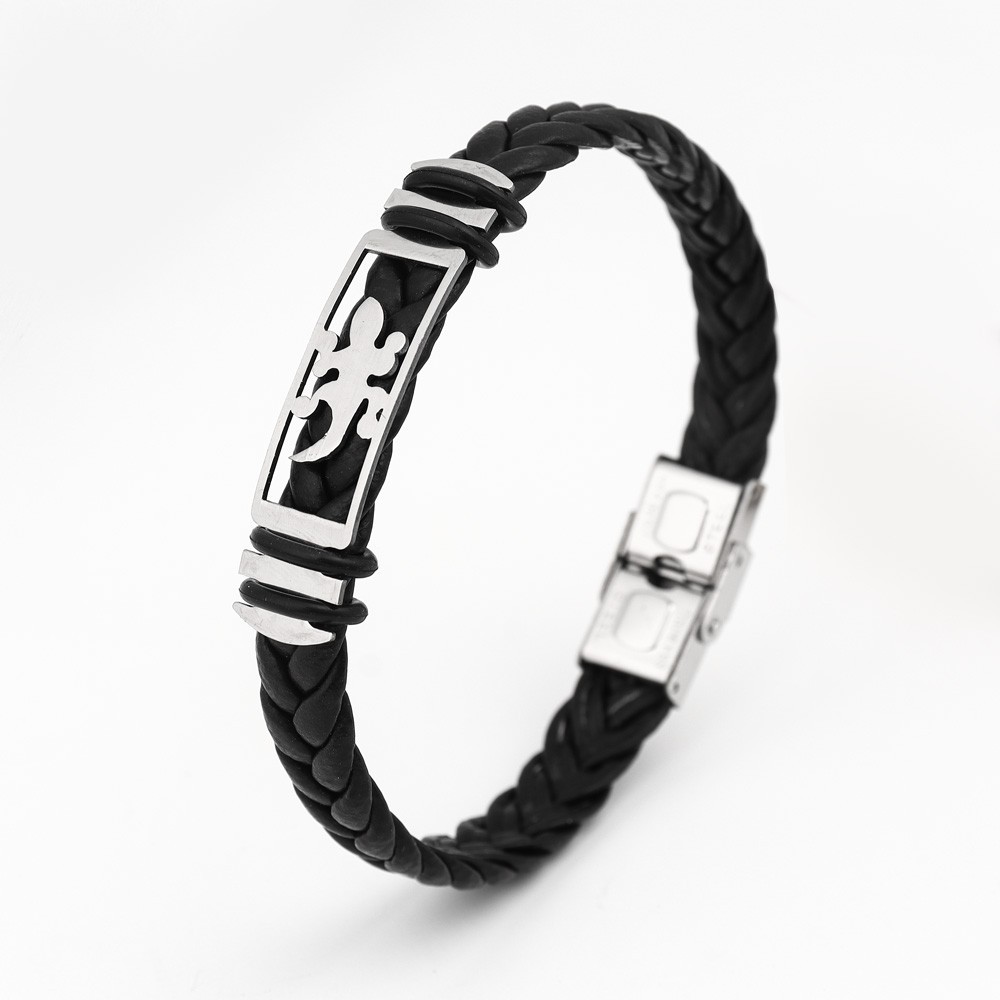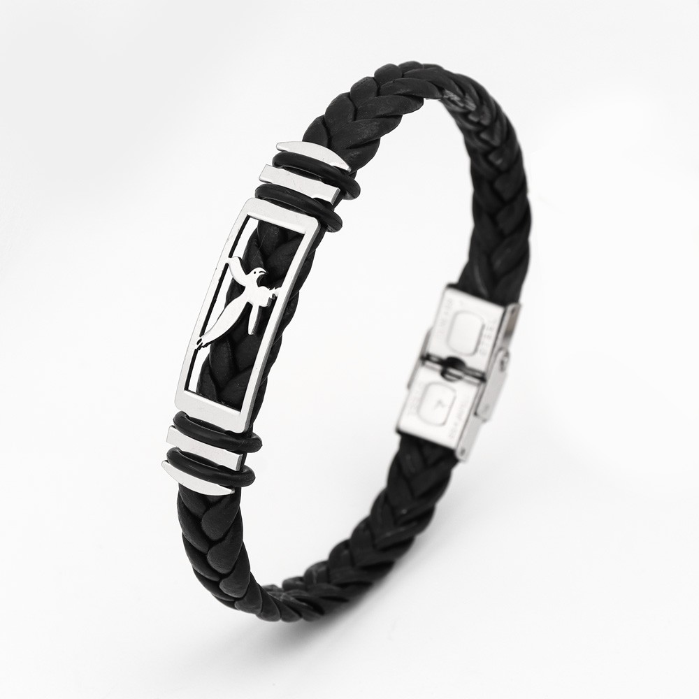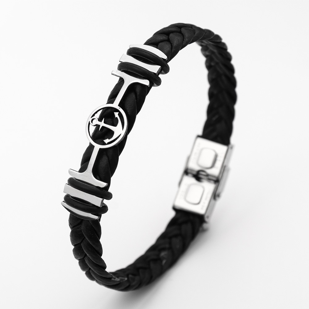 국경 유럽 및 미국 스테인레스 스틸 간단한 팔찌 레이저 절단 가죽 짠 팔찌 남성 팔찌 공장 직접 판매스토어 가기