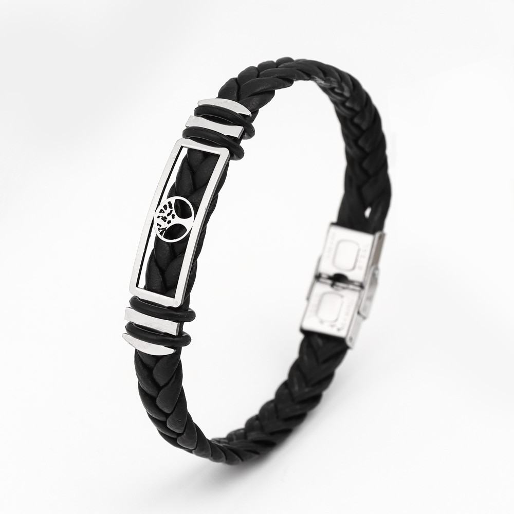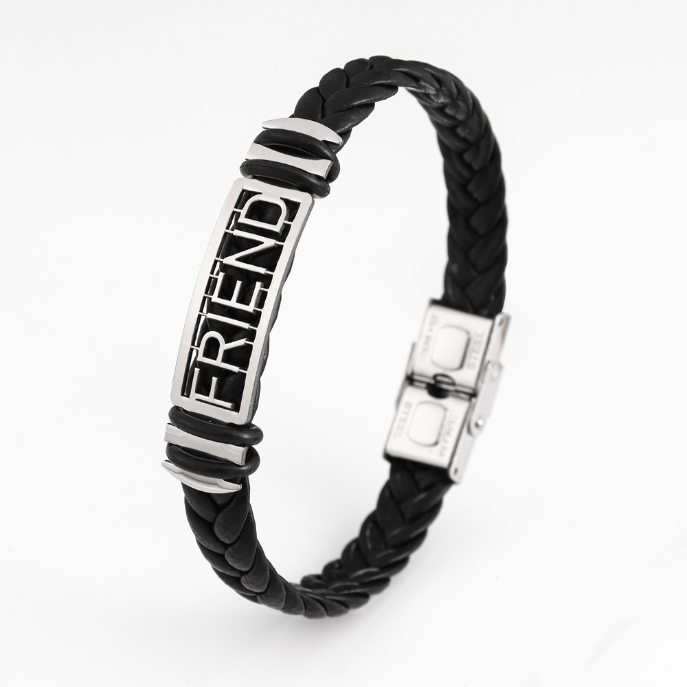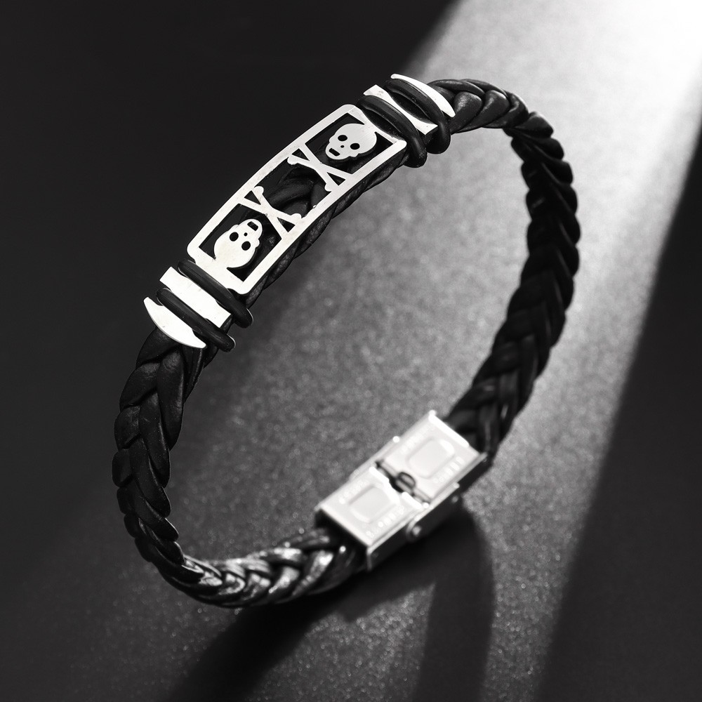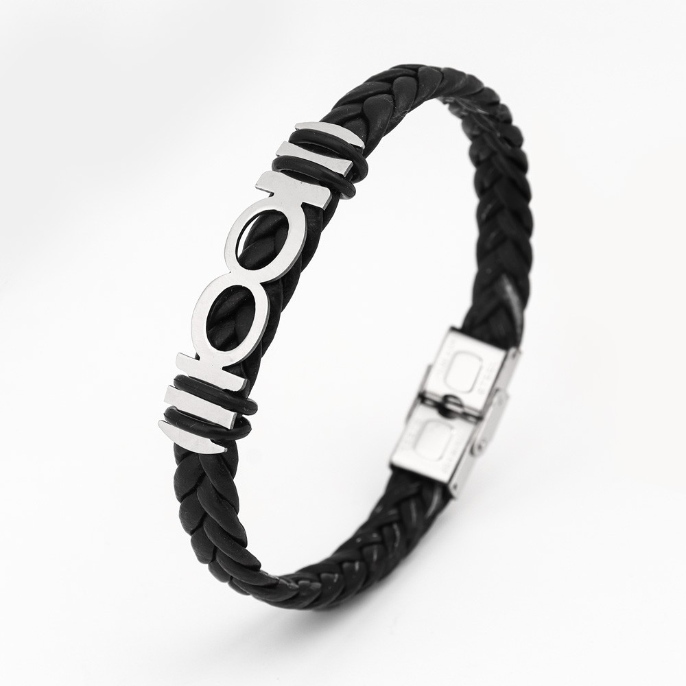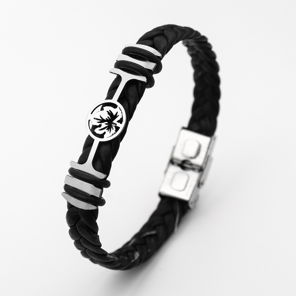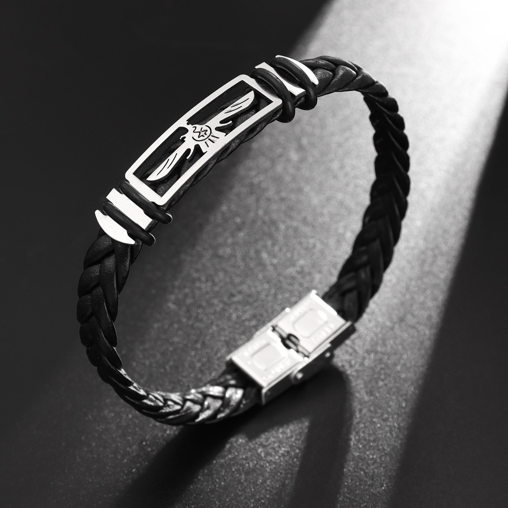 국경 유럽 및 미국 스테인레스 스틸 간단한 팔찌 레이저 절단 가죽 짠 팔찌 남성 팔찌 공장 직접 판매스토어 가기