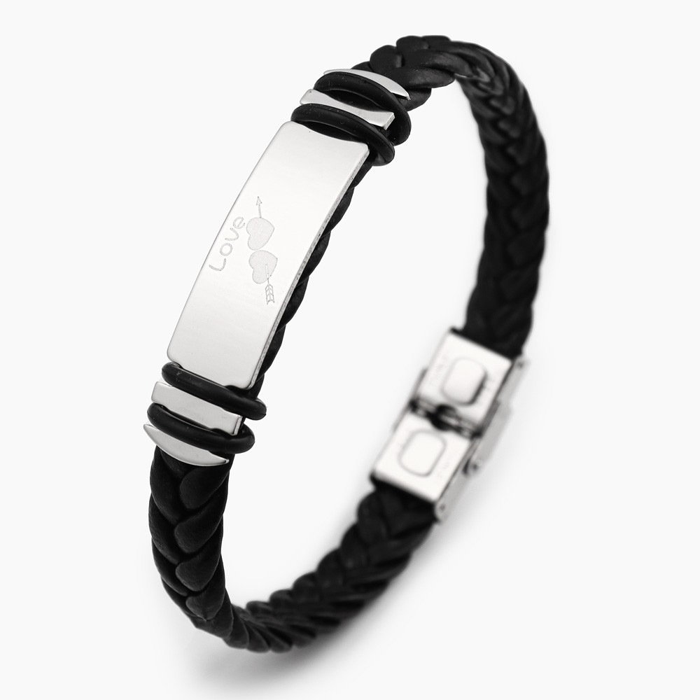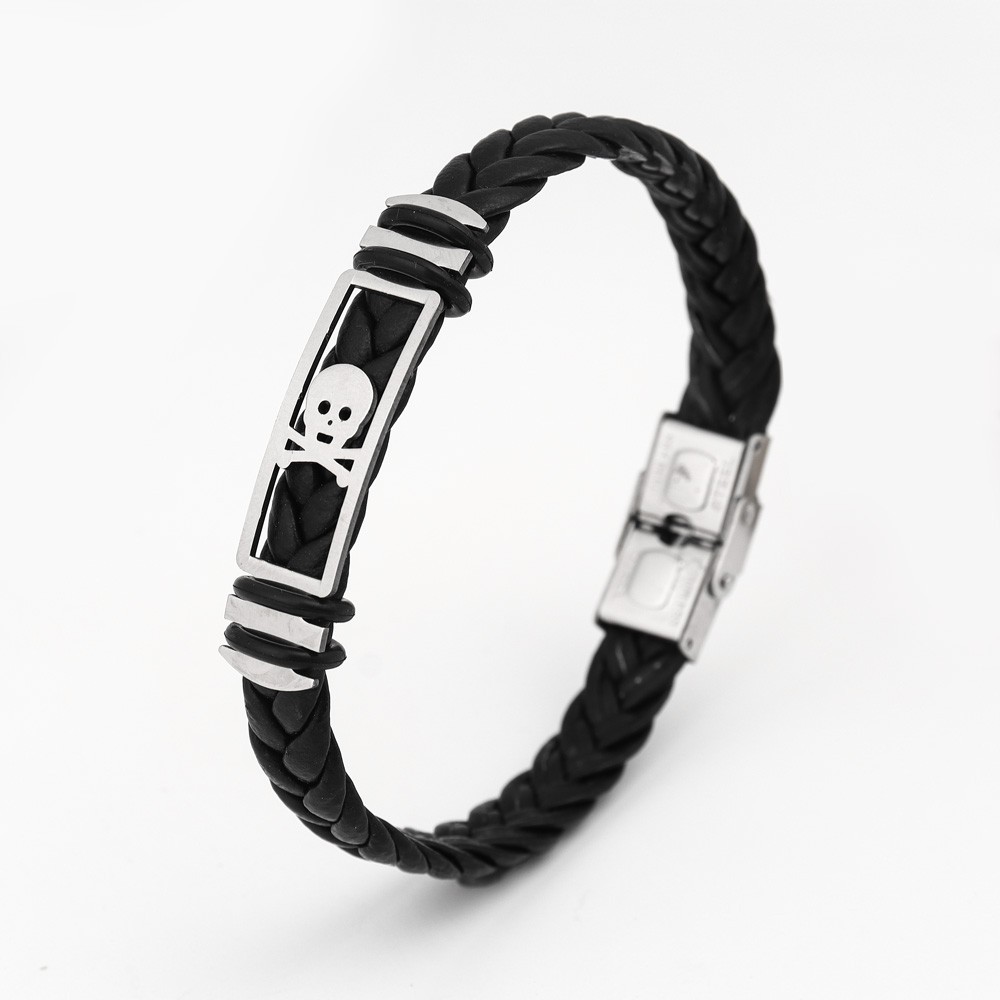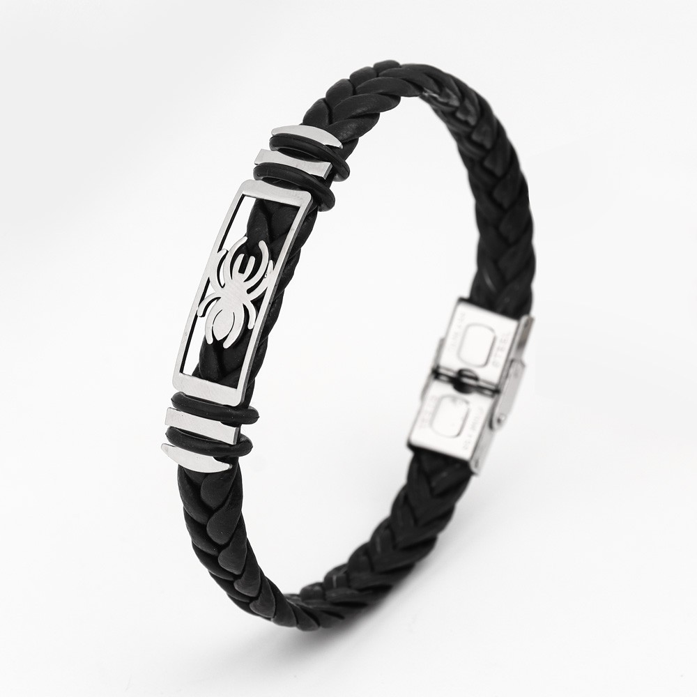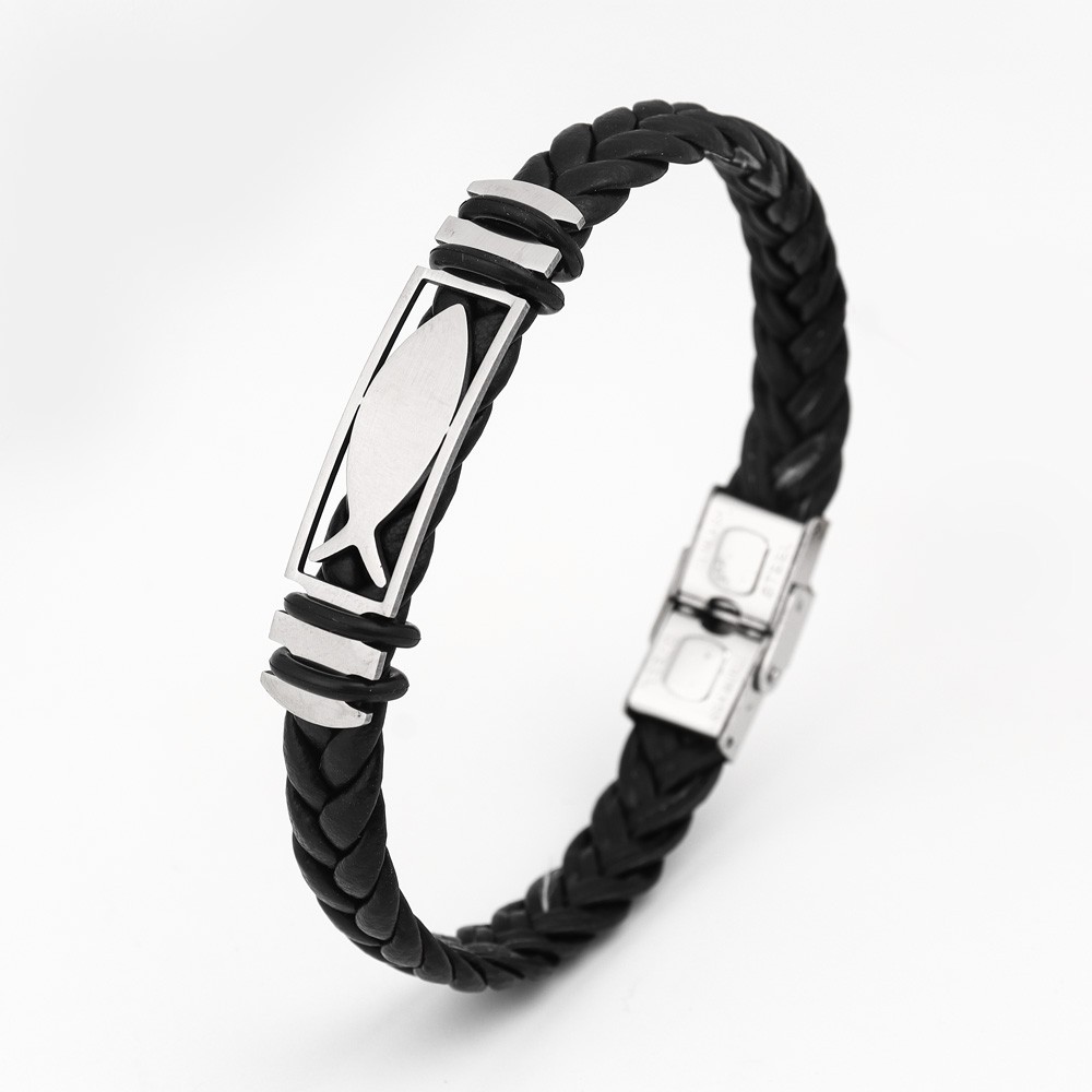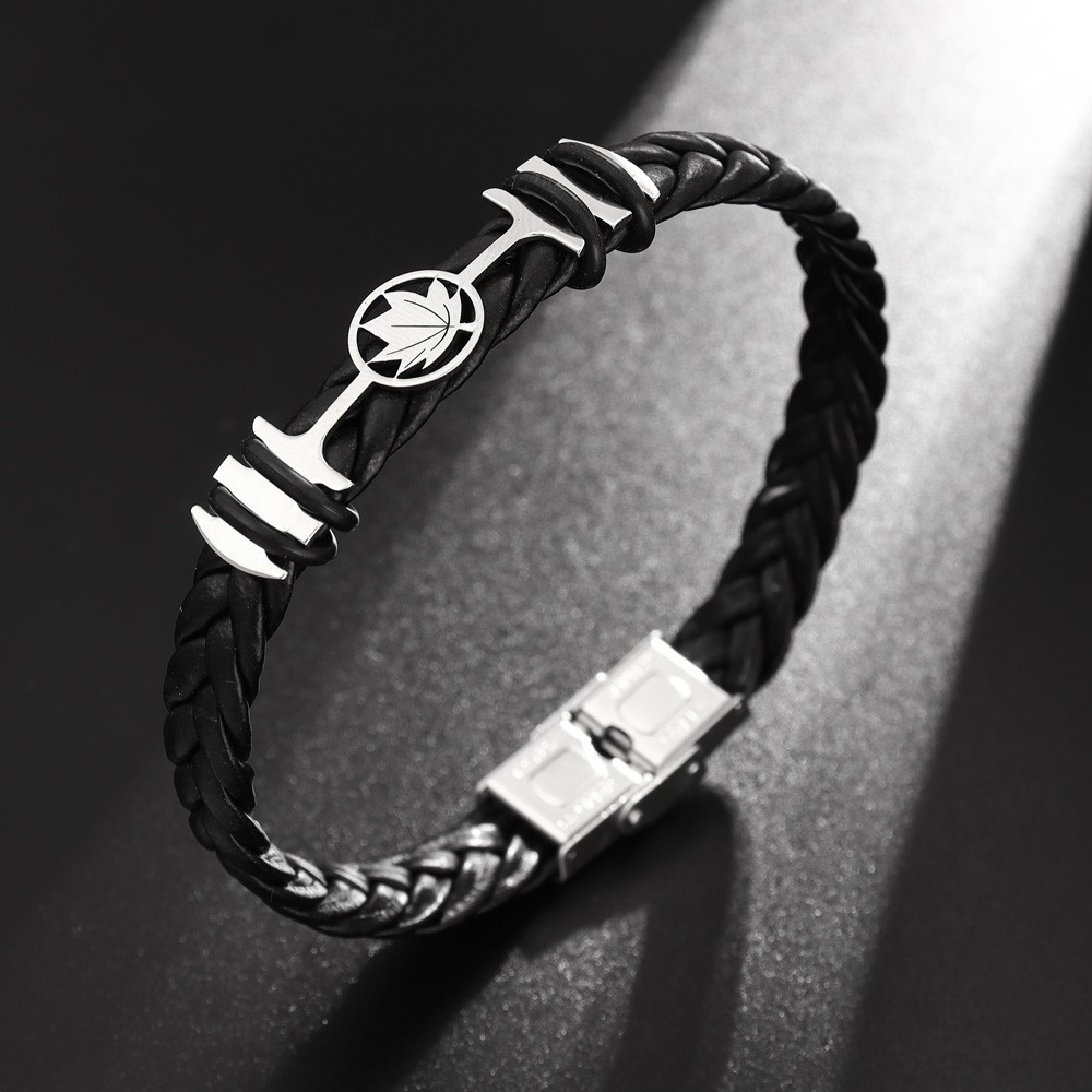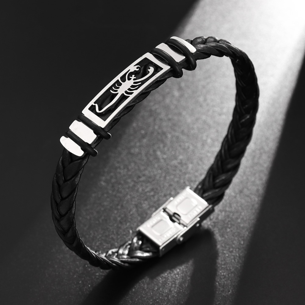 국경 유럽 및 미국 스테인레스 스틸 간단한 팔찌 레이저 절단 가죽 짠 팔찌 남성 팔찌 공장 직접 판매스토어 가기