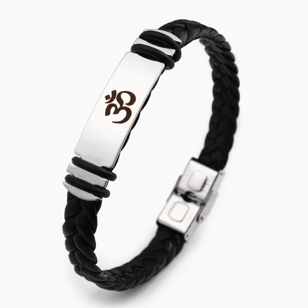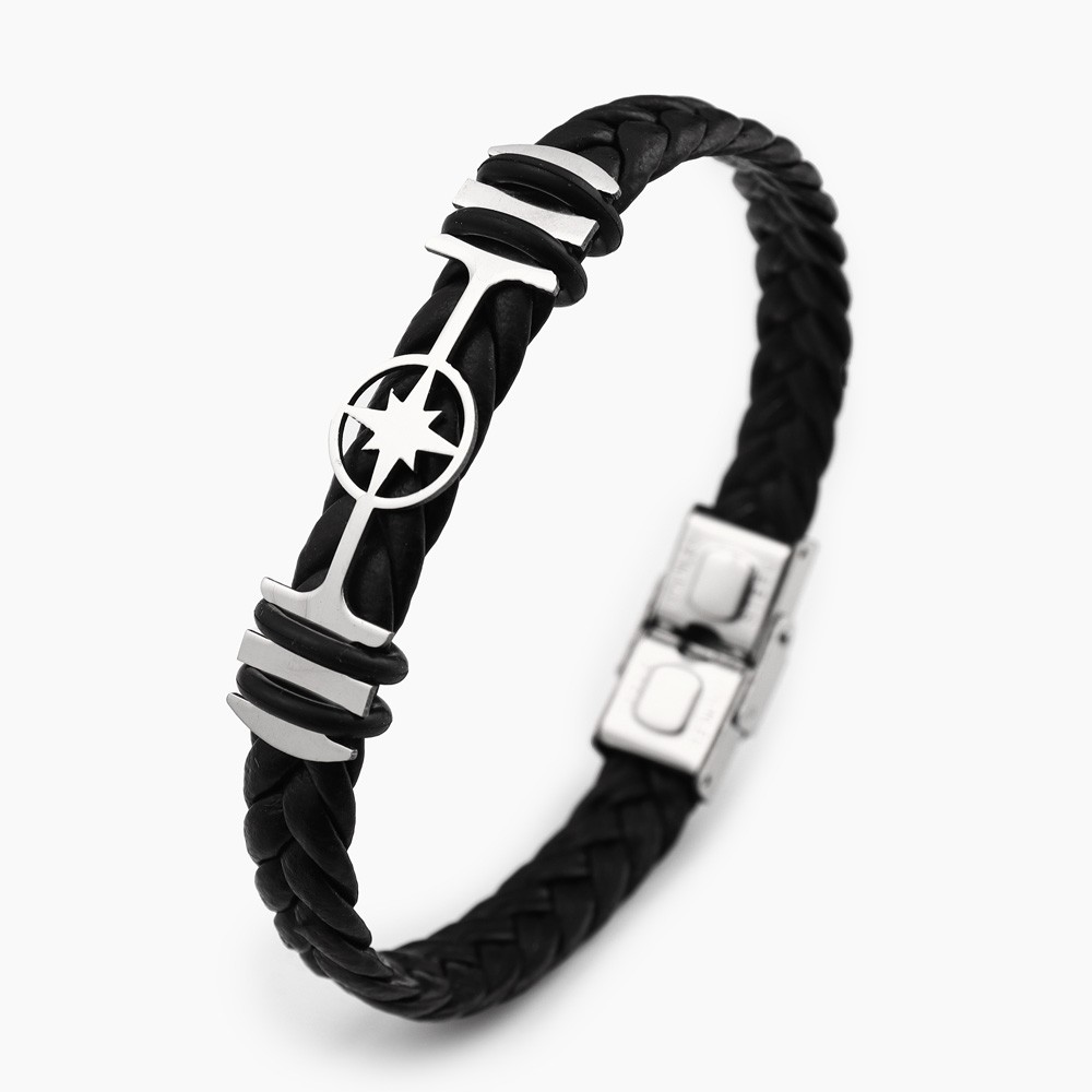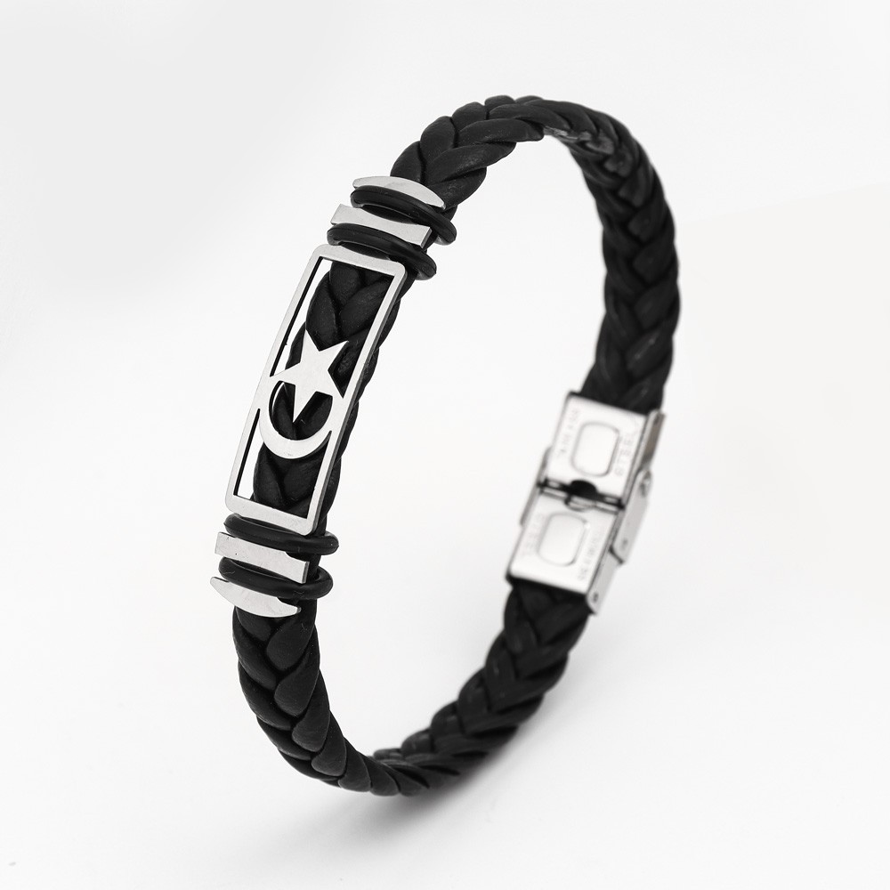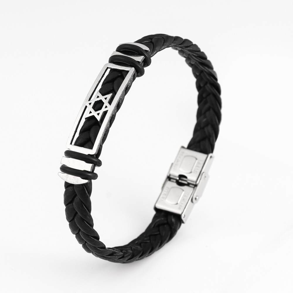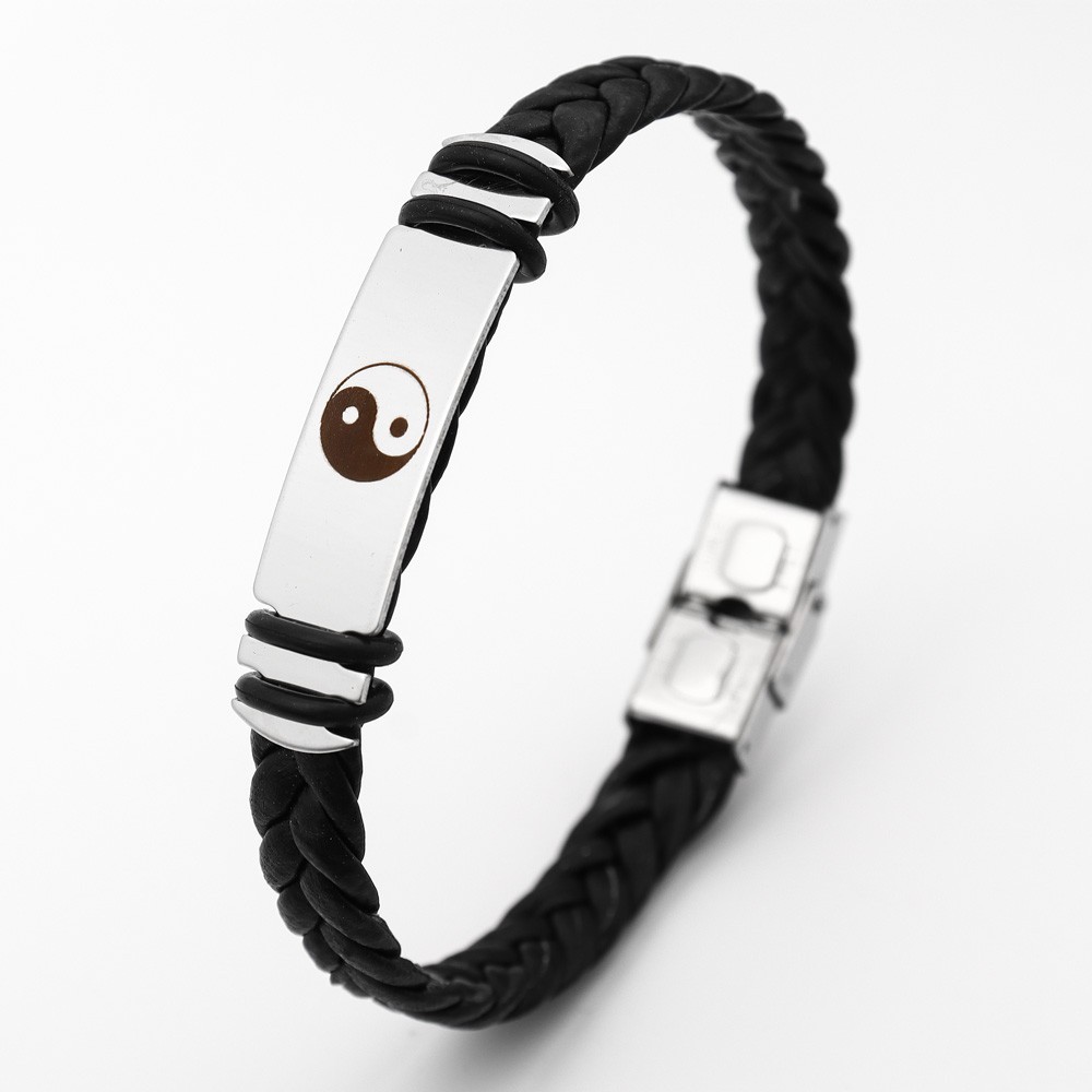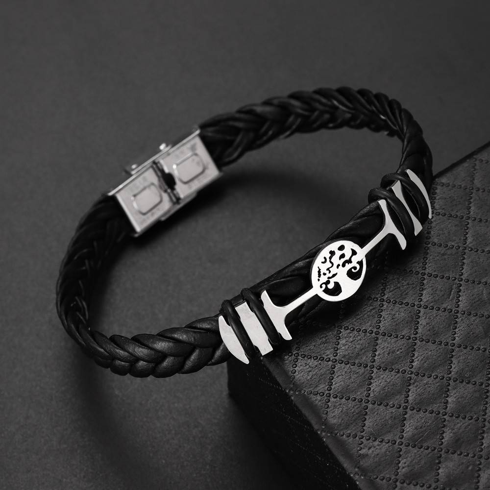국경 유럽 및 미국 스테인레스 스틸 간단한 팔찌 레이저 절단 가죽 짠 팔찌 남성 팔찌 공장 직접 판매스토어 가기