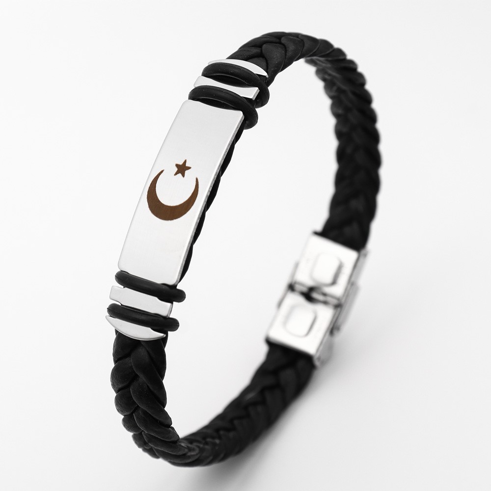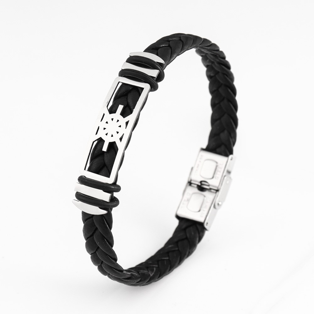 국경 유럽 및 미국 스테인레스 스틸 간단한 팔찌 레이저 절단 가죽 짠 팔찌 남성 팔찌 공장 직접 판매