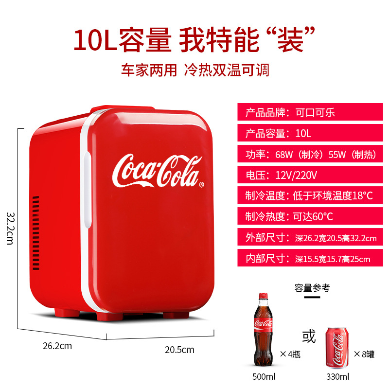 코카콜라 차량용 냉장고 미니 냉장고 소형 차량 및 가정용 화장품 냉장고 기숙사용 냉장고 10L 해외배송
