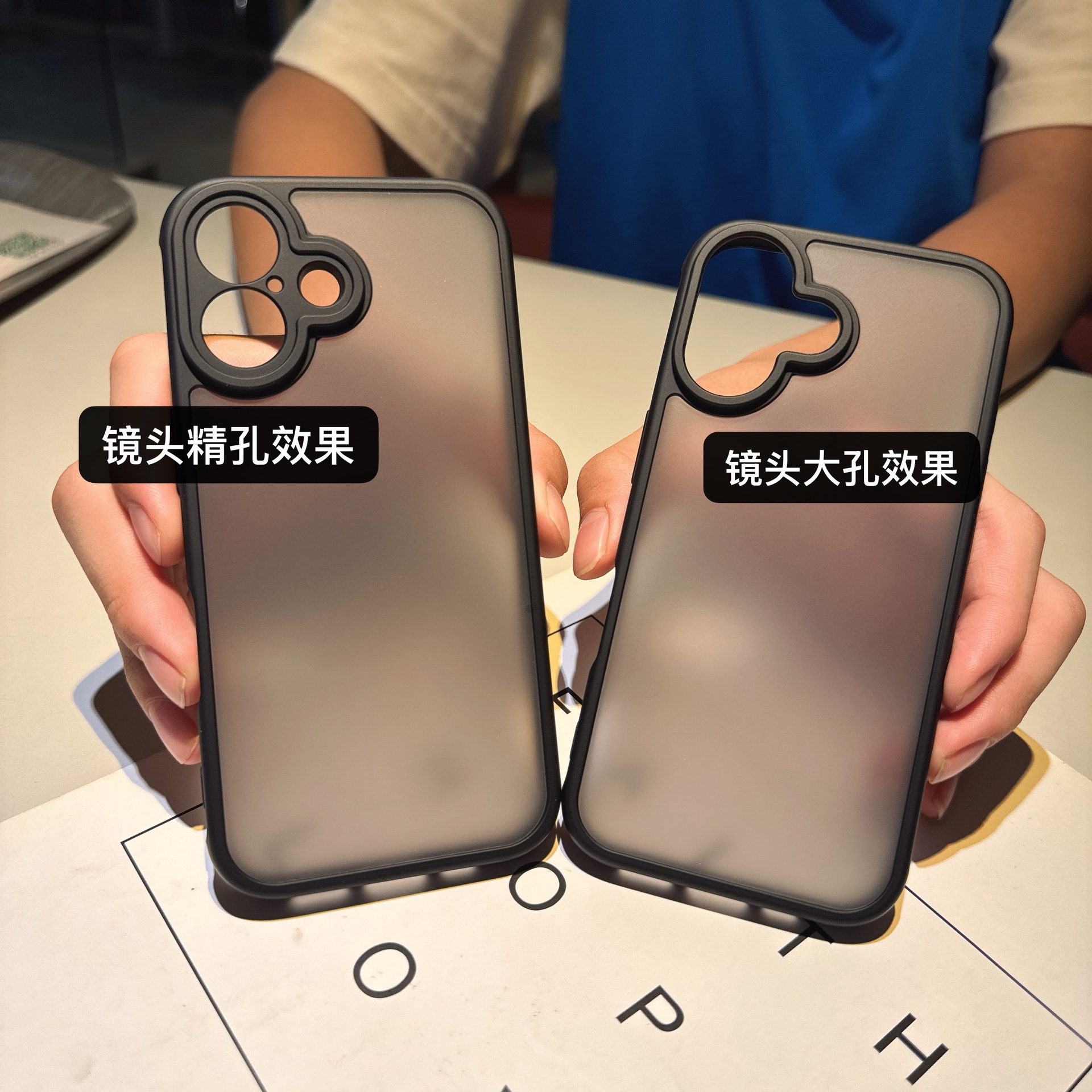 3:产品细节:真机开模,镜头孔位有两种可选择全包一比 一 精孔保护,镜头大孔有凸高设计镜头保护功能,四角内置气囊设计为防止手机在跌落时减轻近距离碰撞以达到防摔的效果,产品厚度1.5-1.8mm,装机贴合体验质感舒适,防汗不沾指纹,耐脏,耐摩,侧面有挂绳孔位设计方便用于穿带饰品配饰等。