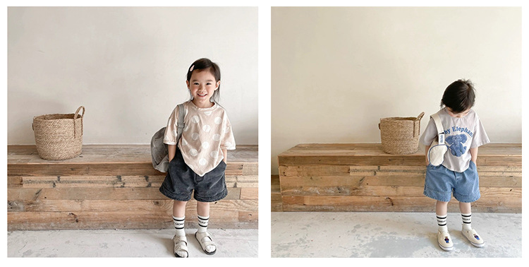 한국 아동복 여름 소녀 새 캐주얼 소년 데님 반바지 얇은 중소 어린이 솔리드 컬러 트렌디 브랜드 5 점 바지스토어 가기