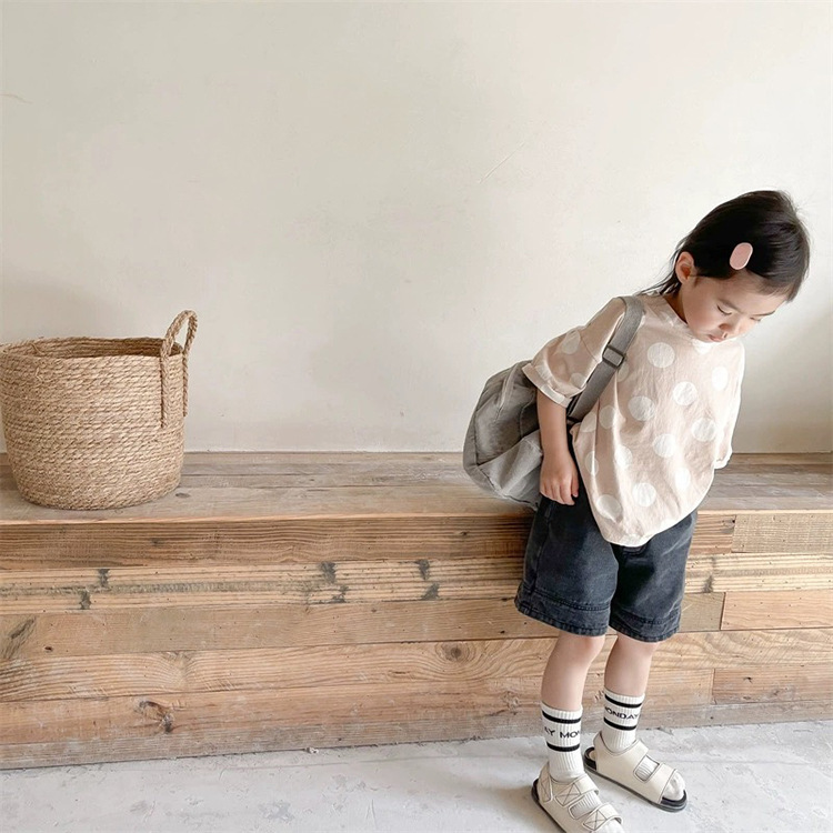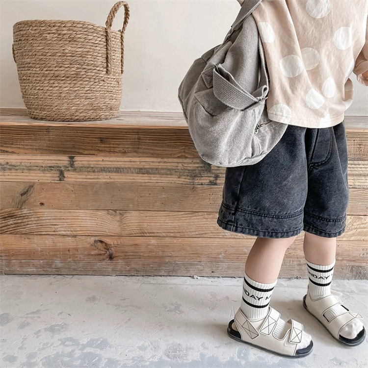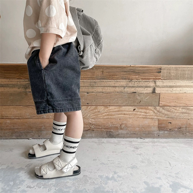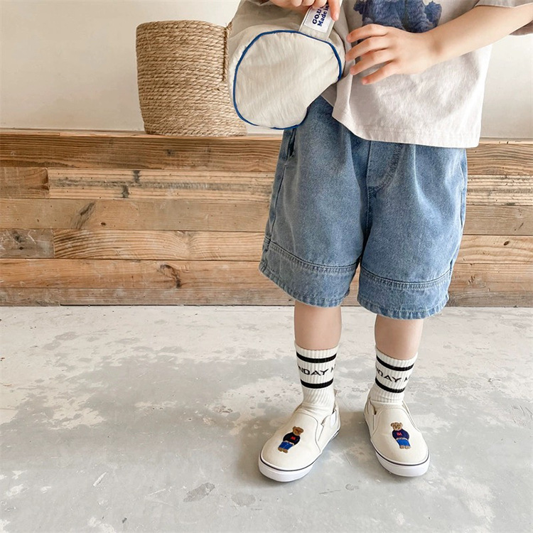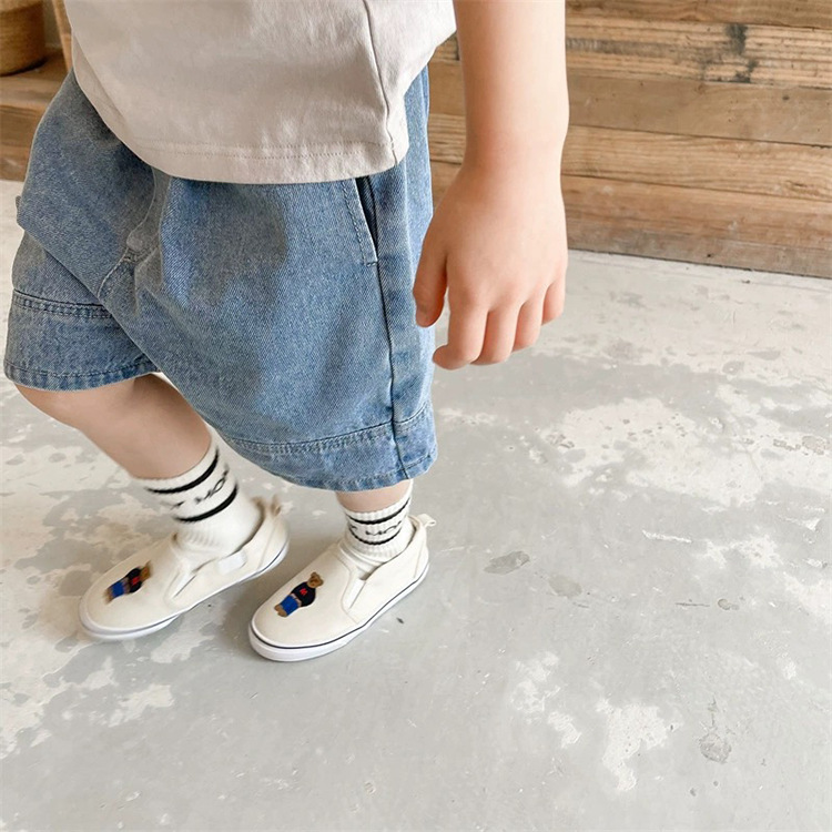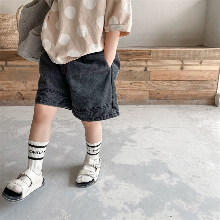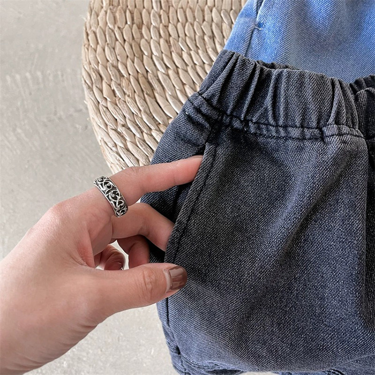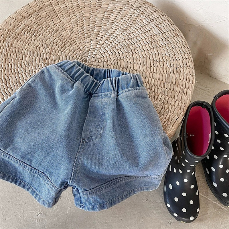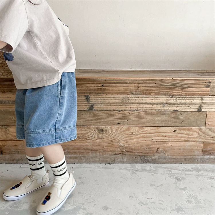 한국 아동복 여름 소녀 새 캐주얼 소년 데님 반바지 얇은 중소 어린이 솔리드 컬러 트렌디 브랜드 5 점 바지