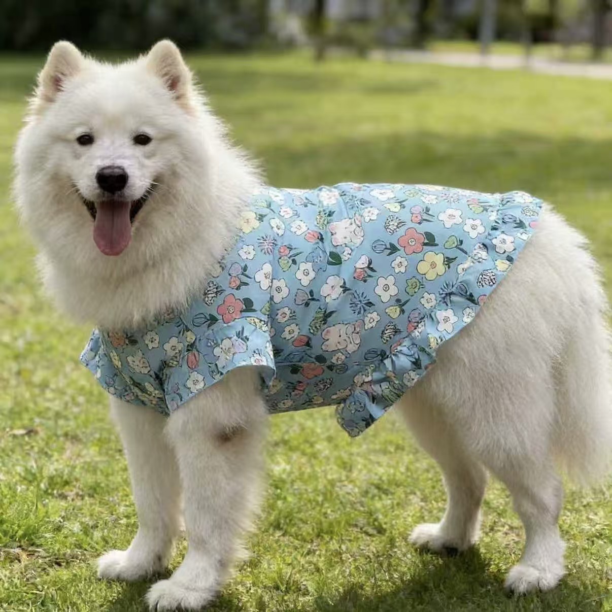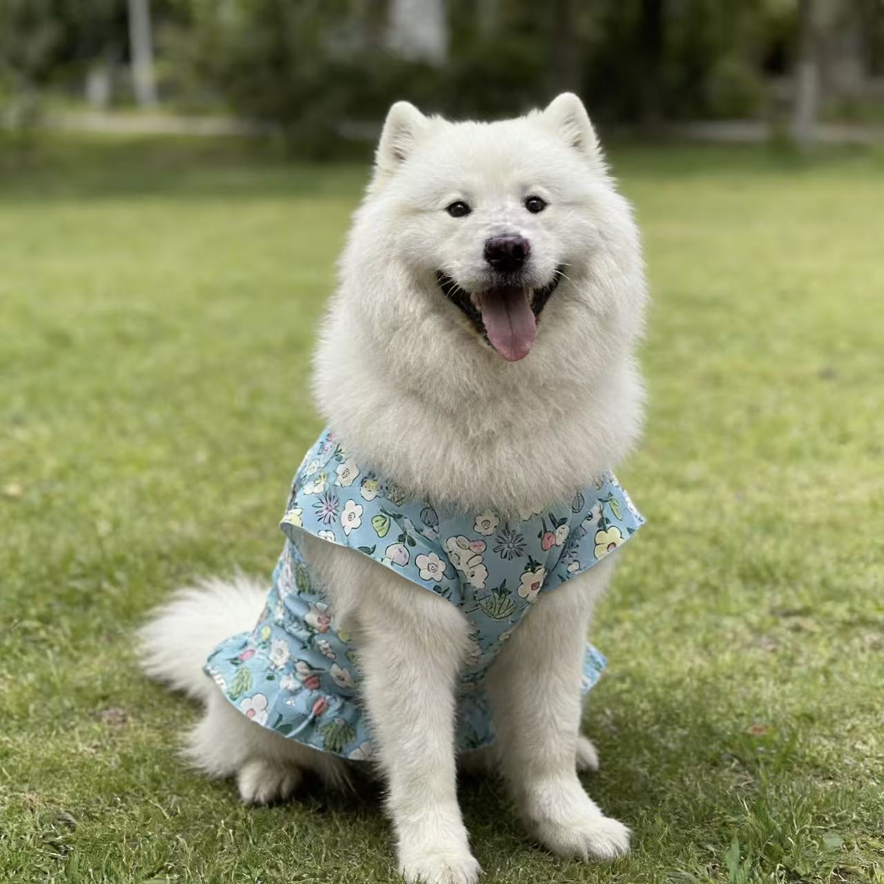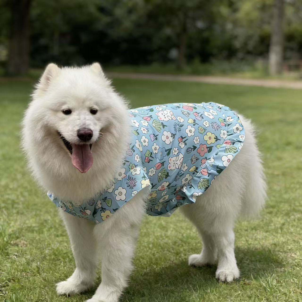 귀여운 큰 개 조끼 봄과 여름 얇은 중간과 큰 개 황금 리트리버 Samoyed 국경 목회 래브라도 옷 안티 헤어스토어 가기