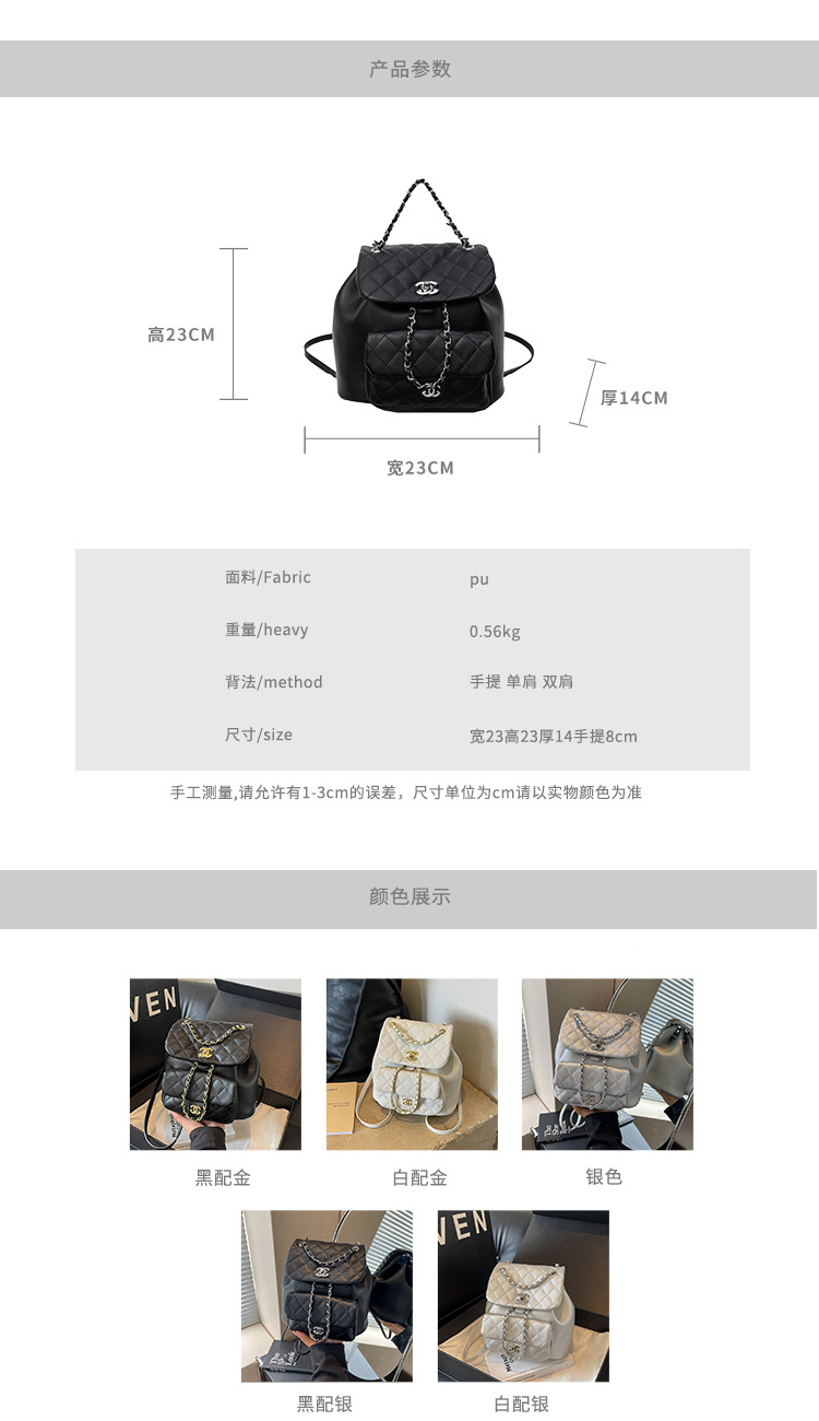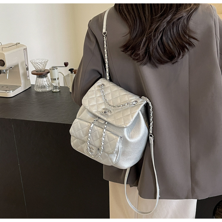 샤넬 스타일 배낭 여성의 2024 새로운 패션 체인 배낭 올 매치 숄더 버킷 가방 여행 가방스토어 가기