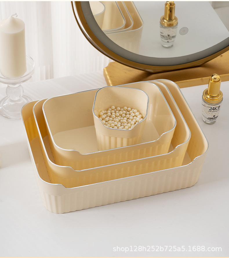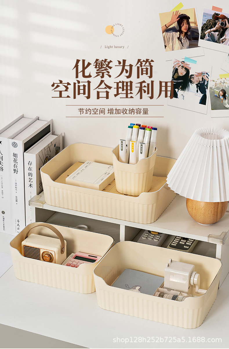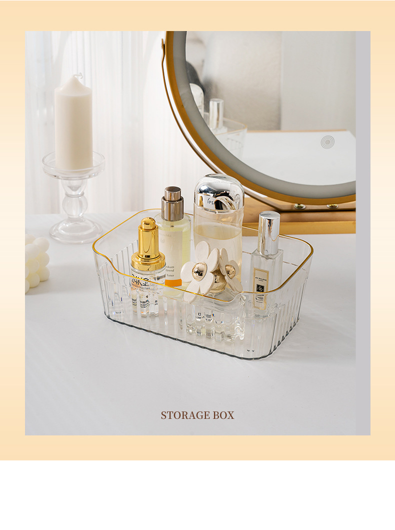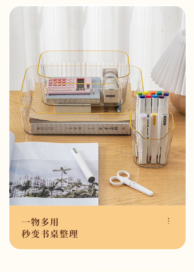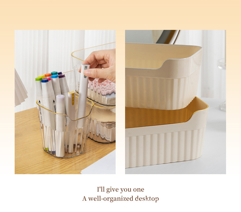 가정용 데스크탑 투명 저장 상자 사무실 책상 크림 플라스틱 저장 펜 저장 파일 사무실 책상 보관 상자