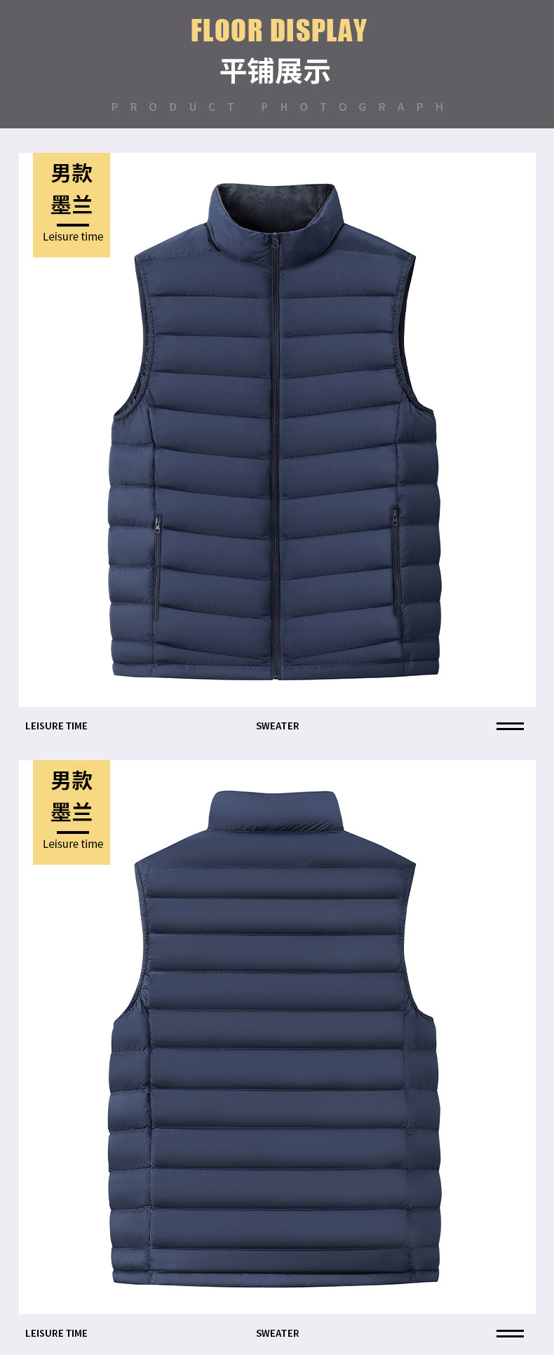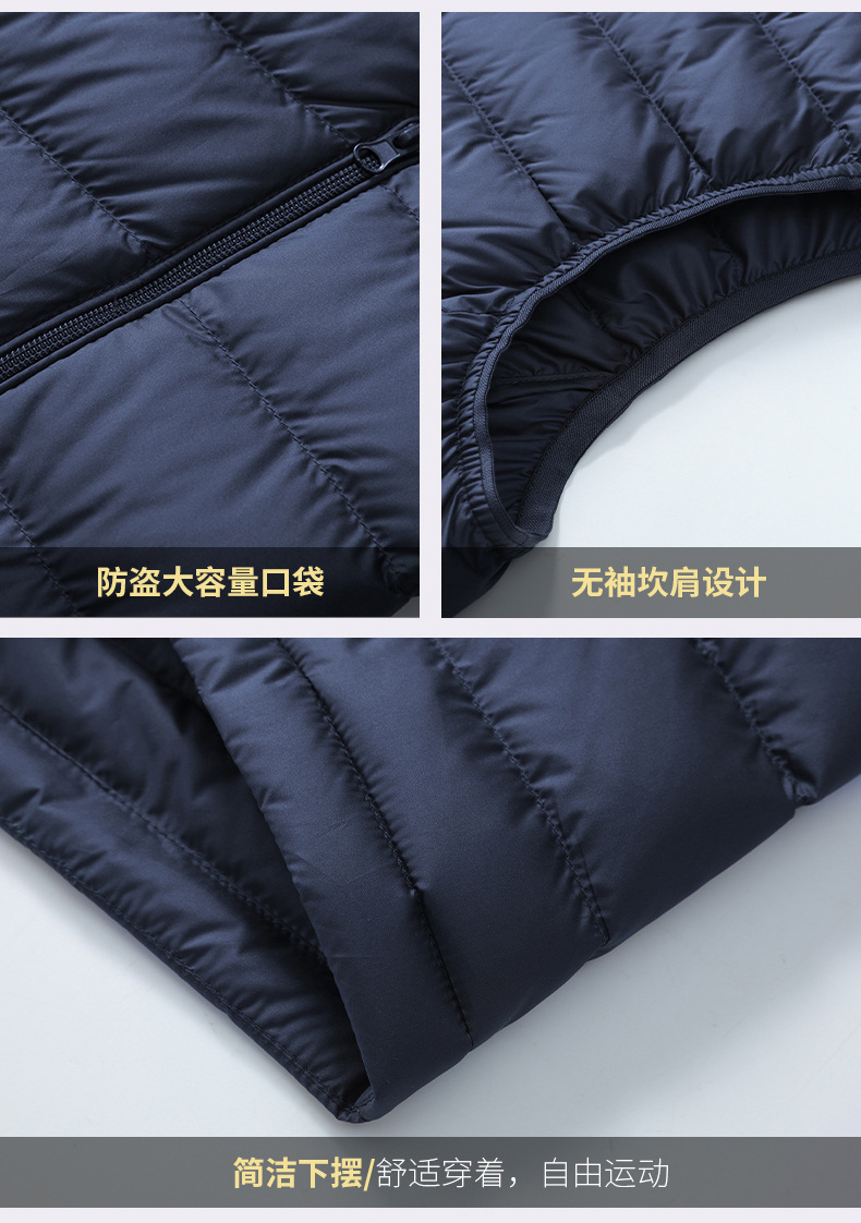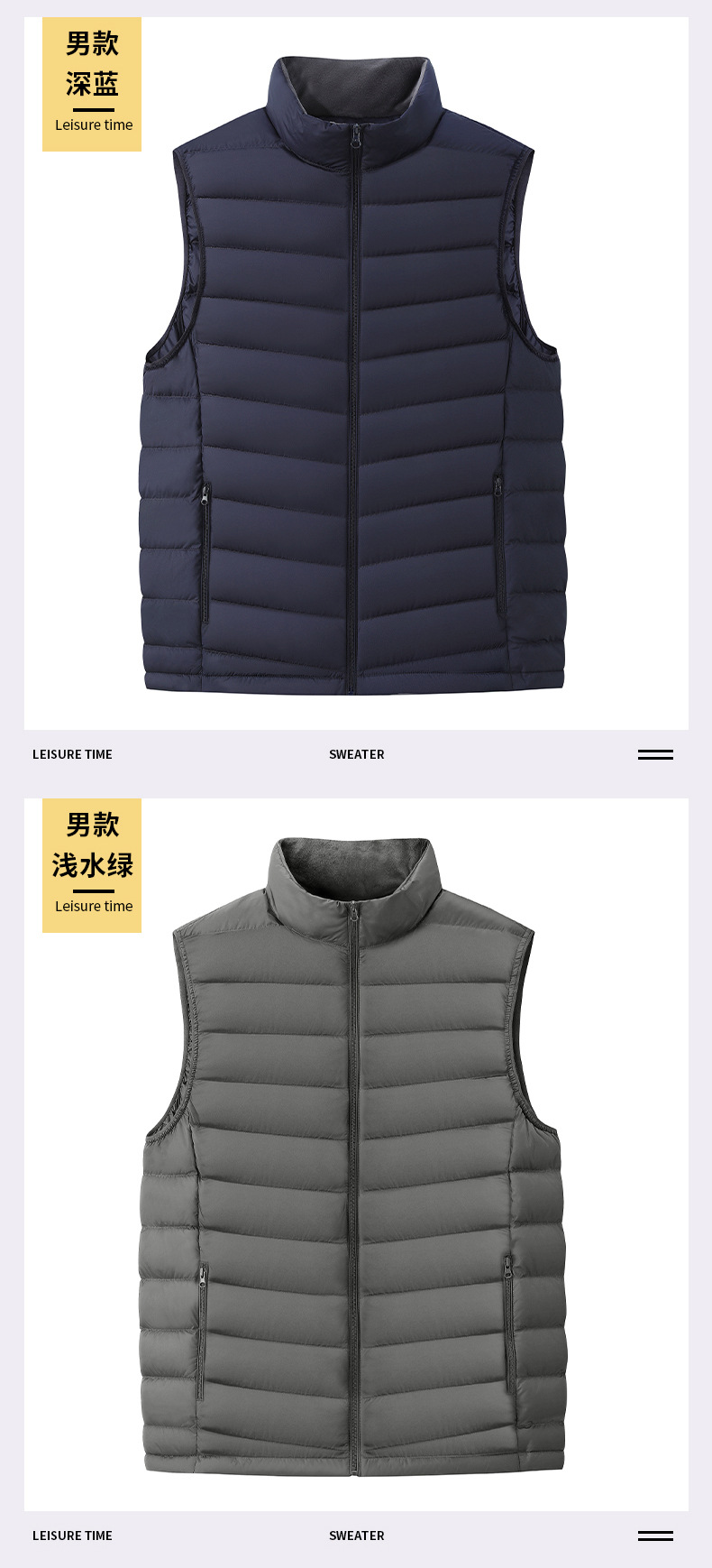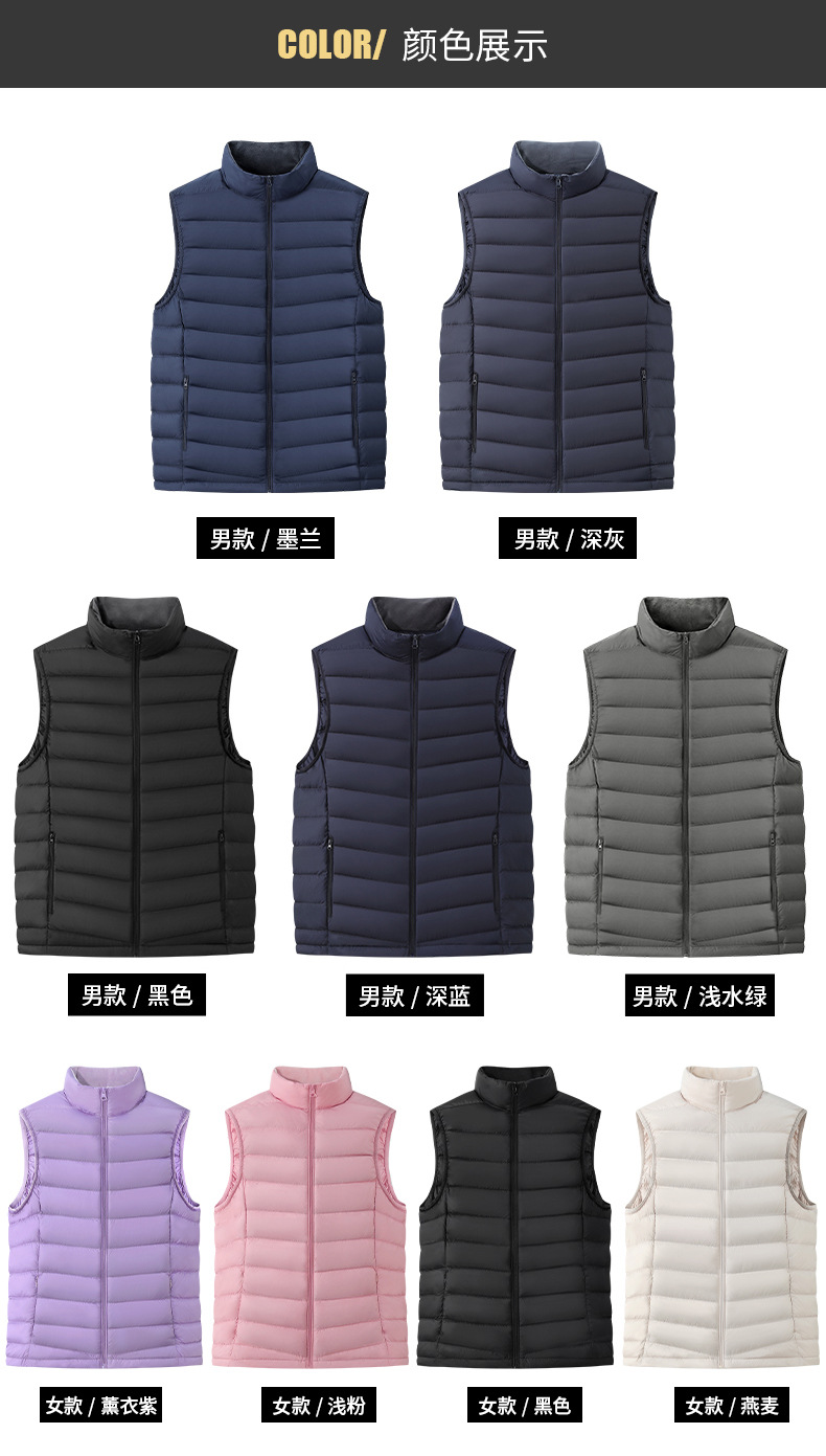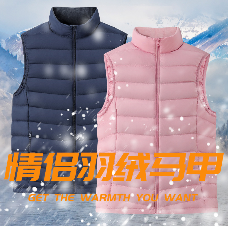 커플의 라이트 다운 조끼 충전 의류 다운 라이너 남성 수직 칼라 코튼 웨이스트 코트 스포츠 캐주얼 덕 다운 조끼