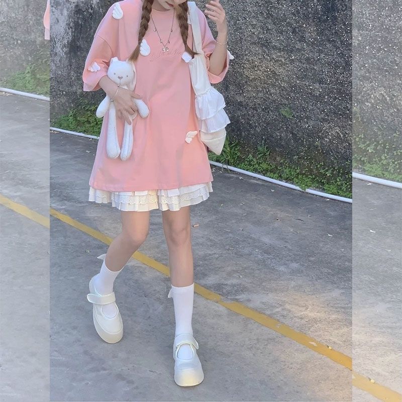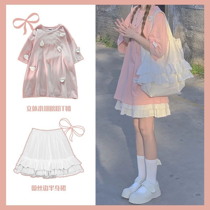 여름 짧은 치마 세트 여성의 2024 새로운 스타일 작은 달콤하고 귀여운 원피스 투피스 세트스토어 가기