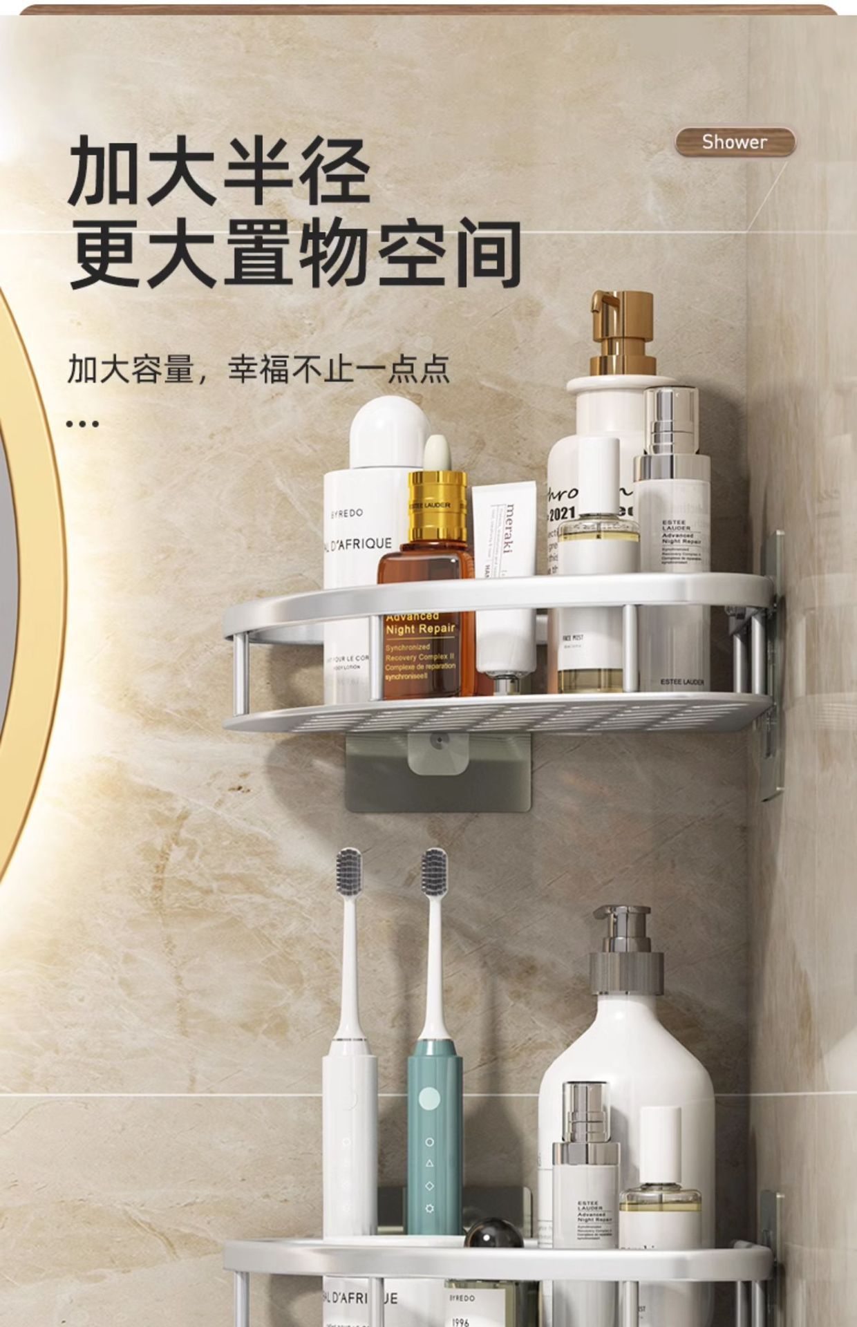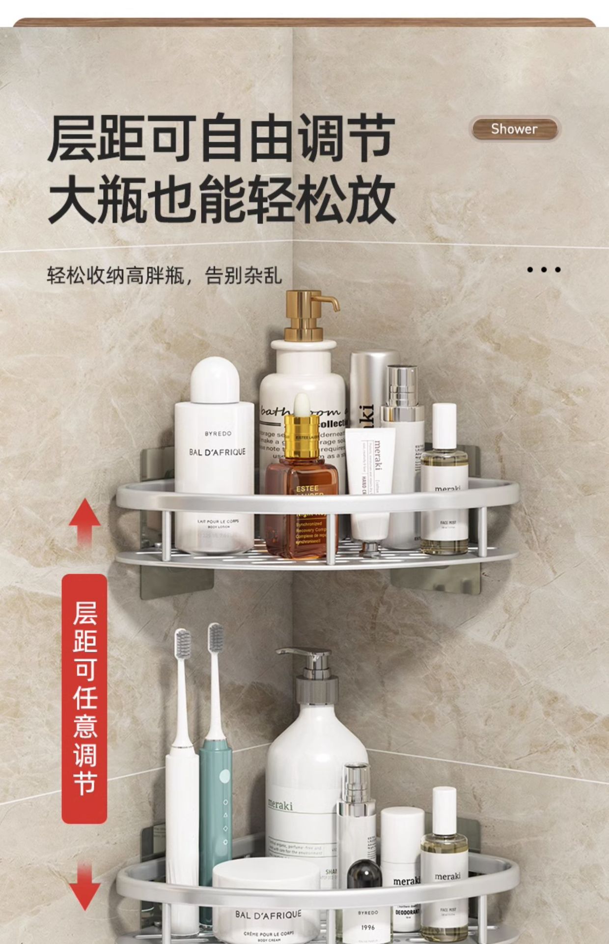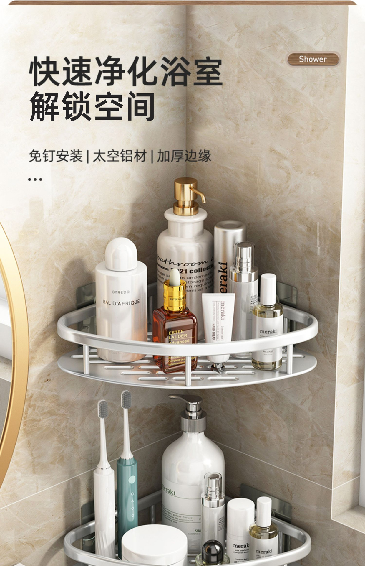 욕실 수납 선반 화장실 욕조실 세면대 벽걸이 수납 선반 무타공 수납 선반