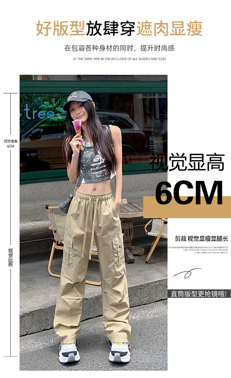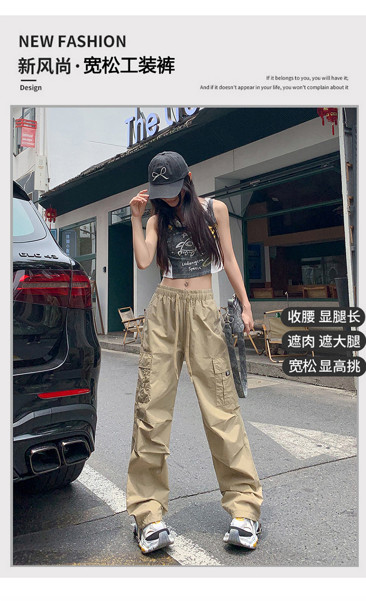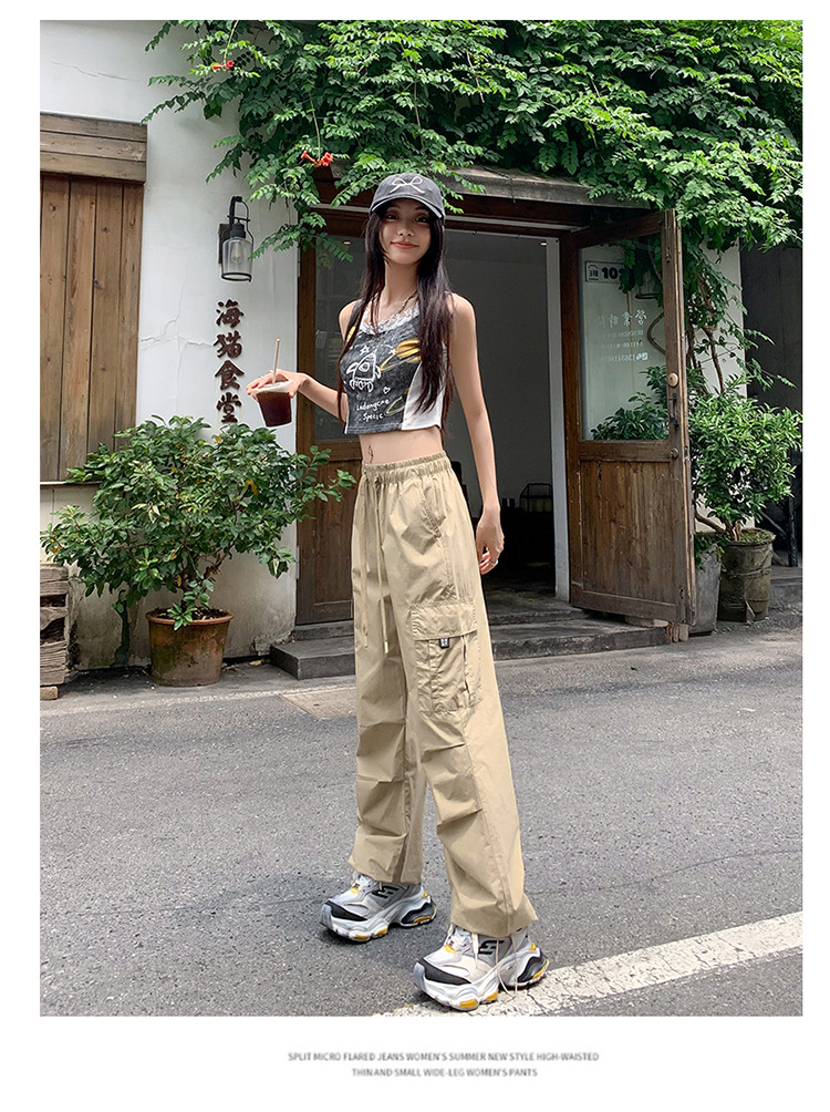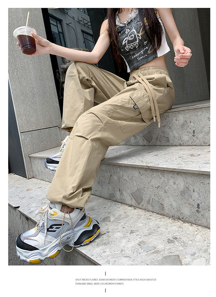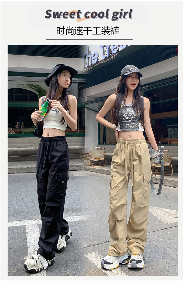 미국의 빠른 건조 작업복 여성 여름 2024 새로운 높은 허리 발가락 하이킹 바지 넓은 다리 캐주얼 스포츠 바지