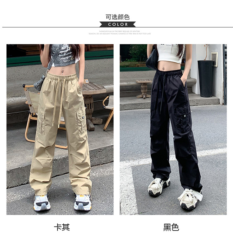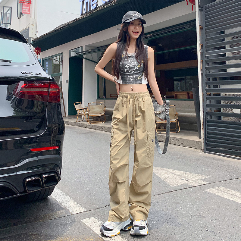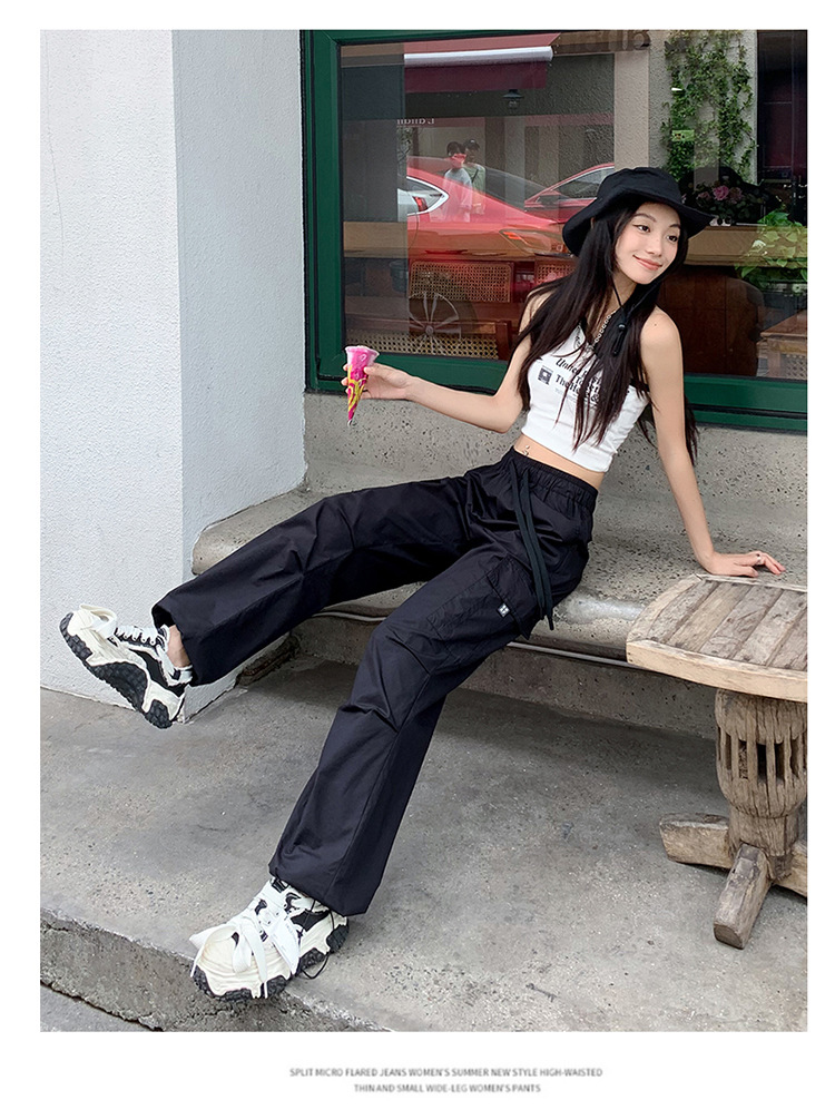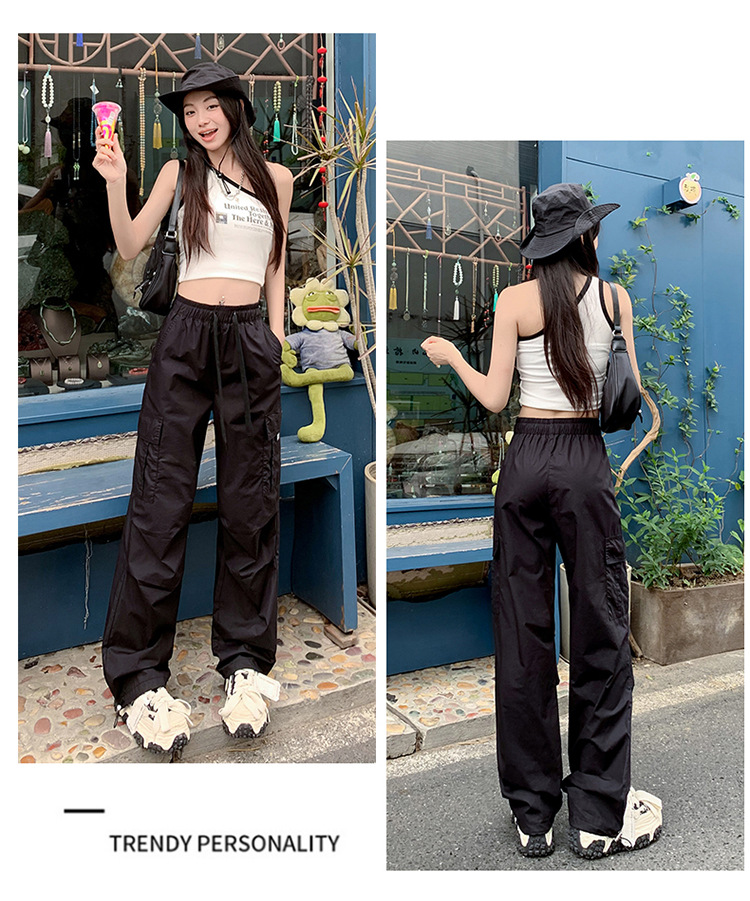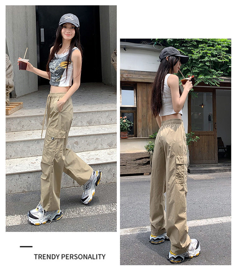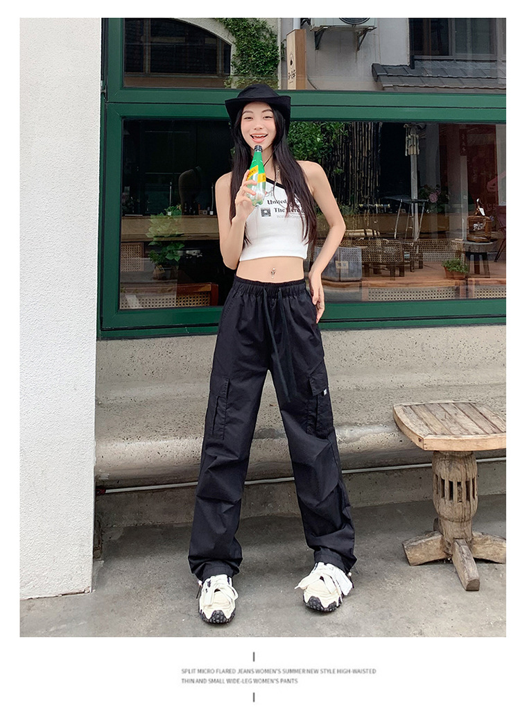 미국의 빠른 건조 작업복 여성 여름 2024 새로운 높은 허리 발가락 하이킹 바지 넓은 다리 캐주얼 스포츠 바지